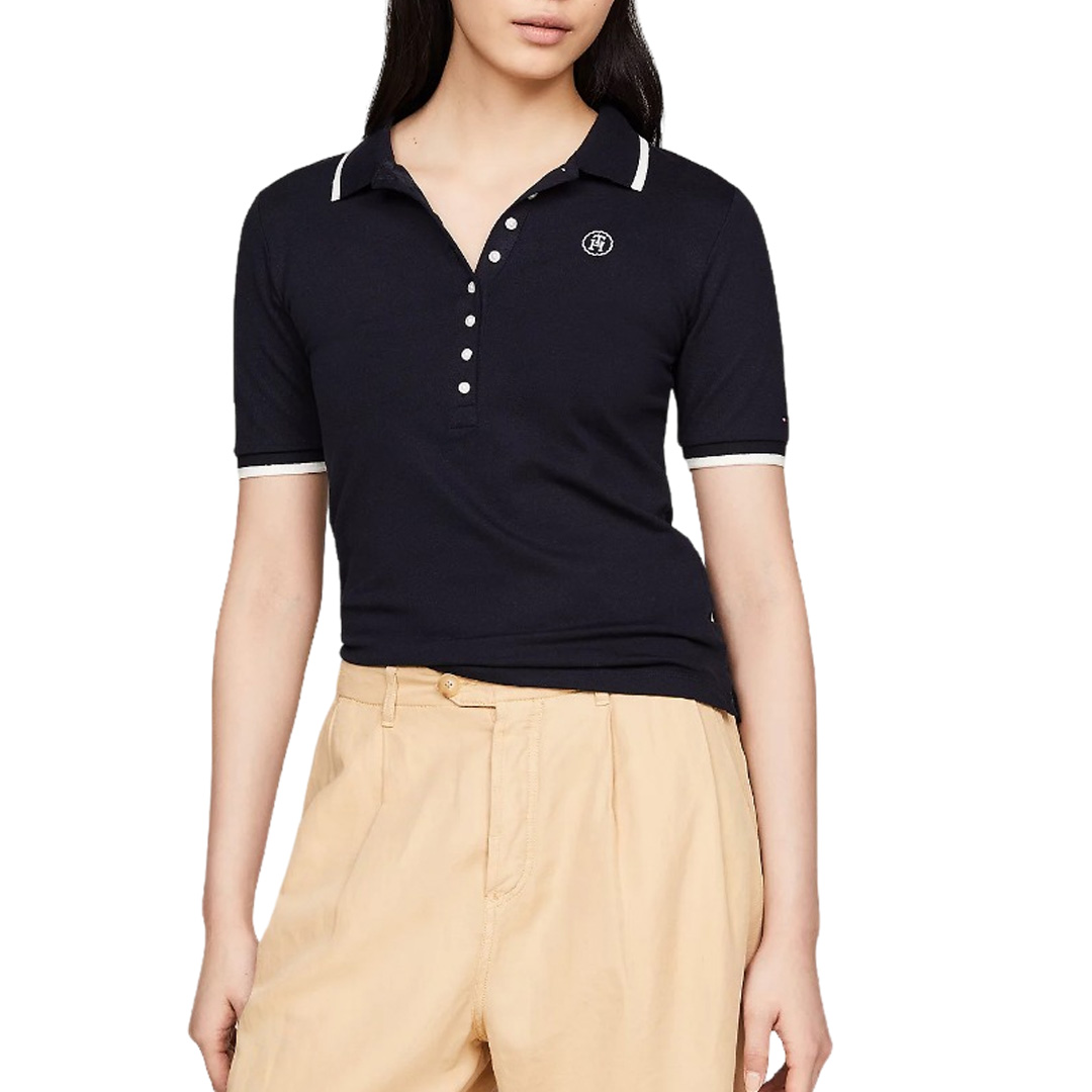 The stretch cotton blend piqué polo shirt, which flatters the figure thanks to the slim cut, is finished with the TH monogram stamp and contrasting profiles • Stretch cotton blend piqué • Produced in collaboration with Better Cotton Initiative • Polo collar and sleeve cuffs with contrasting edge • Eight-button closure • Monogram TH stamp embroidered on the front • Tommy Hilfiger branding • Slim fit