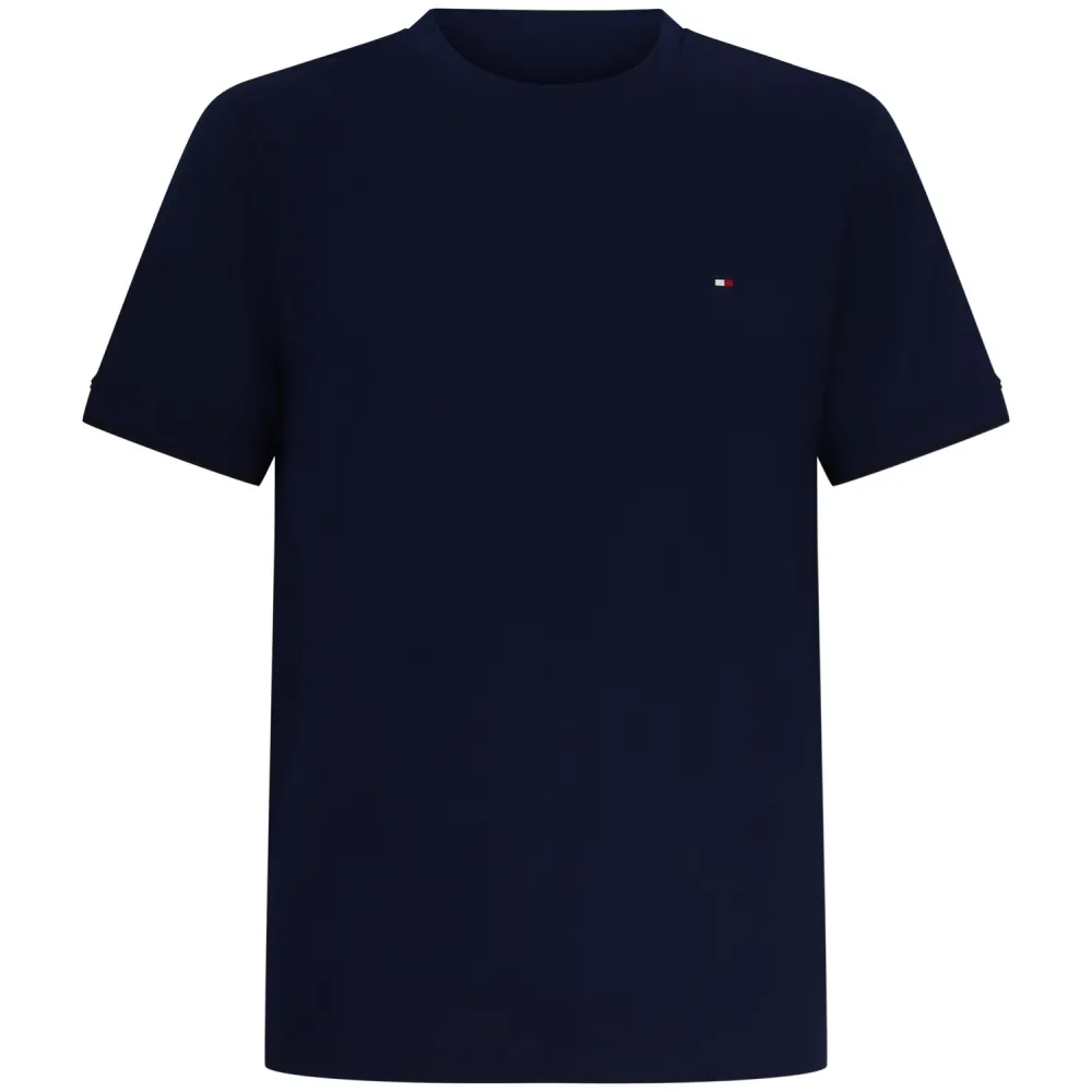 Enjoy the comfort and tailored style of this Tommy Hilfiger short-sleeve T-shirt. Crafted from stretch fabric, it features a classic crew neck and a subtle white double stripe detail on the cuffs. The iconic embroidered logo on the chest completes this modern and versatile essential. Features • Cotton, polyester and elastane blend • Classic crew neck • Double stripe detail on the sleeves • Tommy Hilfiger flag on the chest • Signature Tommy Hilfiger details Fit and size • Slim fit
