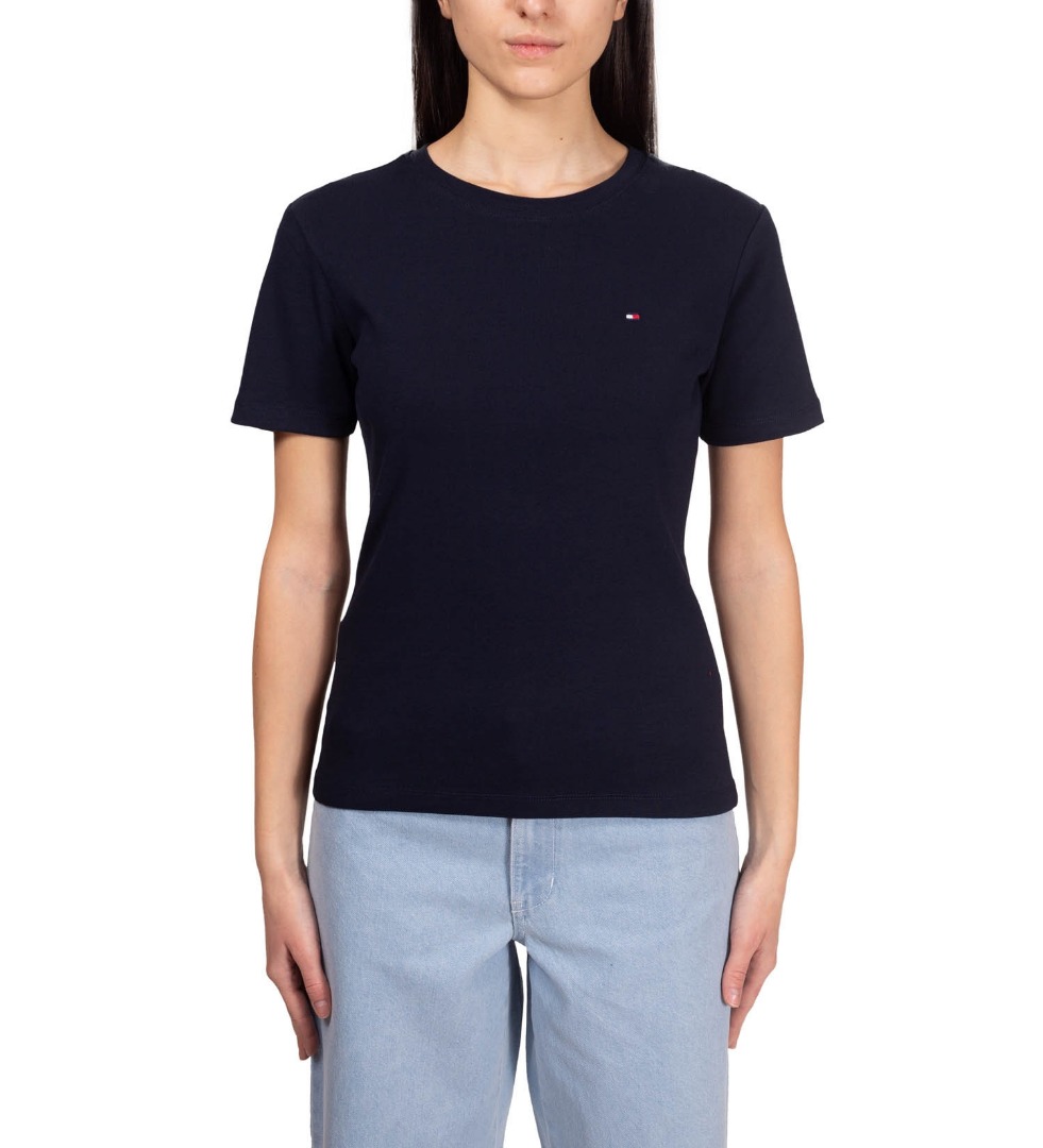 The slim fit T-shirt in pure cotton, with its fit that emphasizes the silhouette, is designed especially for your weekend outfits • Pure cotton • Crew neck • Iconic tape on the back of the neck • Tommy Hilfiger branding • Tommy Hilfiger flag embroidered on the chest • Slim fit