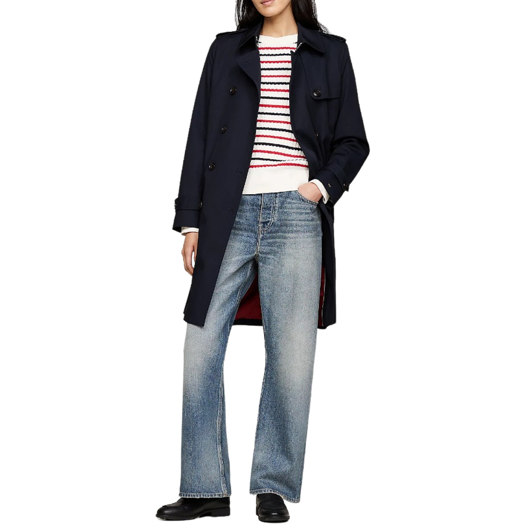 Take on the rain without hesitation with the classy pieces of the Water Repellent collection. The timeless slim fit trench coat, featuring all its characteristic details, is updated and becomes even more versatile with the practical water-repellent finish. • Pure cotton • Water-repellent • Semi-French collar • Double-breasted • Shoulder epaulettes • Buttoned epaulettes • Waist belt • Two angled pockets on the sides • Buttoned cuffs • Tommy Hilfiger branding • Tommy Hilfiger enamel flag on the sleeve • Slim fit