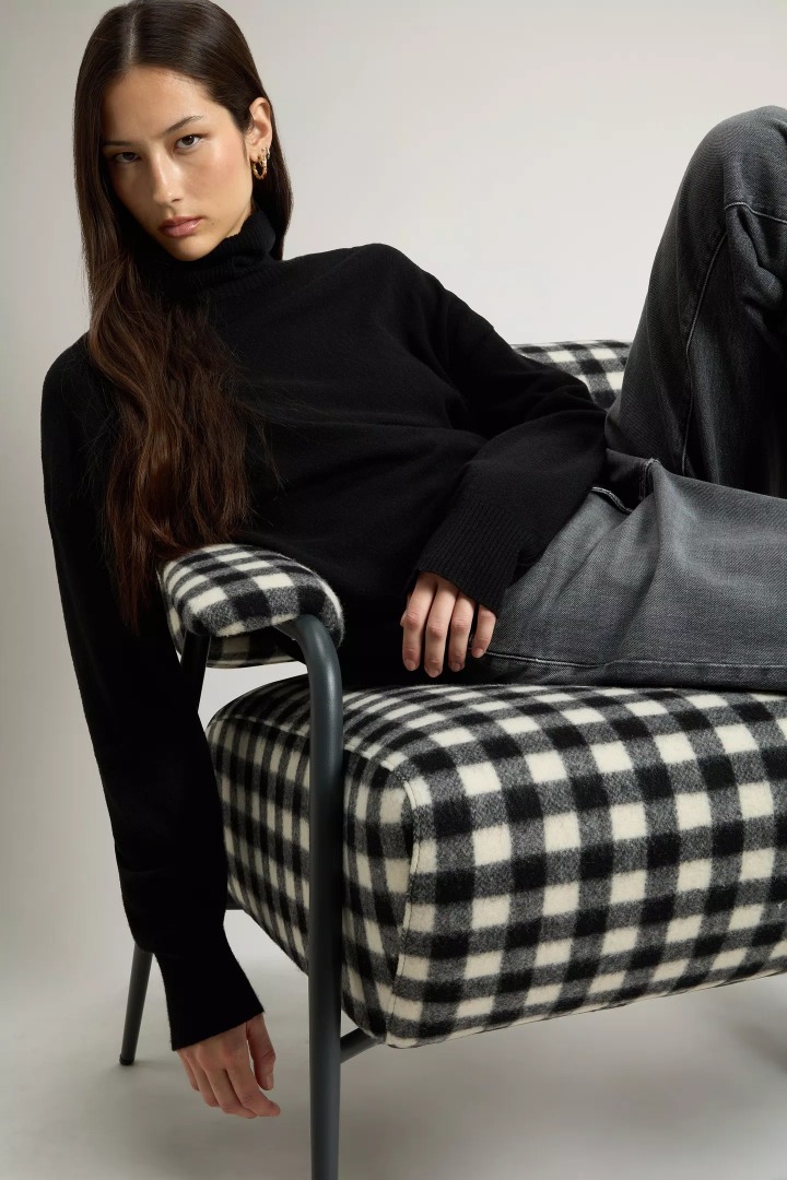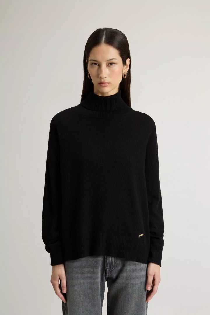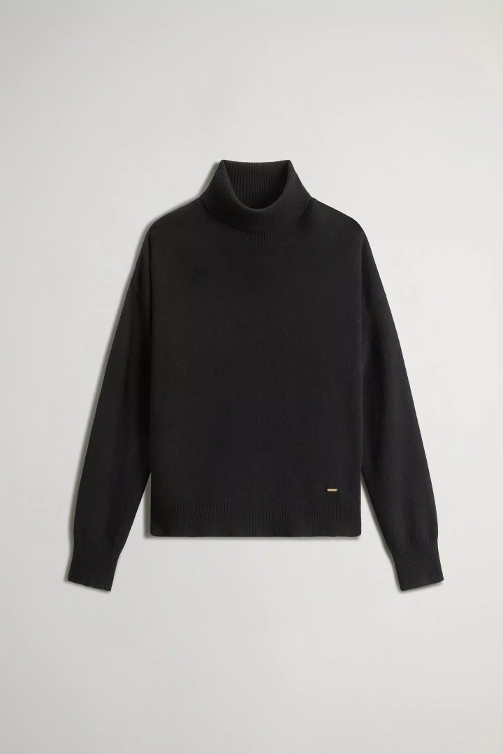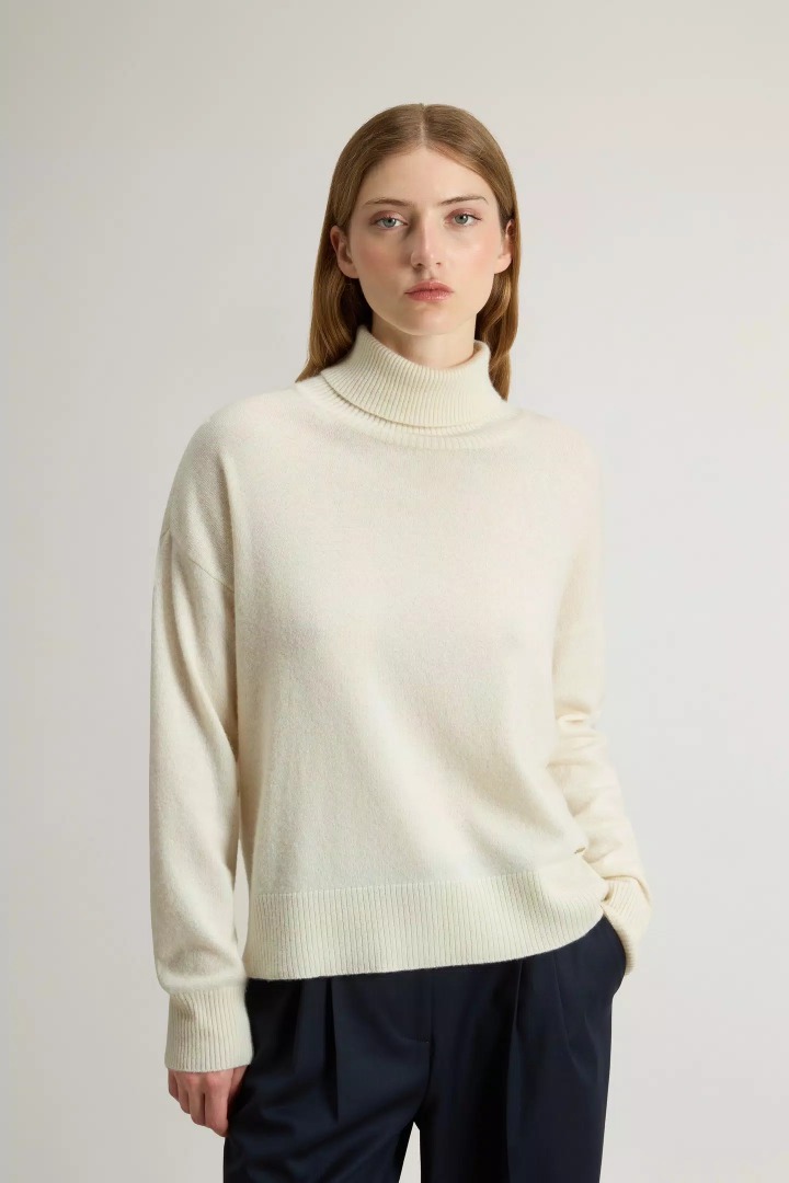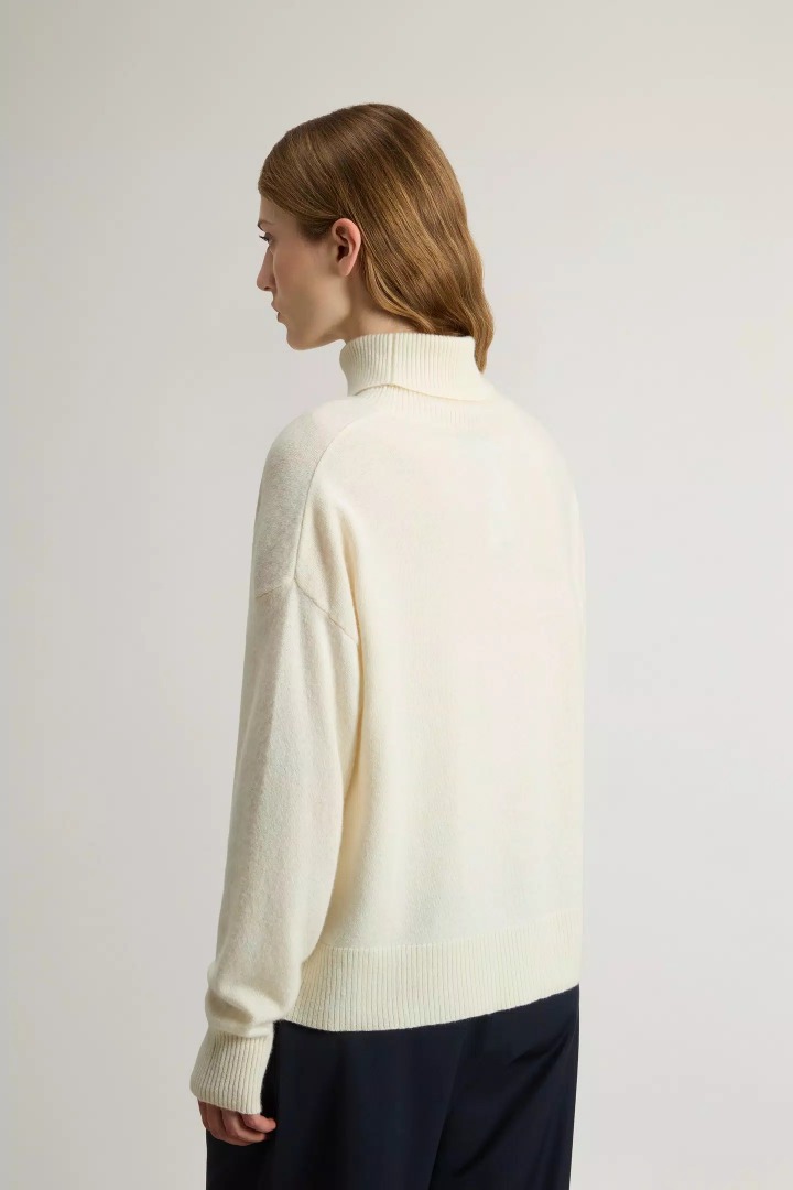With a classic and refined style, this turtleneck sweater adds a sophisticated touch to both elegant looks and everyday outfits. Crafted from a virgin wool and cashmere blend, it features ribbed trims on the turtleneck, cuffs, and hem. A logo tag at the hem completes the design. Crafted from a virgin wool and cashmere blend. Turtleneck. Ribbed collar, cuffs, and hem. Logo tag.