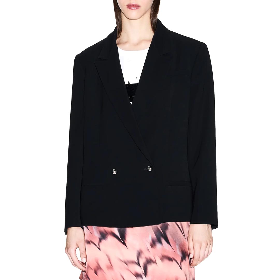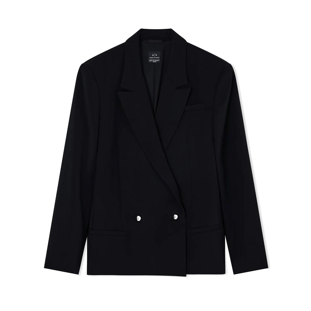 This ARMANI EXCHANGE blazer features a classic double-breasted design with elegant peak lapels, creating a simple yet elegant look. Its streamlined silhouette perfectly flatters the figure. Practical side pockets create a practical and elegant look. Pair it with a skirt or trousers for a sophisticated look, or wear it with a casual outfit for a smart and relaxed look.