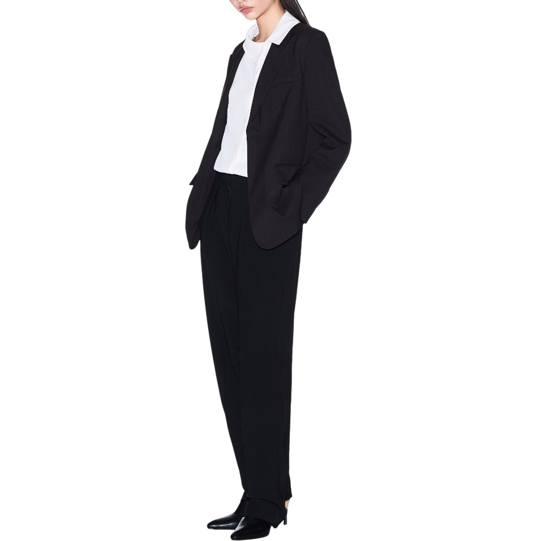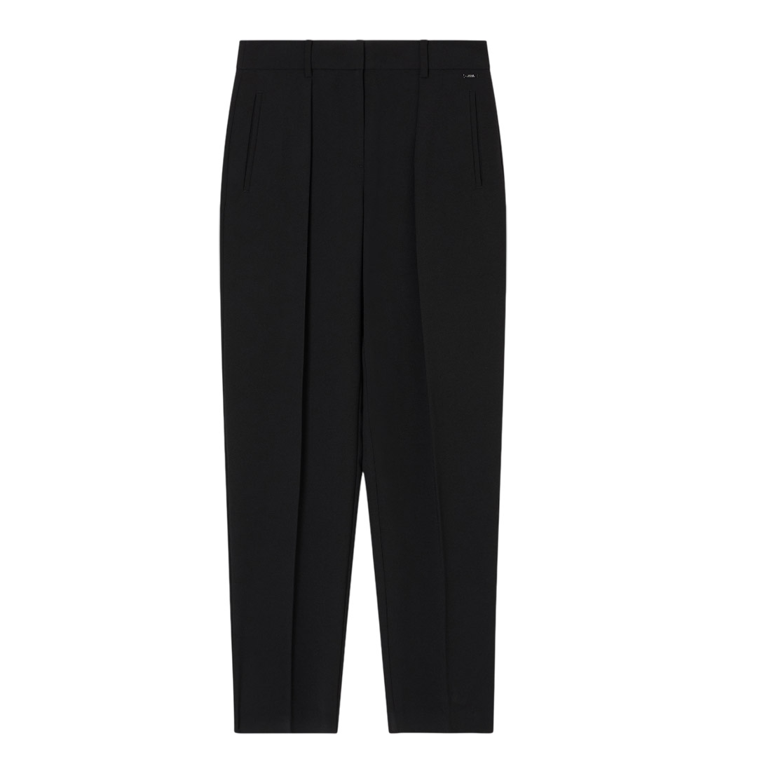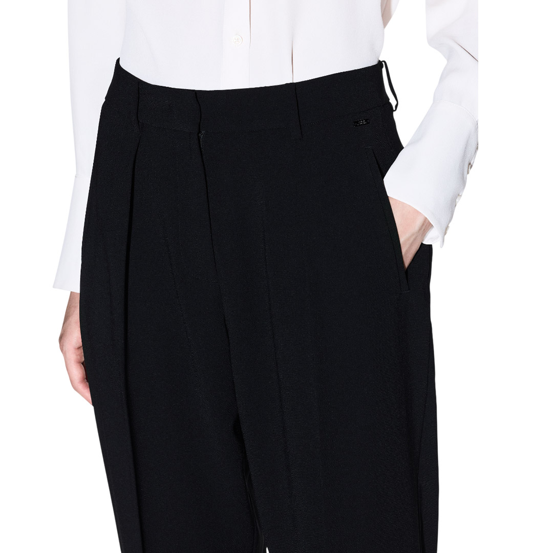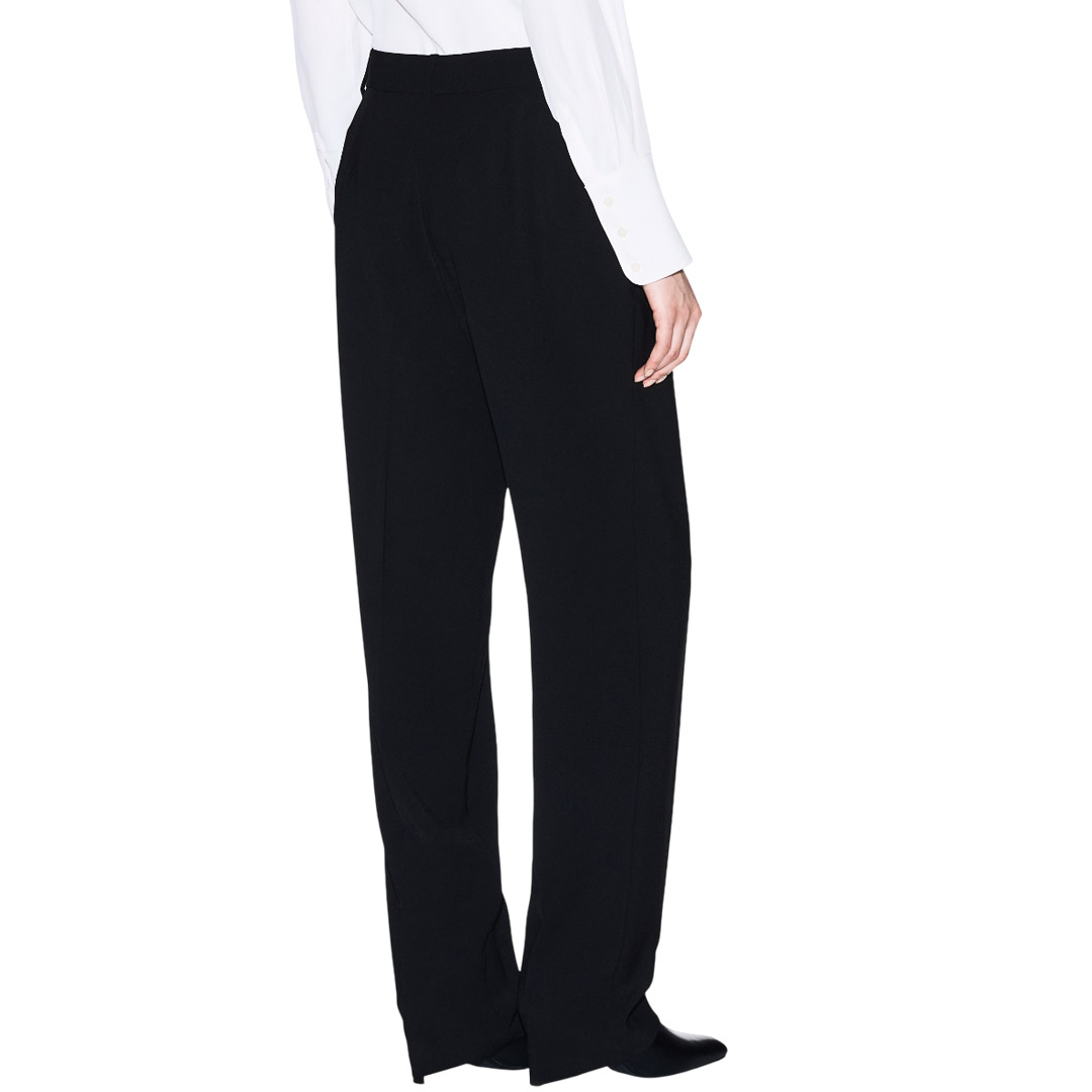 These trousers are crafted from a flowing fabric, a staple piece that redefines comfort. The simple design, with darts that define the silhouette, combines with a modern, relaxed fit, perfect for those seeking a versatile style. The straight leg and ankle length complete these trousers.