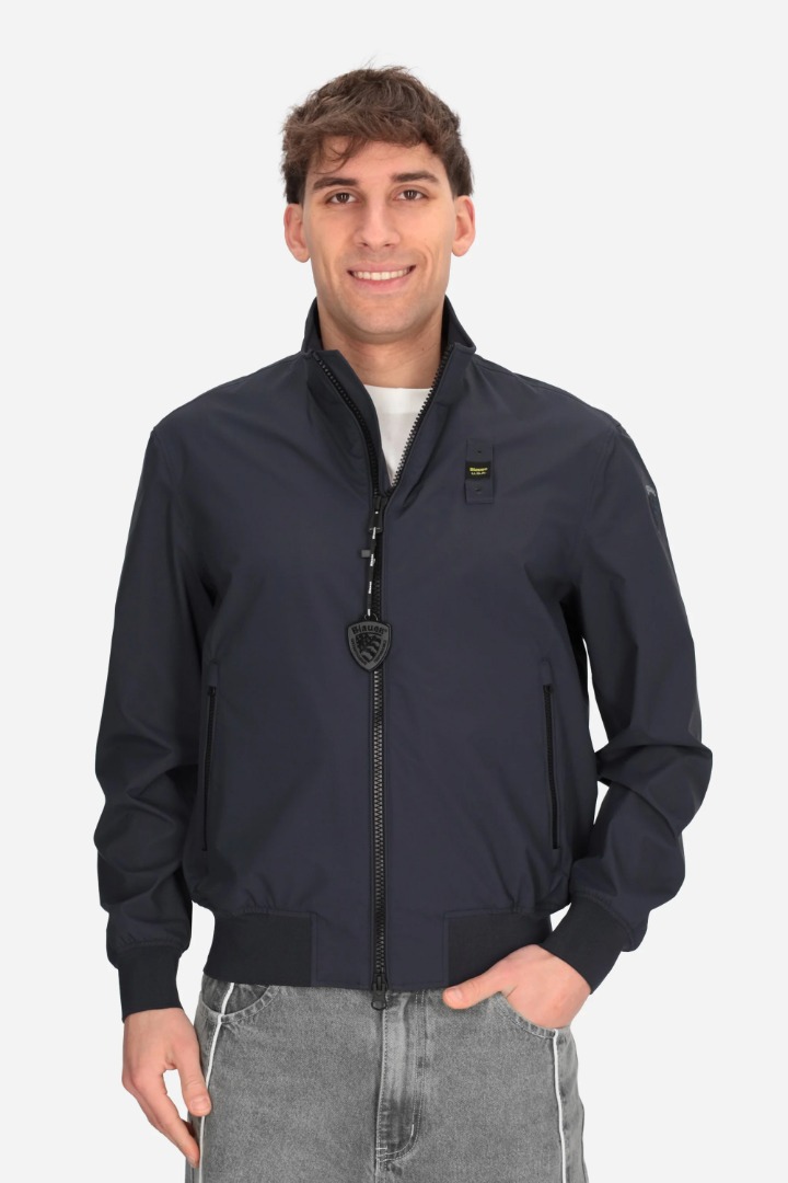 Soft men's shirt with fixed hood and long sleeves. Drawstring at the edge of the hood. Ribbed decoration along the outside of the sleeve and in the center of the hood. Blauer Usa writing in contrasting color at the center of the chest. Blauer Usa written patch in contrasting color applied to the front of the center of the hood.