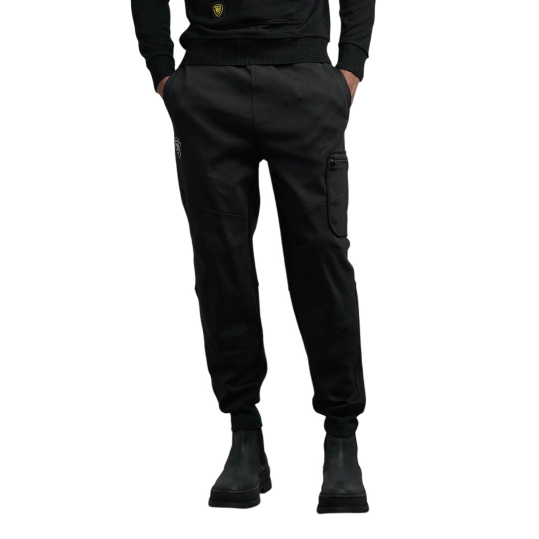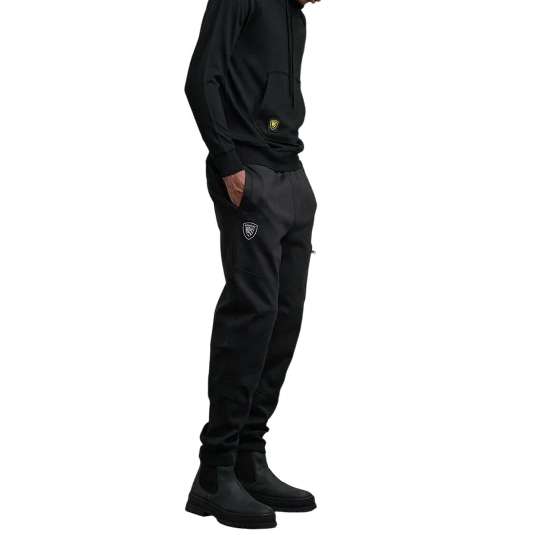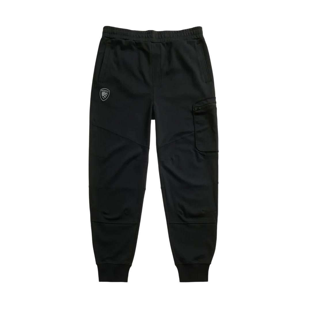 Sweatpants with elastic waistband and rubberized, reflective Blauer logo under the pocket. Zip pocket on the leg. • Internal drawstring • Darts on the knees • Ribbed cuffs • Four open pockets • Zip pocket • Rubberized logo