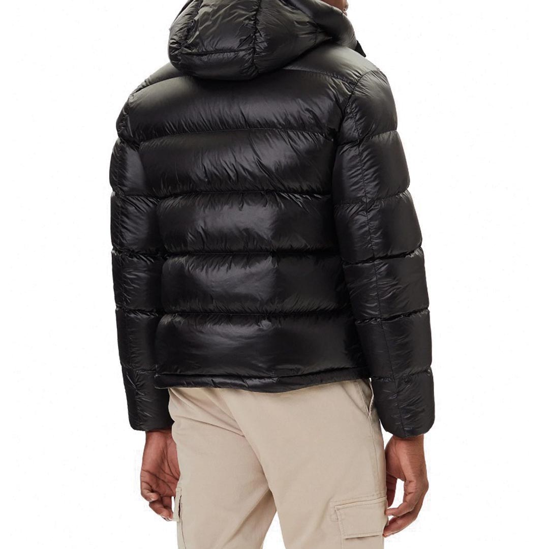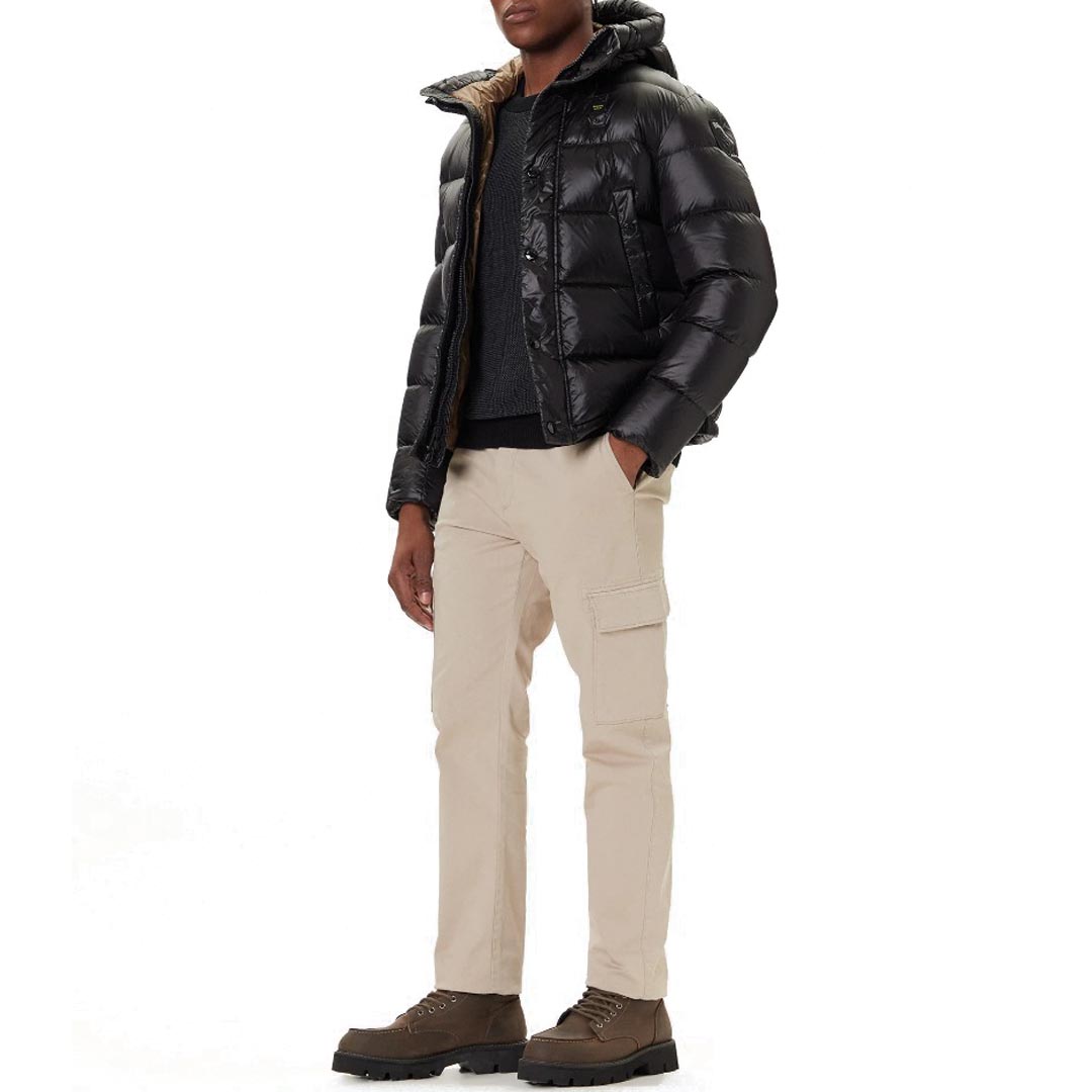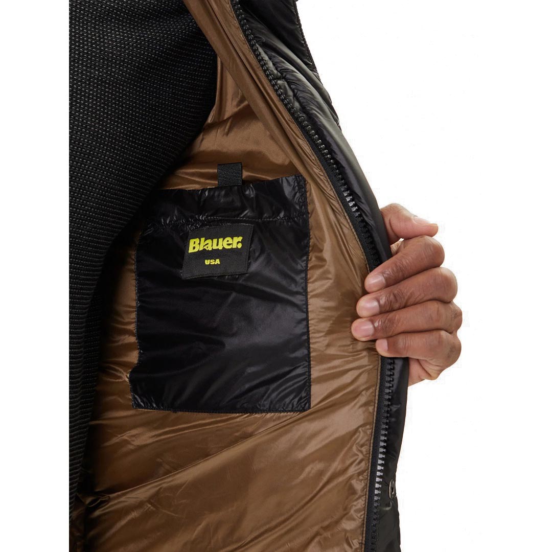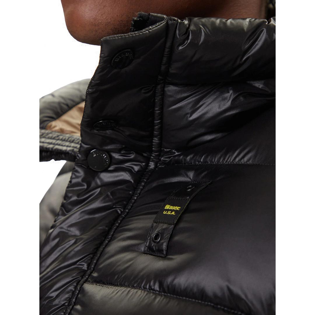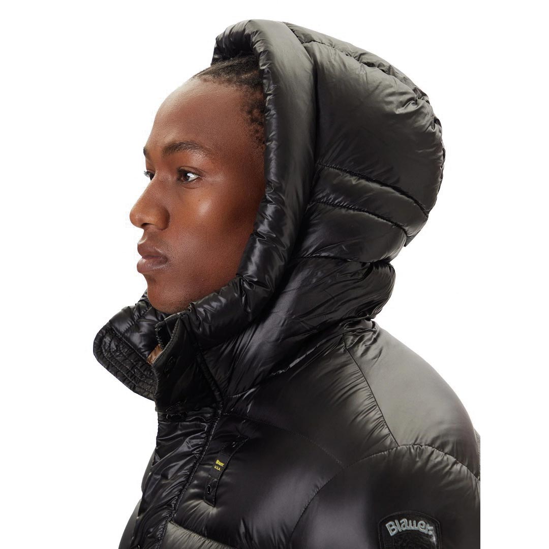 An iconic piece that combines performance and style. Made from shiny, water-repellent nylon, this down jacket is quilted with horizontal stripes and padded with warm 90/10 natural down (335 g), which guarantees thermal comfort without being bulky. The design is enriched by the contrasting color interior, the fixed hood adjustable with drawstring and functional details that make the model perfect for facing the cold season with practicality and personality. Outer material: shiny, water-repellent nylon Padding: 90/10 natural down (335 g) Interior: contrasting color nylon Closure: central zip covered by snaps External pockets: closed with snaps Internal pockets: with Velcro Sleeve ends: double with internal elastic Adjustable drawstring at the bottom Blauer logo: patch and iconic loop on the chest