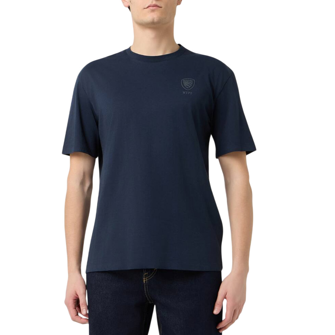 Blauer Etaw men's T-shirt with a contrasting logo on the chest, a classic and youthful look. It features a crew neck and short sleeves.
