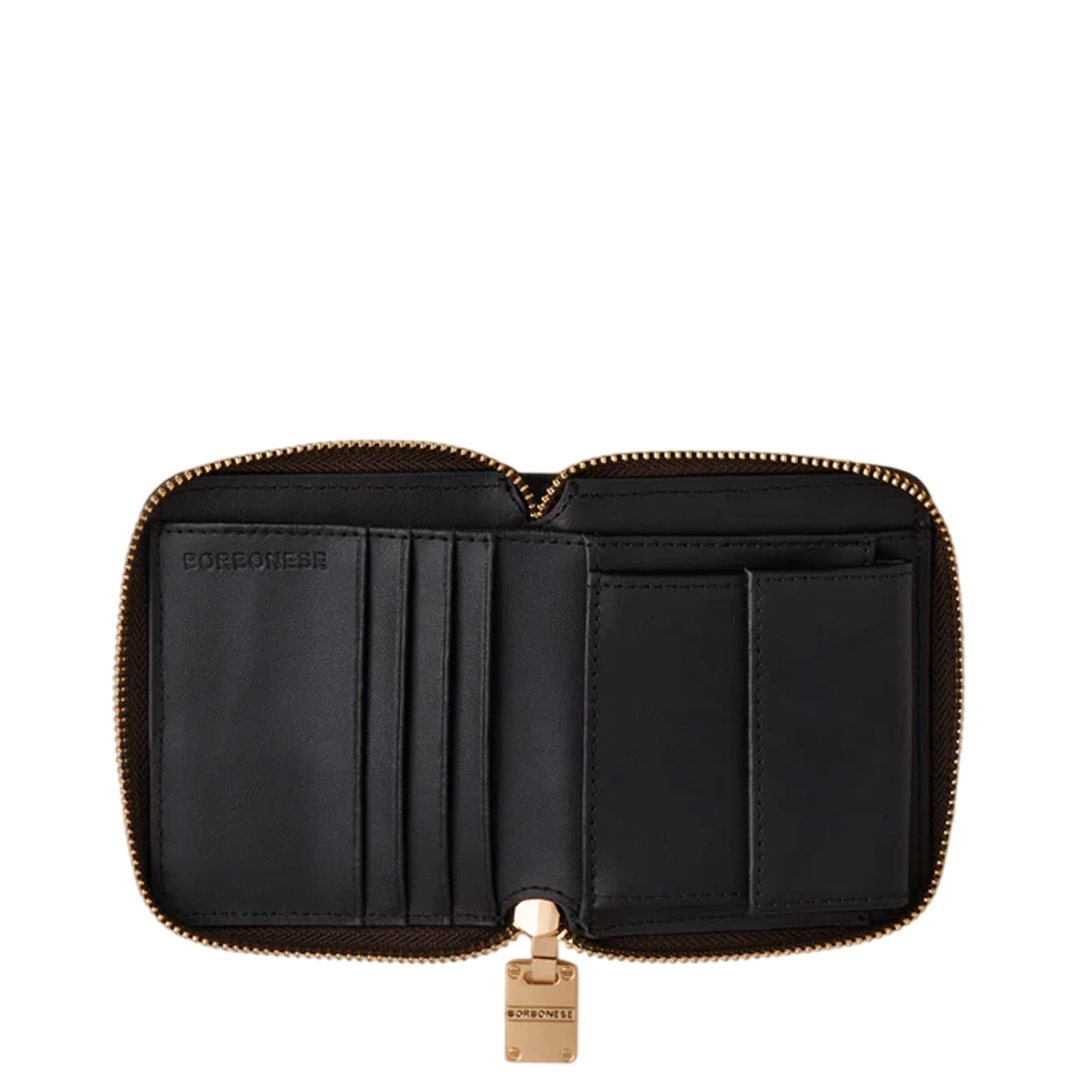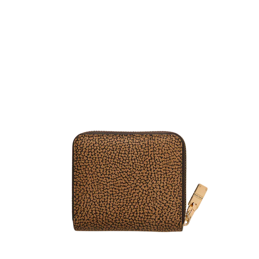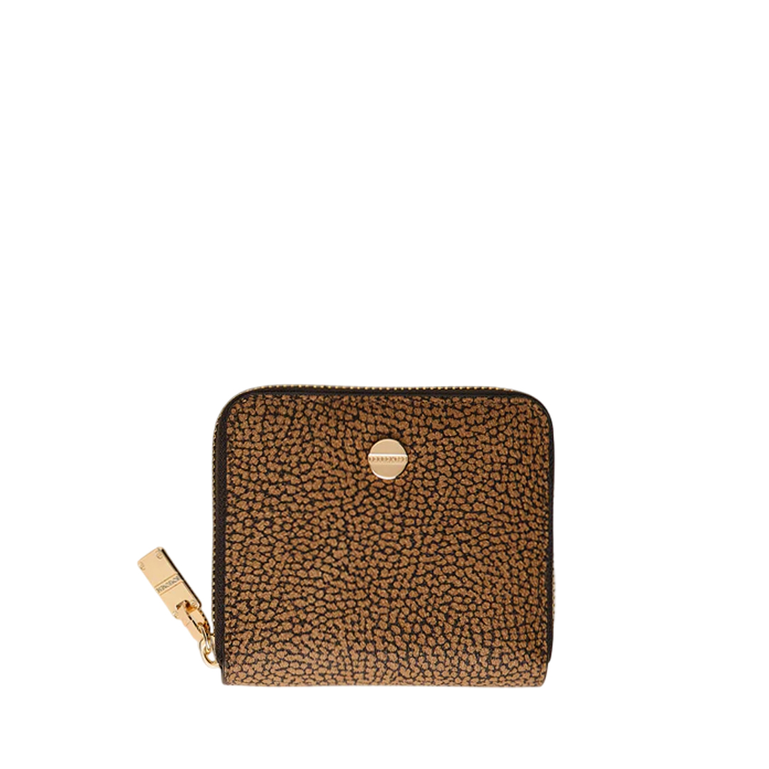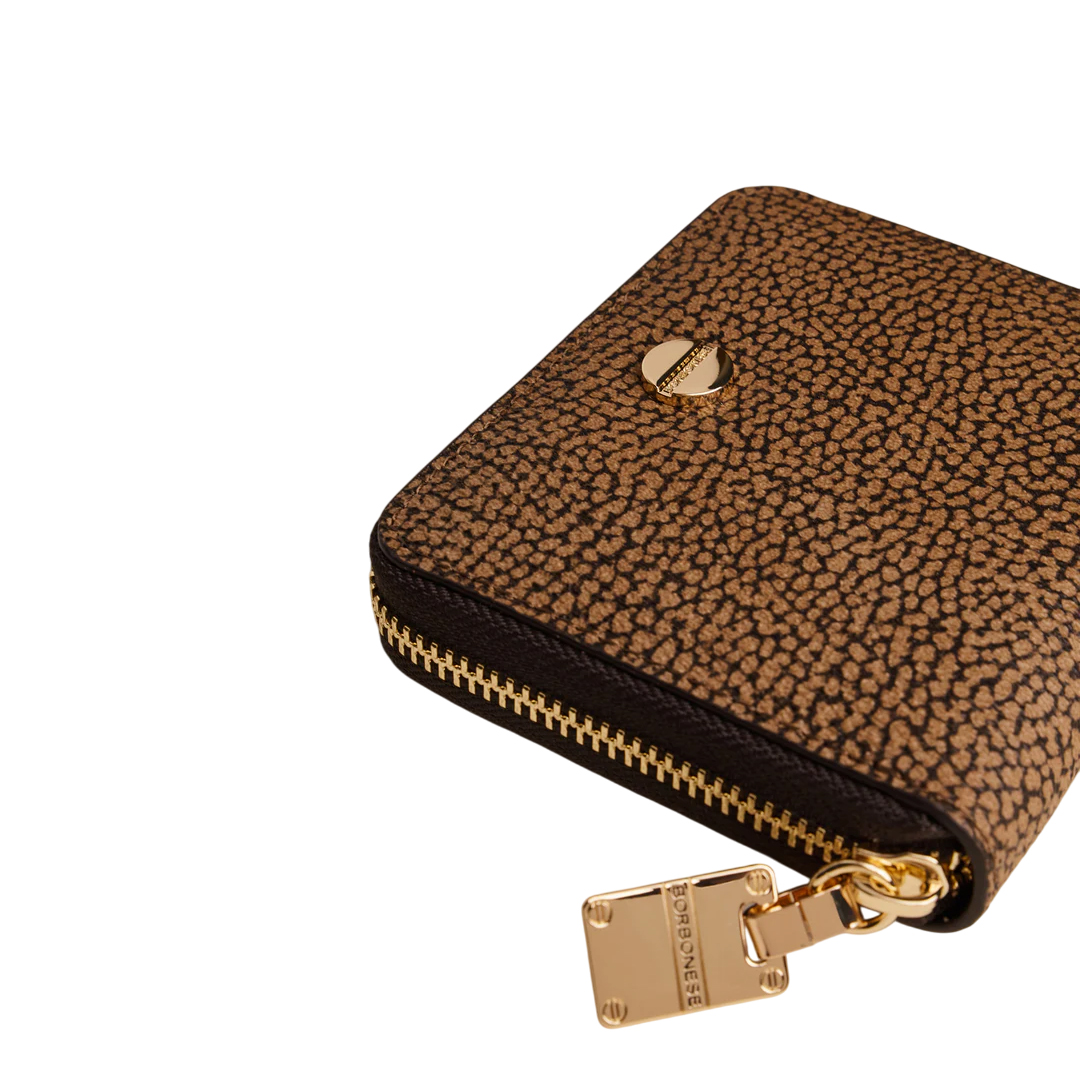 OP Coated Canvas Leather Details Zip closure on three sides The iconic screw acts as a zip puller and decorative motif applied on the front Inside with coin purse and card holder Interior lined in jacquard fabric with anti-card cloning screen Light Gold Hardware Medium Size Width 11 cm Height 10 cm Depth 2 cm
