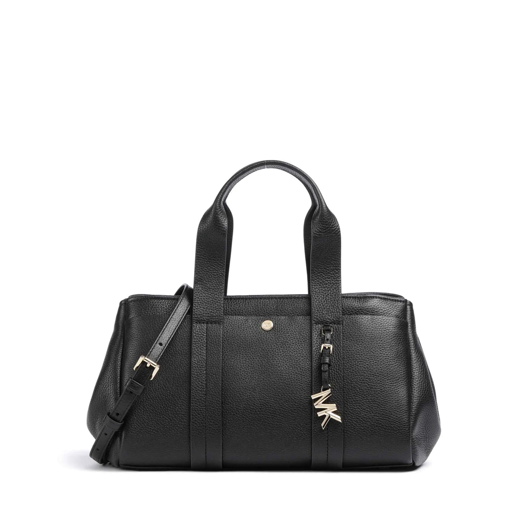 Op printed recycled fabric Lining in recycled jacquard fabric External closure with metal zip and double slider, leather zip puller with decorative screw elements and logo plate Two open internal compartments One open internal pocket Light gold hardware Large size Width 45 cm Height 22 cm Depth 4.5 cm