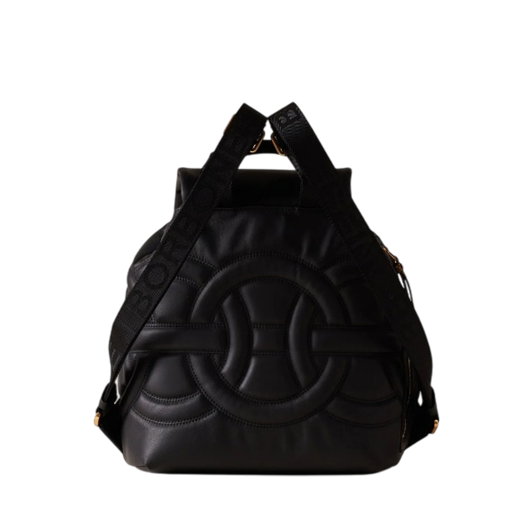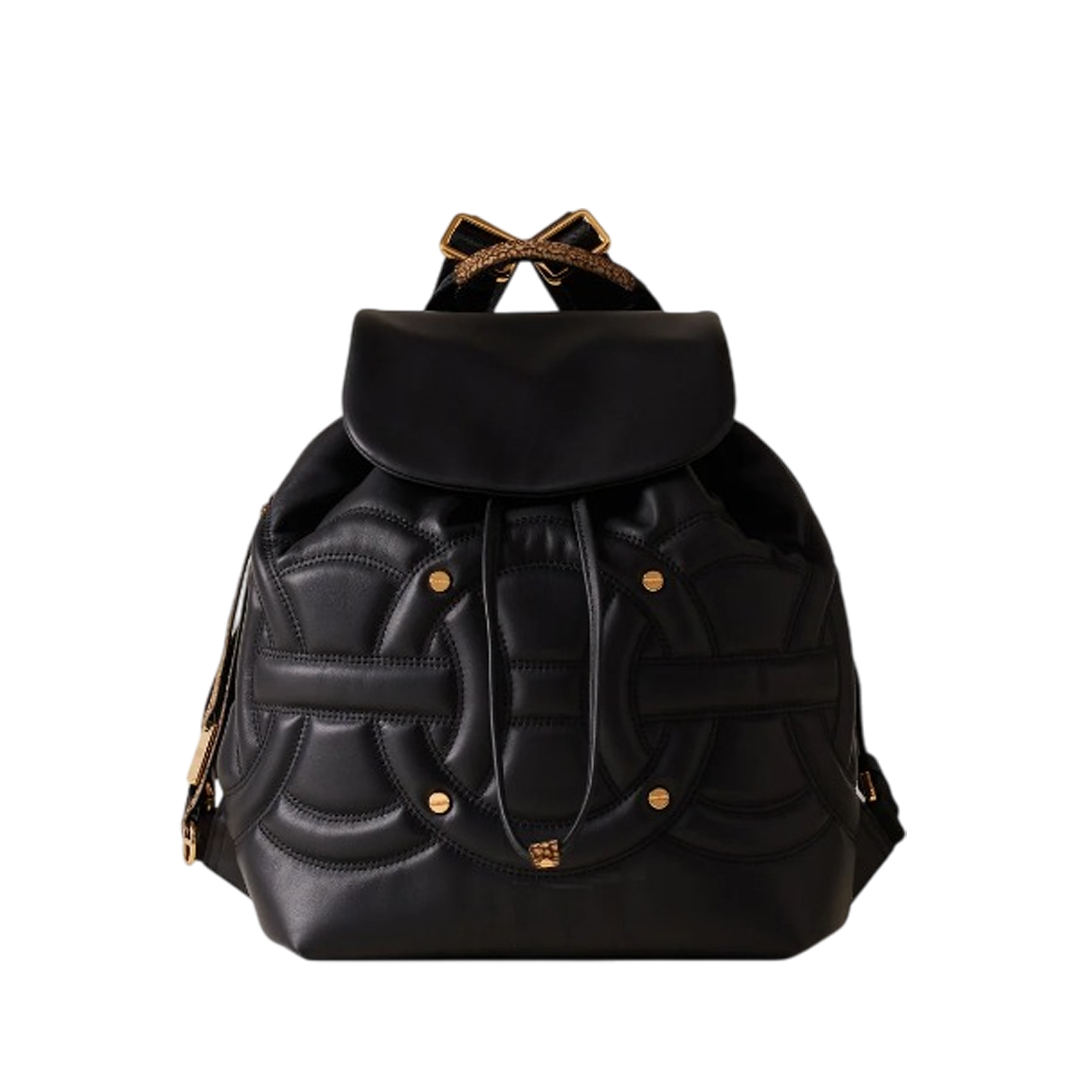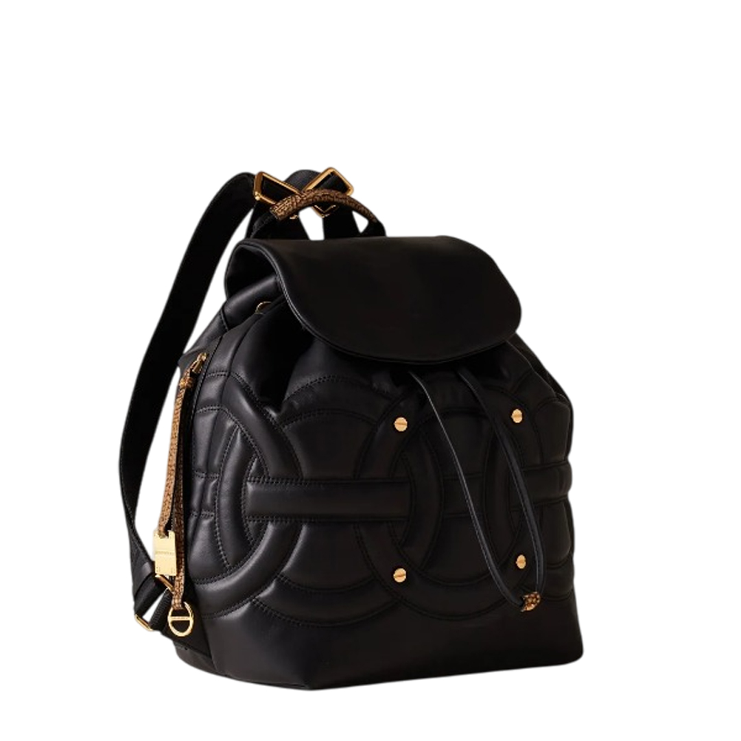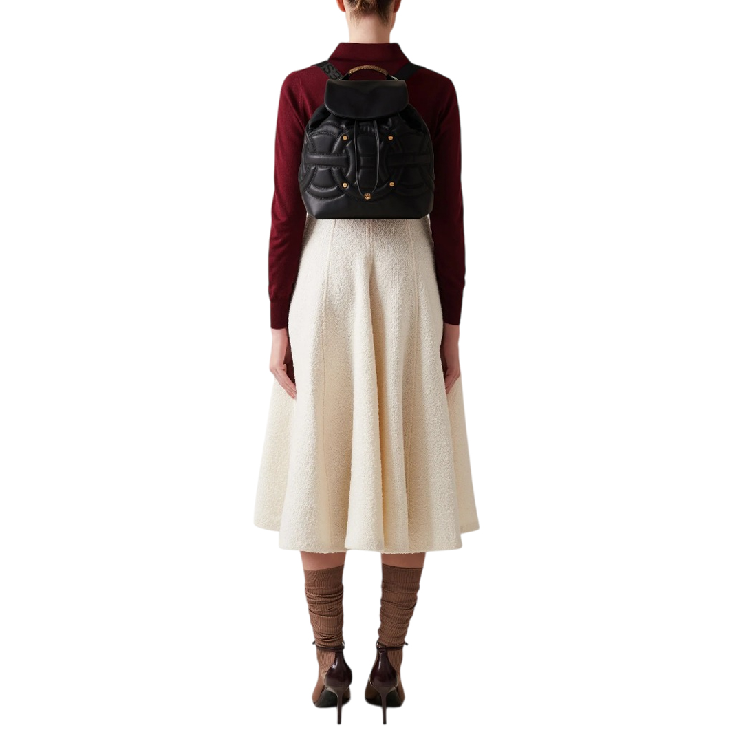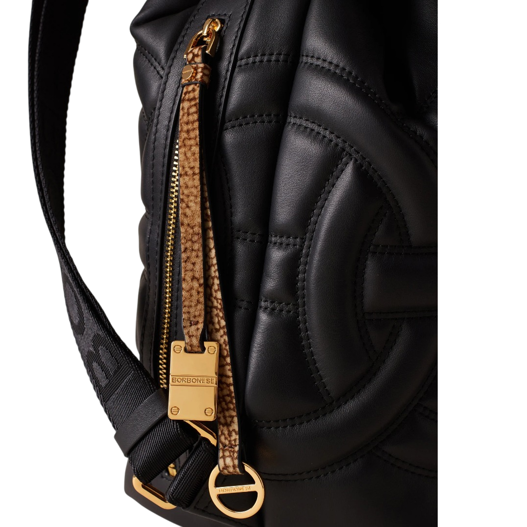 Matellasse' nappa calfskin with screw design Op Suede details Recycled jacquard fabric lining Drawstring and flap closure Op Suede zip puller with screw decorative elements and logoed plate Logoed nylon shoulder straps Gold hardware Large size dimensions: 27x32x17