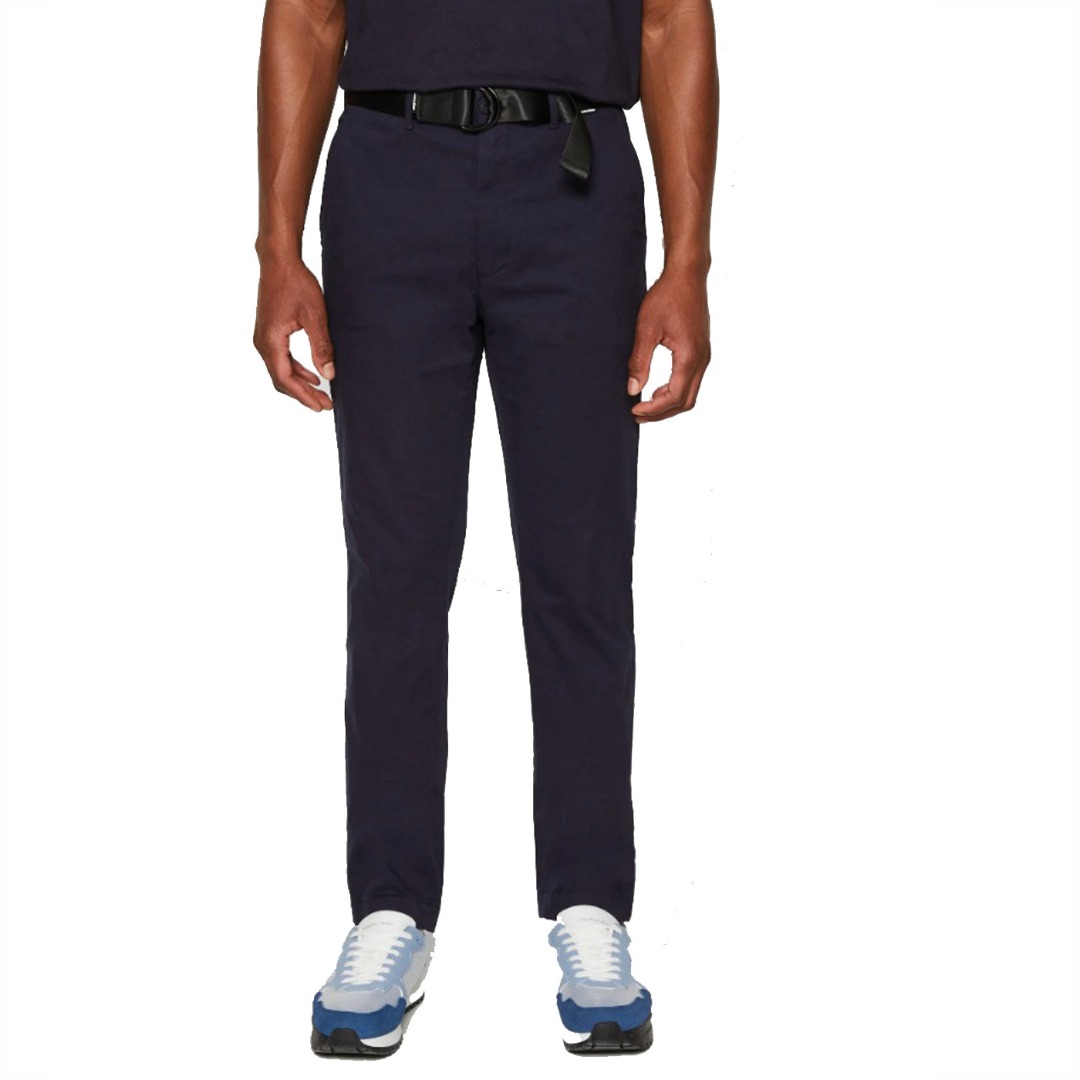 Modern. Stylish. Innovative. Calvin Klein Menswear offers an exclusive selection of men's styles, ranging from tailored suits to luxury sportswear. Chino pants made with 50% organic cotton. • modern stretch twill • organic cotton blend fabric • slim fit • medium rise • zipper fly • side seam pockets • welt pockets at back • D-ring belt included • Calvin Klein logo patch at waistband and back pocket