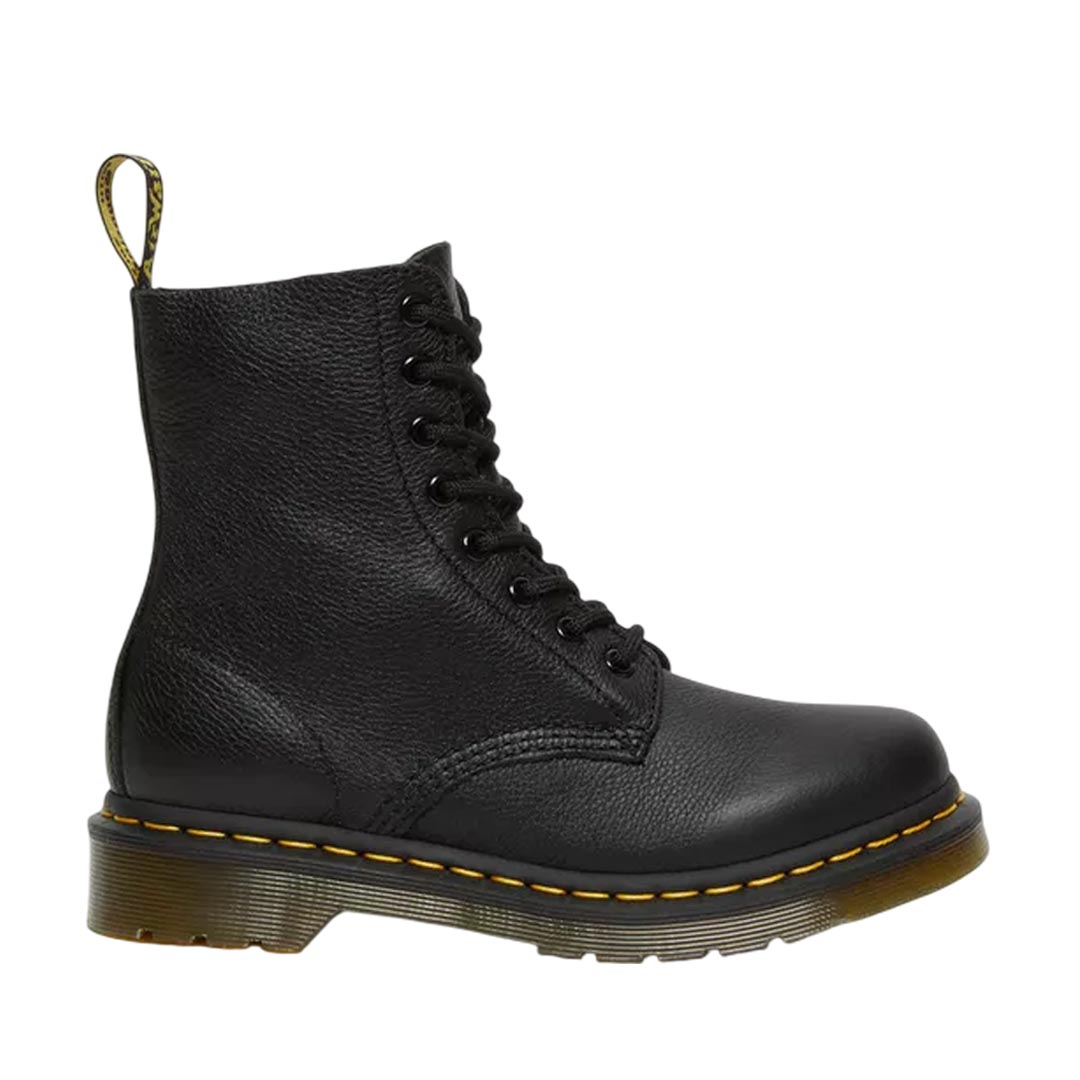 A new leather for an old classic: the iconic 8-eye 1460 amphibian is made of Crazy Horse, a sturdy leather with an aged and worn look. This unisex shoe expresses the classic Docs DNA: grooved edges, back strap and yellow stitching. Designed to last, this shoe is made with one of the finest construction techniques: the Goodyear welt, where the upper and sole are sewn together with our heat-sealed Z-seam. The shoe rests on our iconic AirWair ™ sole, resistant to oil and grease and with excellent anti-abrasion and anti-slip properties.