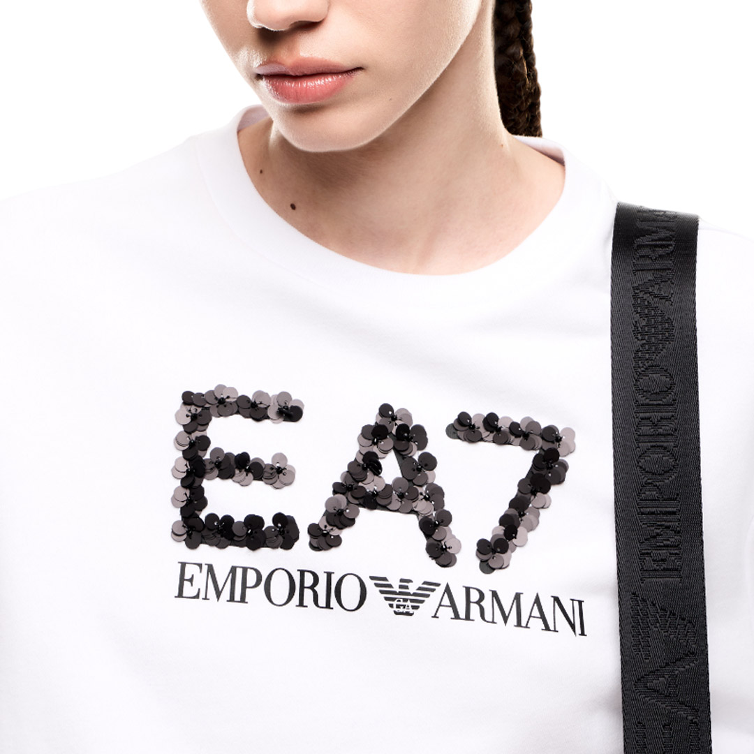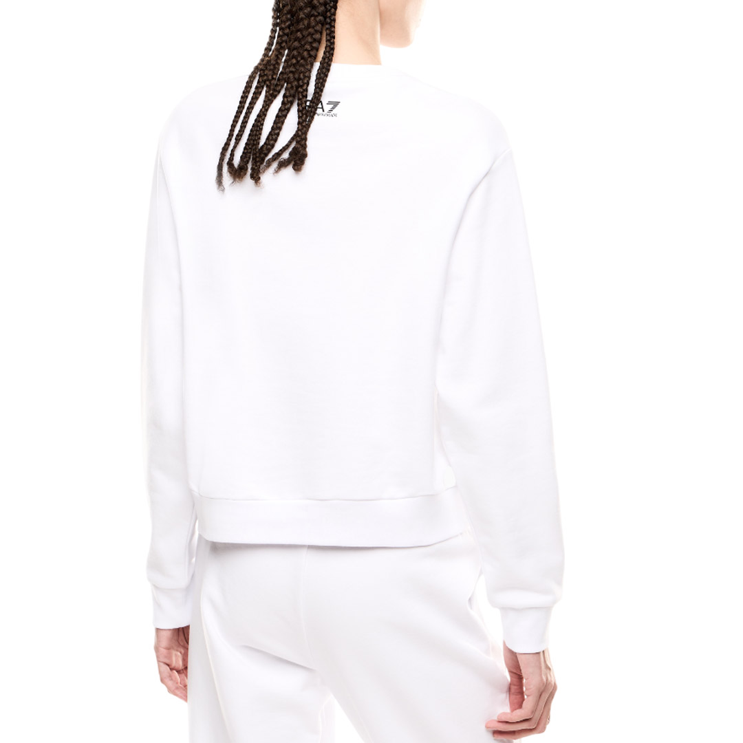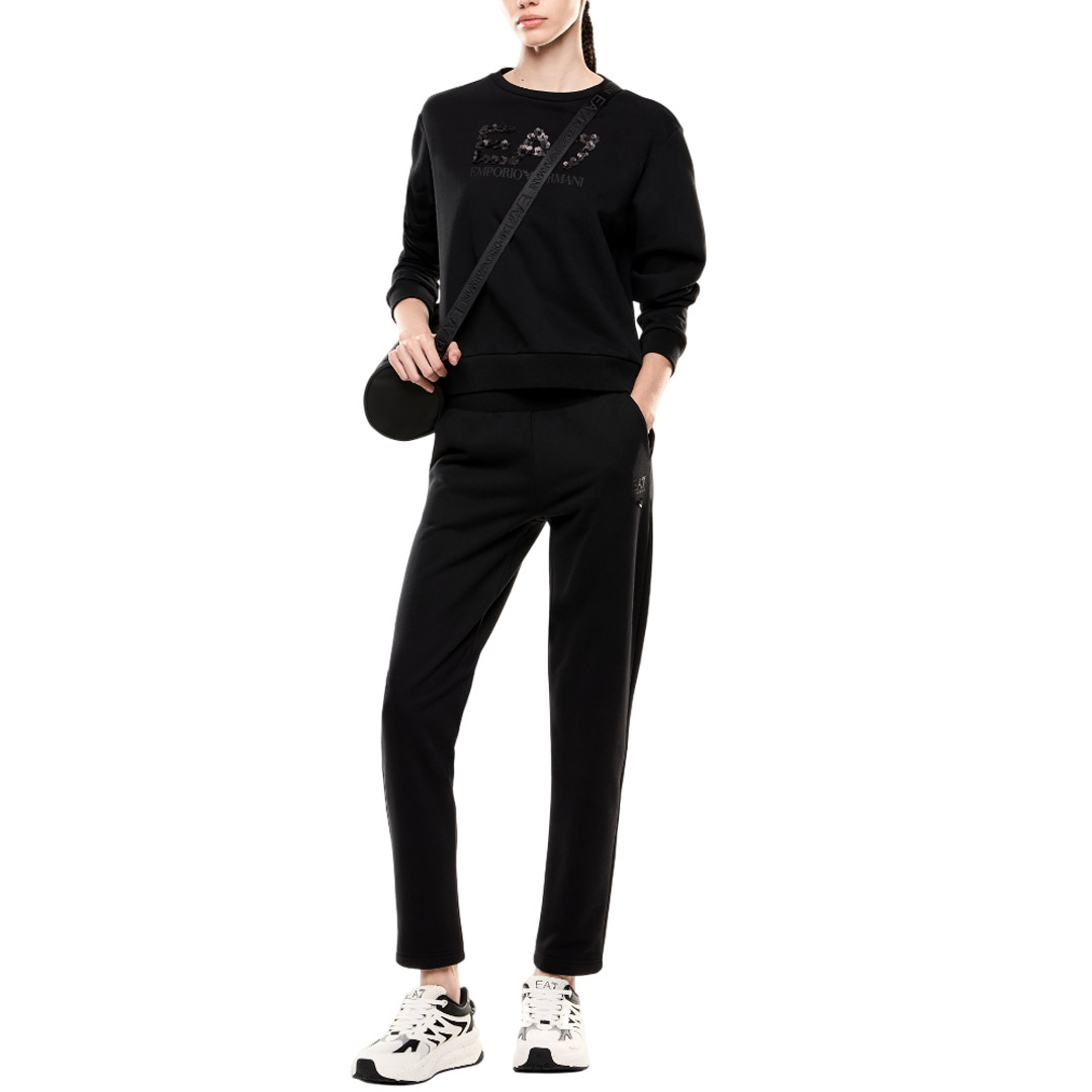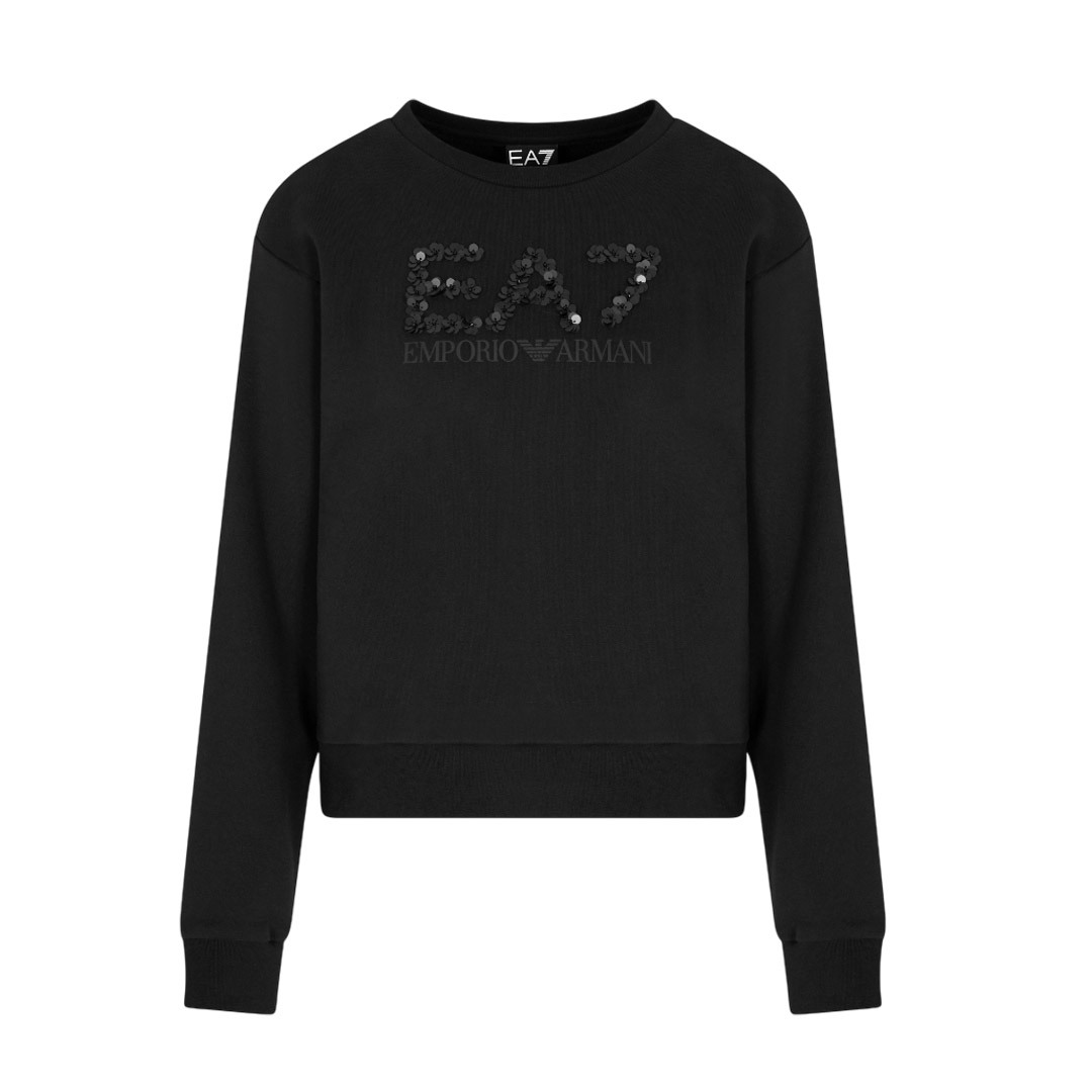 The maxi EA7 logo made with tone-on-tone sequins is the real protagonist of this cotton blend crewneck sweatshirt. This long-sleeved model has an extremely versatile attitude and is suitable for sporty or leisure outfits.