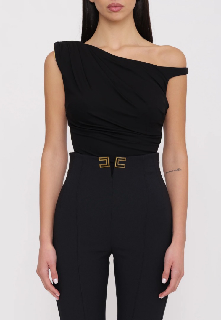 Elisabetta Franchi B'Short Nylon Down Jacket With Wide Collar' Black Pi76D46E2 127056
