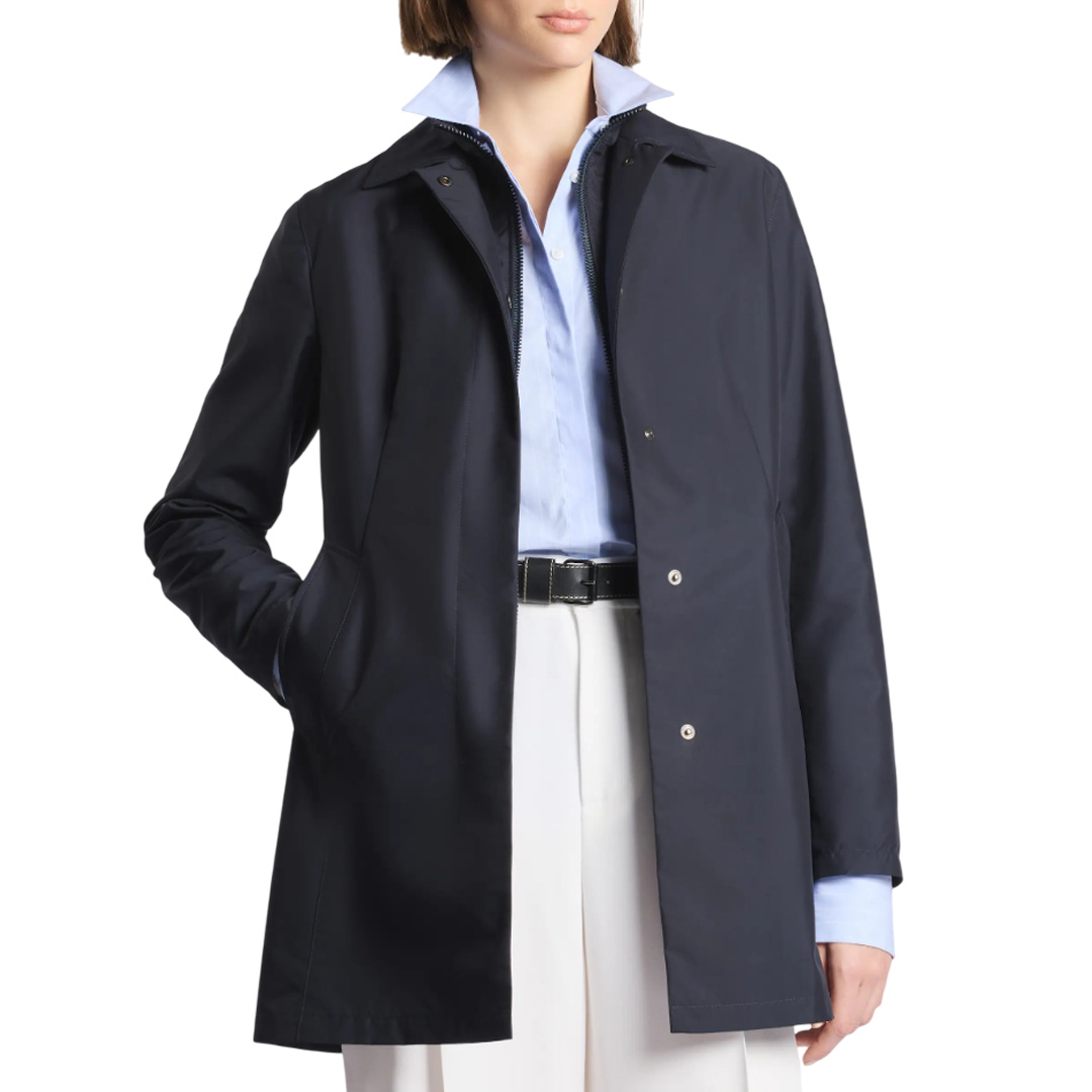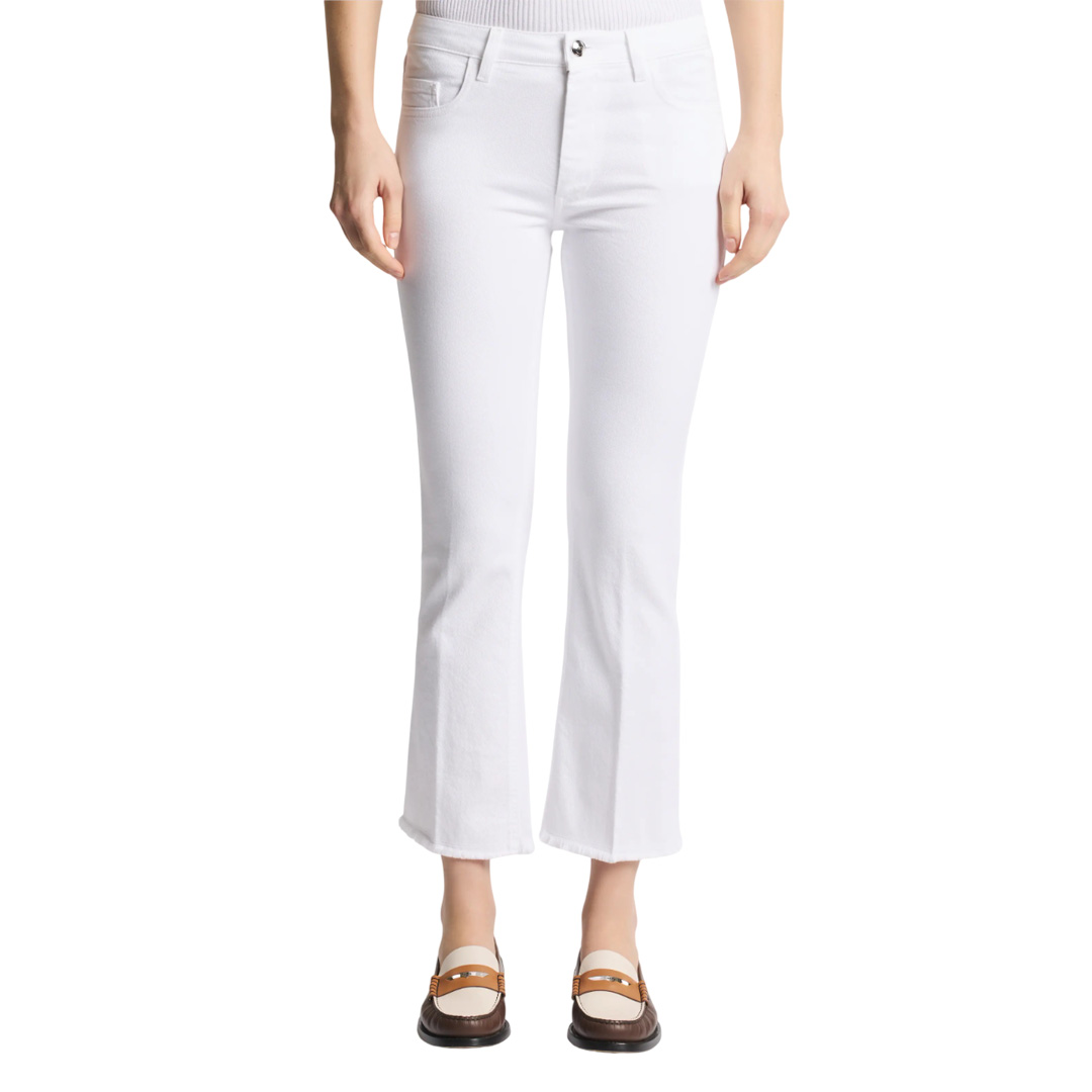 5-pocket skinny trousers in stretch cotton denim, with pressed crease and frayed leg bottoms. Featuring a zip and custom metal button fastening, they feature the signature leather patch on the back with the Fay logo.