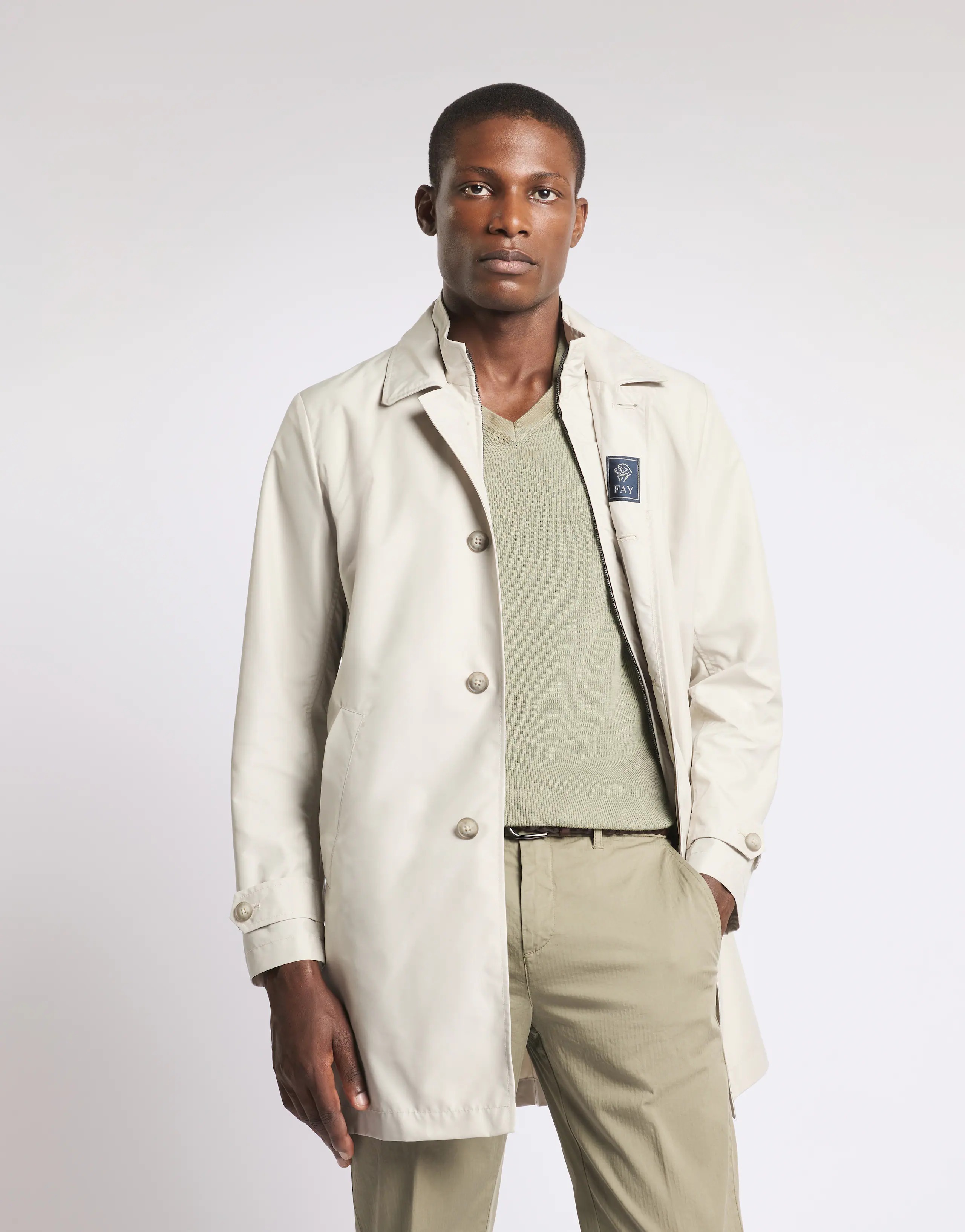 A contemporary interpretation of day-to-day dressing, the Morning Coat is the iconic double-front raincoat with a casual and versatile elegance. This unlined style is crafted from water-repellent technical poplin. Featuring welt pockets and buttoned cuffs, it features a hidden zip and button closure reminiscent of British raincoats. An internal pocket completes the piece. Made in Italy. Fit: regular.