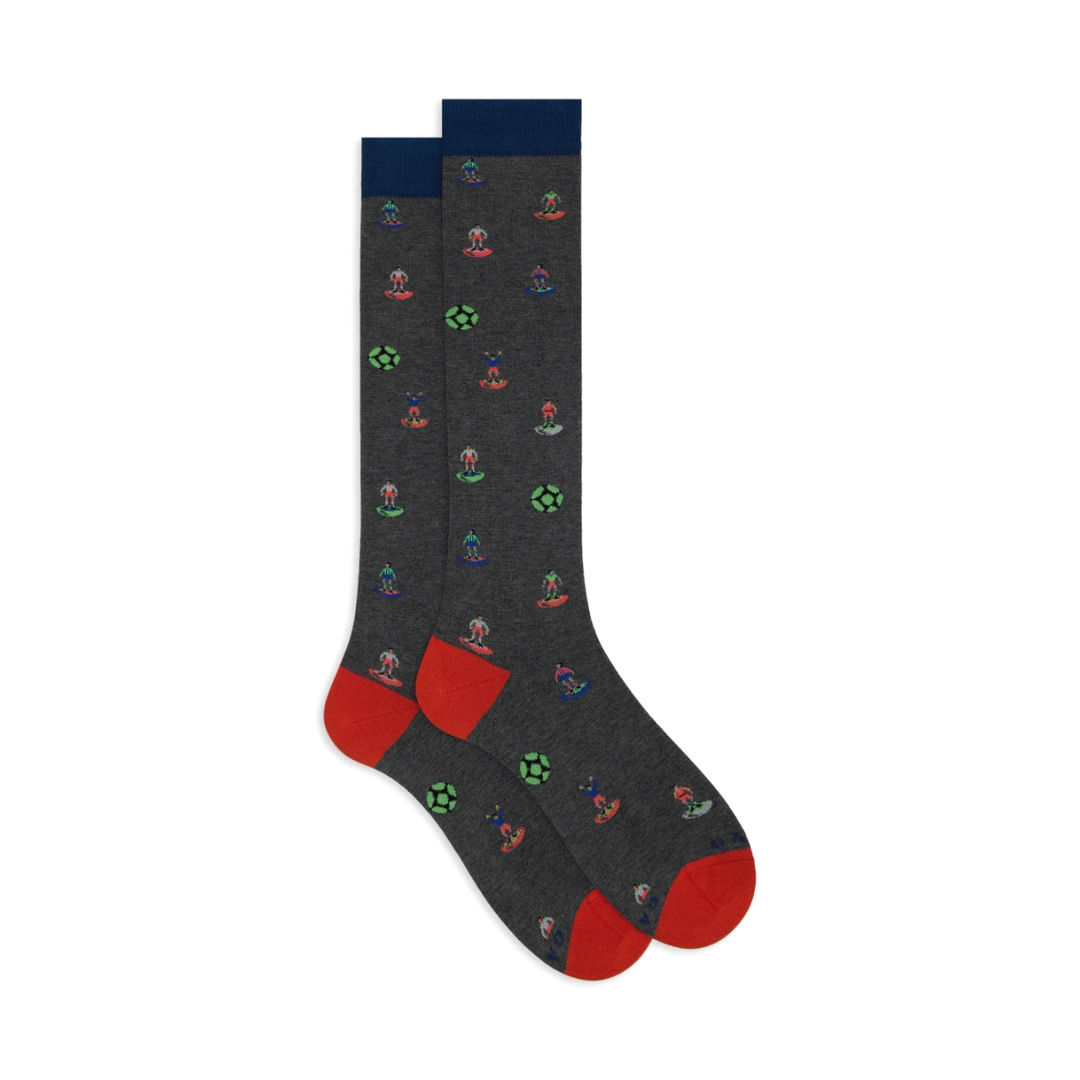 Men's long socks made in Italy. Solid burgundy with maxi geometric decorative elements in contrasting color. The Gallo logo is embroidered on the toe in contrast, same color as the band. The perfect fit Gallo, synonymous with Italian quality since 1927. Ideal to match with any type of look.