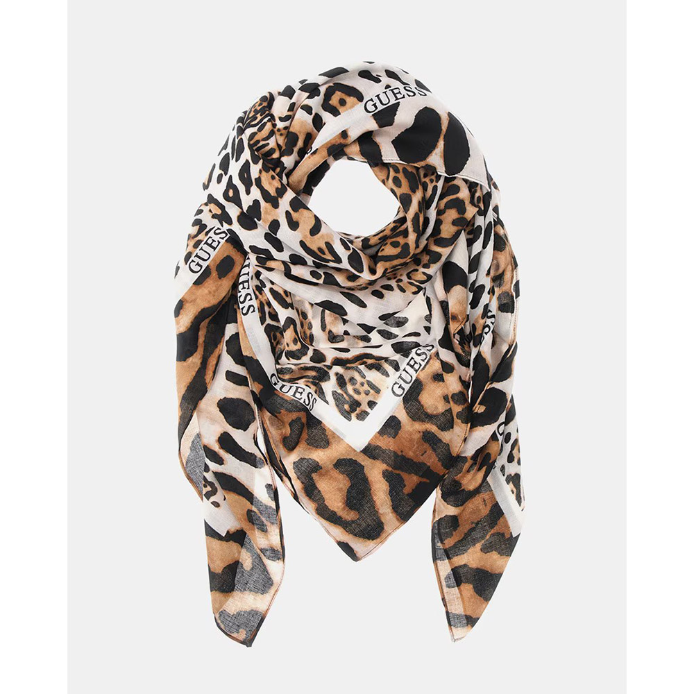 Guess scarf made of mixed fabric, the trendy accessory of the moment! Its elegant and timeless design is perfect for adding a chic and feminine touch to your look. Measurements: 130x130 cm