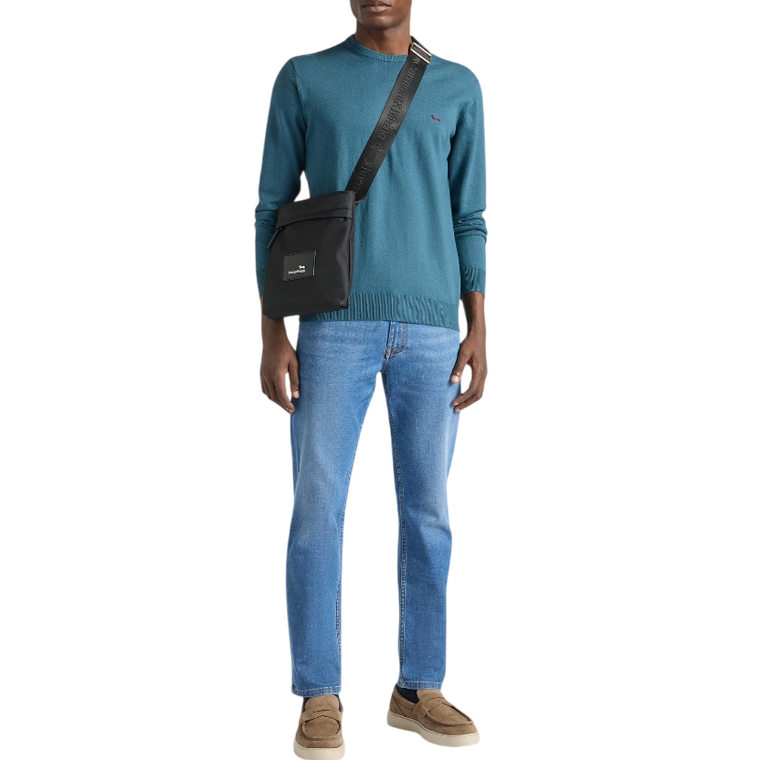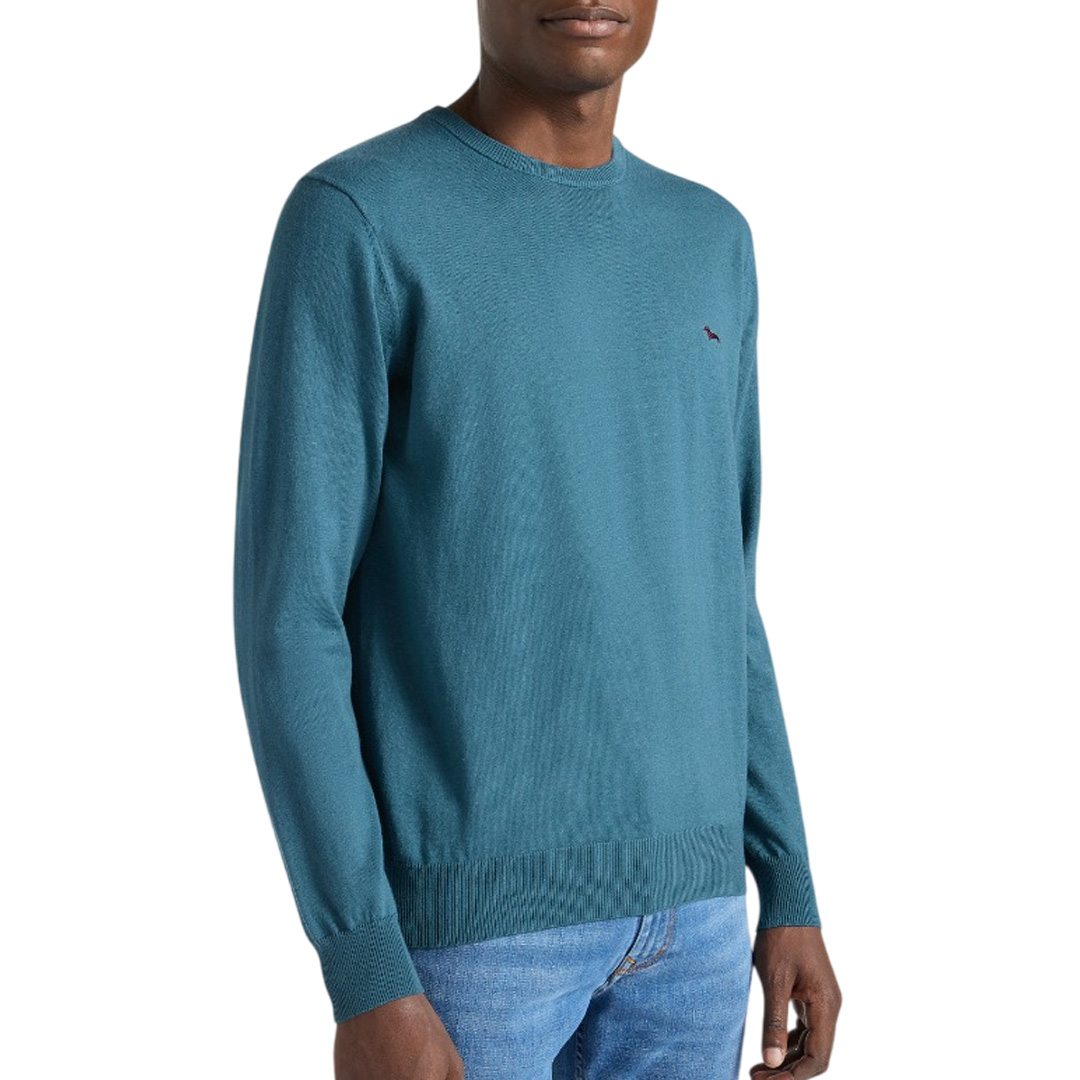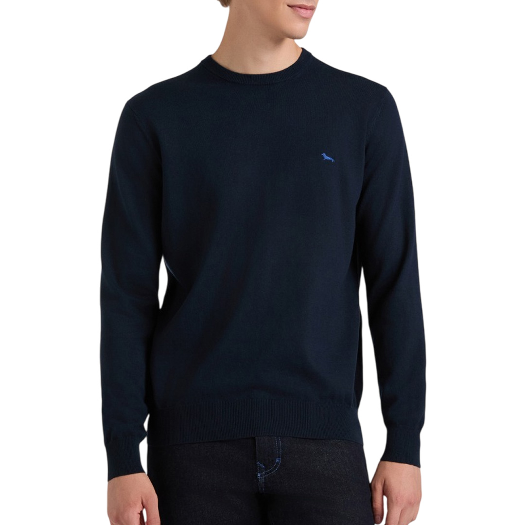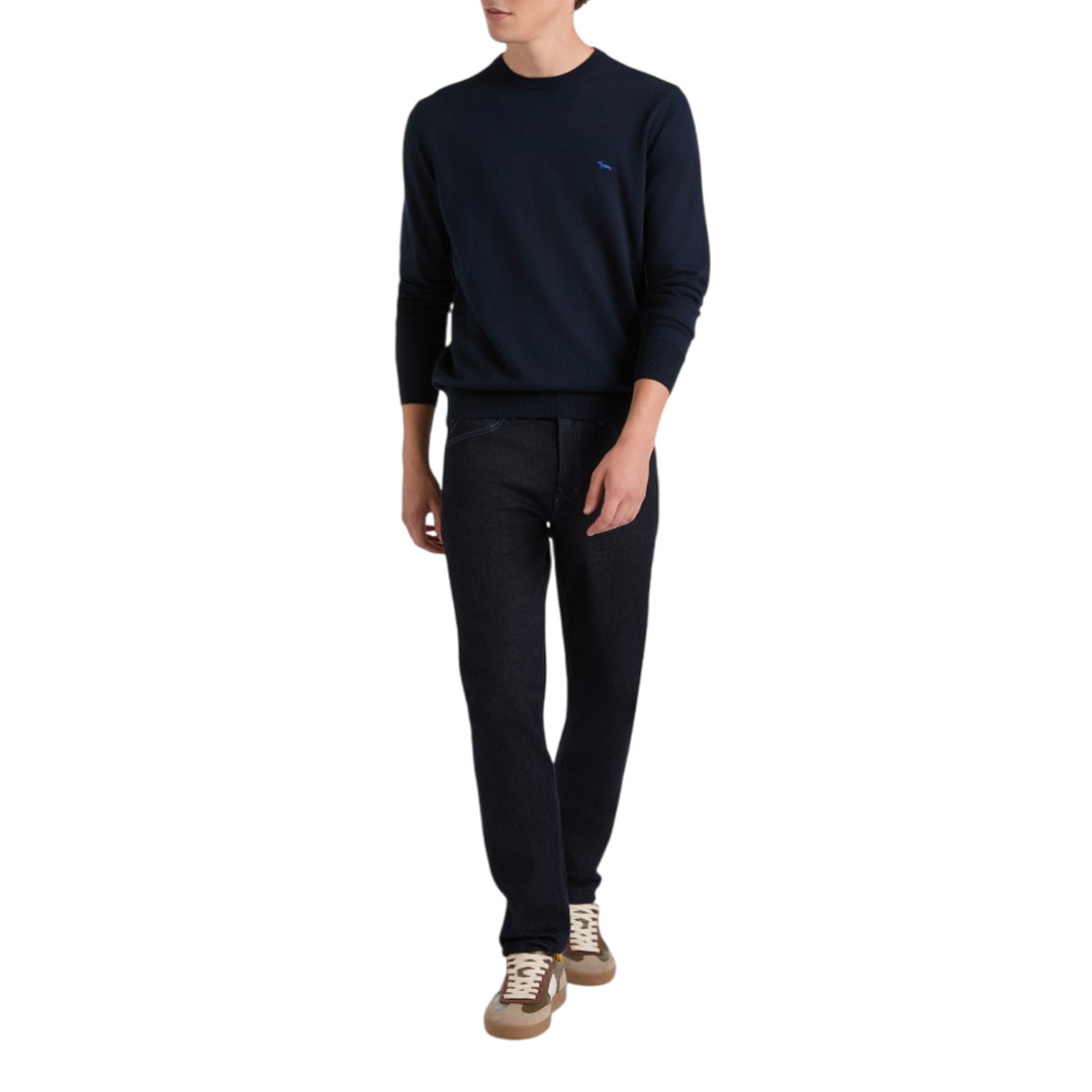 This men's crewneck sweater by Harmont & Blaine will become your inseparable companion for everyday outfits this cold season, thanks to its versatile solid color and soft, warm wool and cotton blend. This comfortable regular-fit piece features a ribbed collar, cuffs, and hem, while the iconic dachshund symbol, embroidered in a contrasting color on the chest, adds a touch of vivacity.
