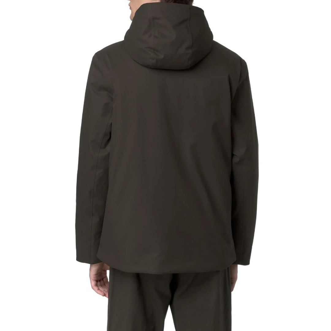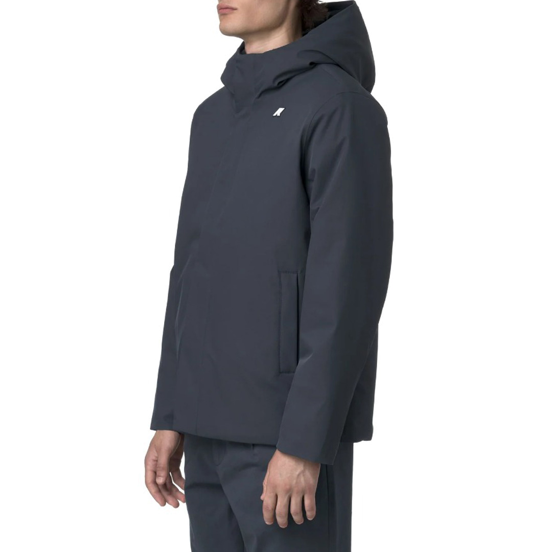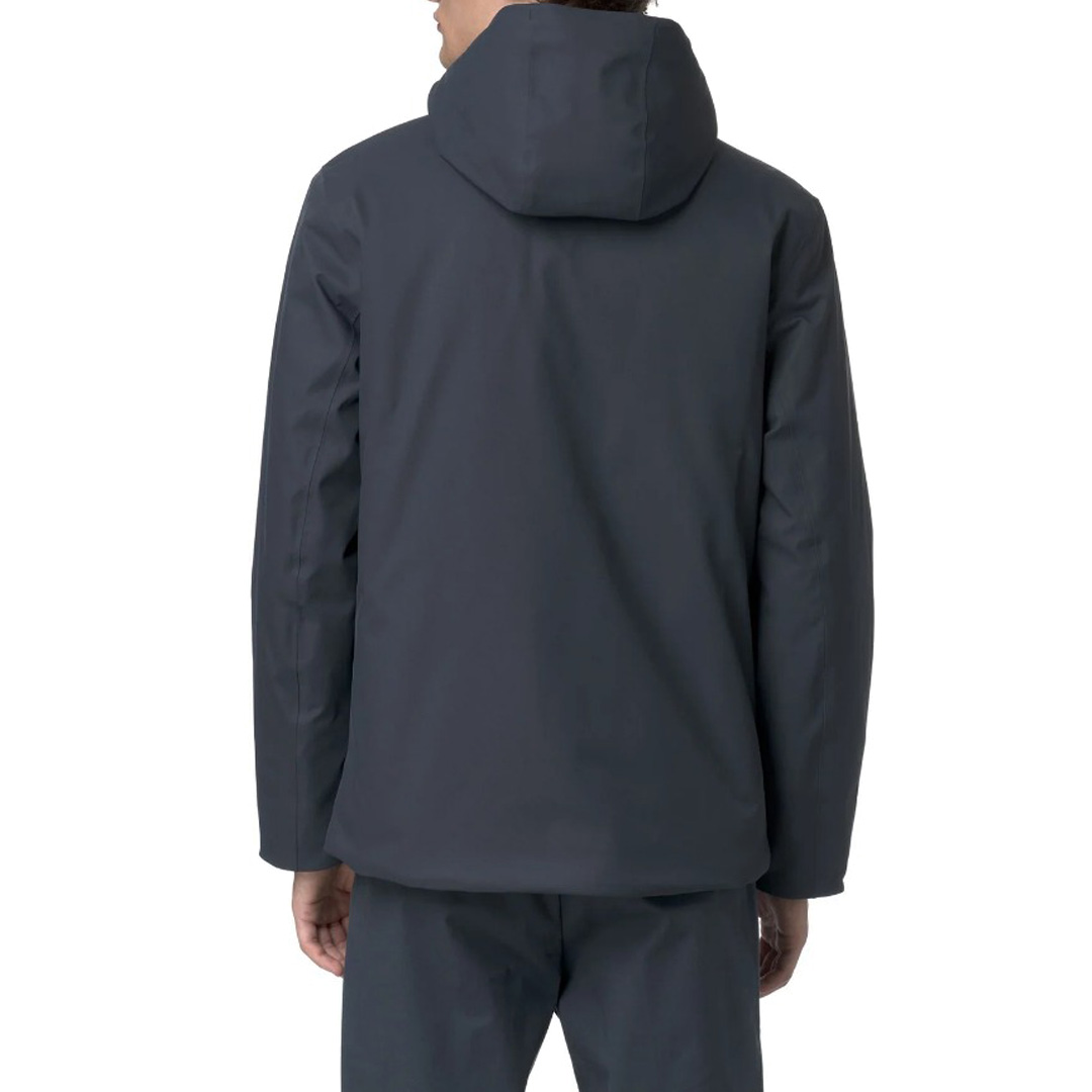 Jacko is a men's short jacket designed to resist rain and offer good protection in autumn and the early winter months. The model has a clean, city-ready line with a regular fit, adjustable hood and side pockets and is made of water- and wind-resistant polyester twill. The PrimaLoft padding, a highly insulating fiber made from recycled polyester, ensures medium warmth with minimal bulk and quick drying. The classic soft fabric lining has been updated to ensure an even more pleasant feeling next to the skin. Waterproof, water-repellent, windproof polyester twill fabric Soft fabric lining Lightweight wadding Medium warmth Heat-taped seams Non-detachable hood adjustable with elastic drawcord and toggle Zip closure covered by a flap Cuffs with internal gaiter Two zip pockets Regular fit White silicone logo applied