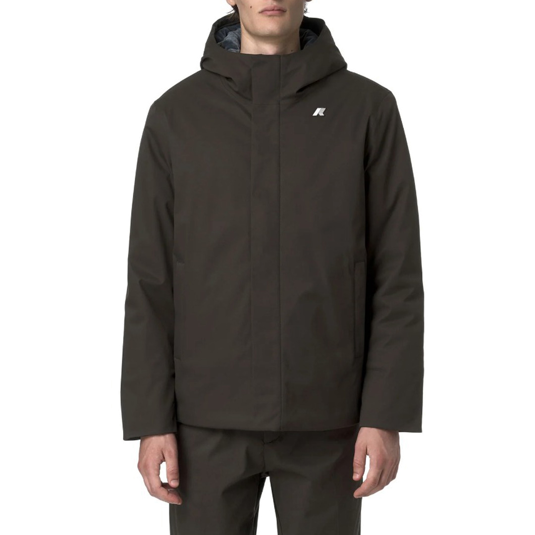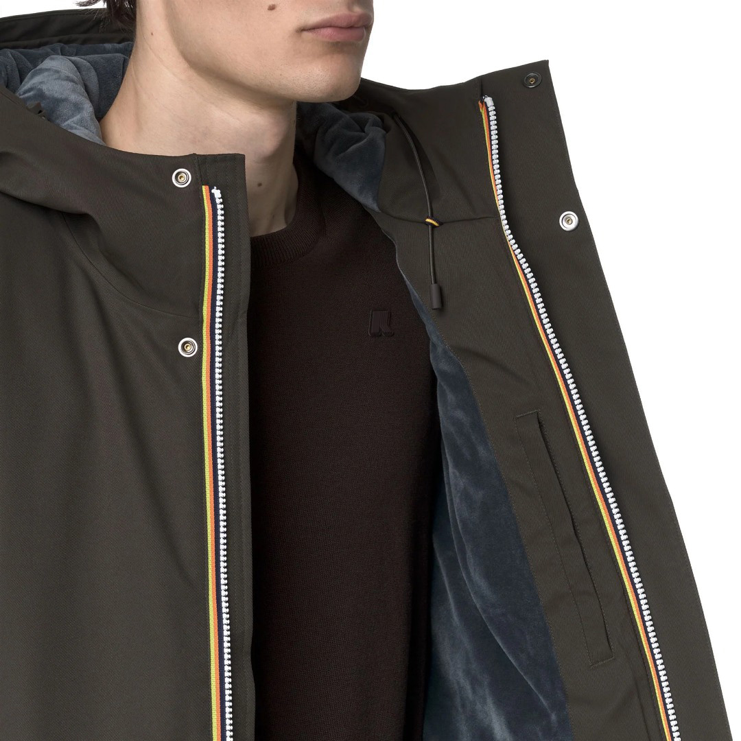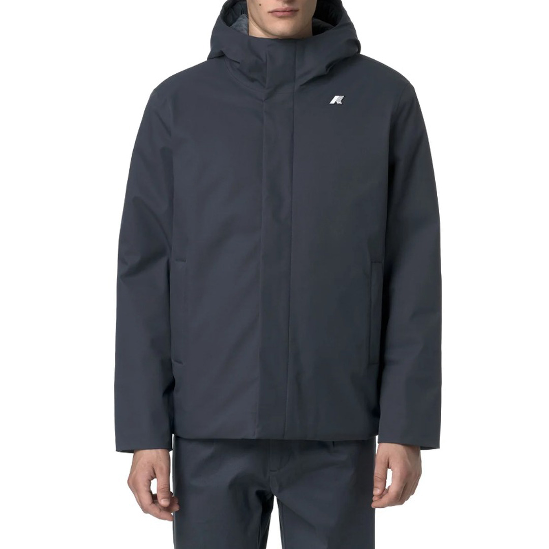 Jacko is a men's short jacket designed to resist rain and offer good protection in autumn and the early winter months. The model has a clean, city-ready line with a regular fit, adjustable hood and side pockets and is made of water- and wind-resistant polyester twill. The PrimaLoft padding, a highly insulating fiber made from recycled polyester, ensures medium warmth with minimal bulk and quick drying. The classic soft fabric lining has been updated to ensure an even more pleasant feeling next to the skin. Waterproof, water-repellent, windproof polyester twill fabric Soft fabric lining Lightweight wadding Medium warmth Heat-taped seams Non-detachable hood adjustable with elastic drawcord and toggle Zip closure covered by a flap Cuffs with internal gaiter Two zip pockets Regular fit White silicone logo applied