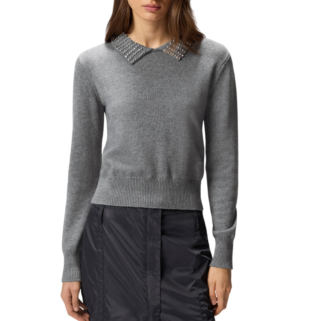 A shower of sparkling sparkles embellish this sweater from the Pure Verve capsule collection, featuring a cable and diamond pattern. This piece features a round neckline, ribbed edges, and dropped armholes.