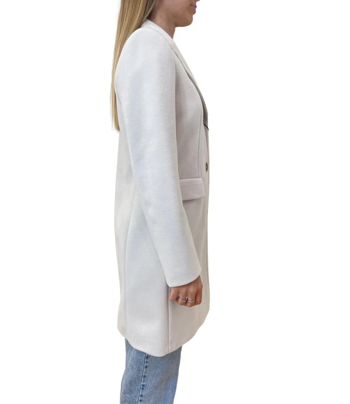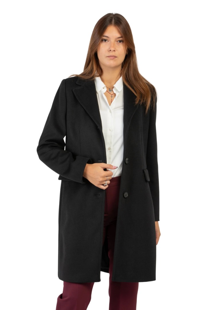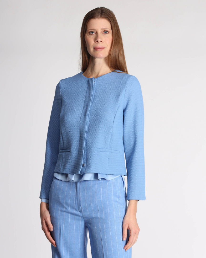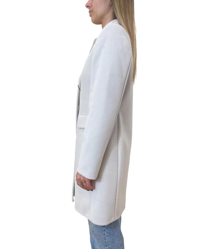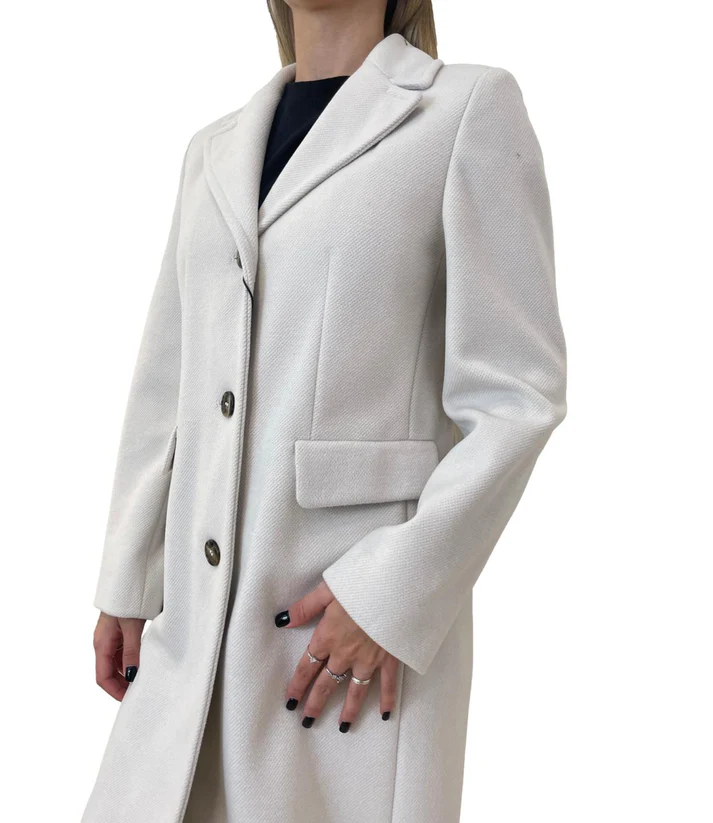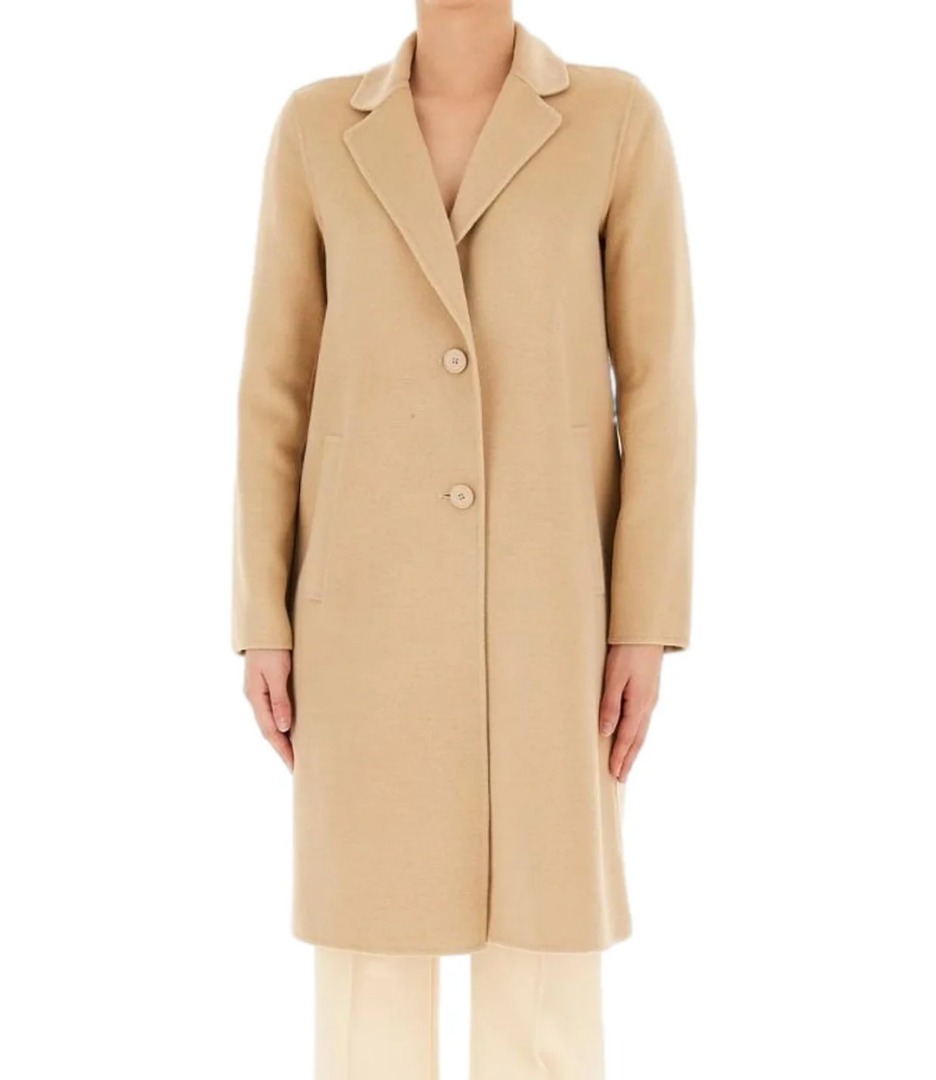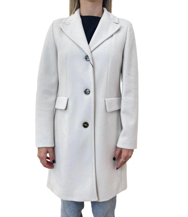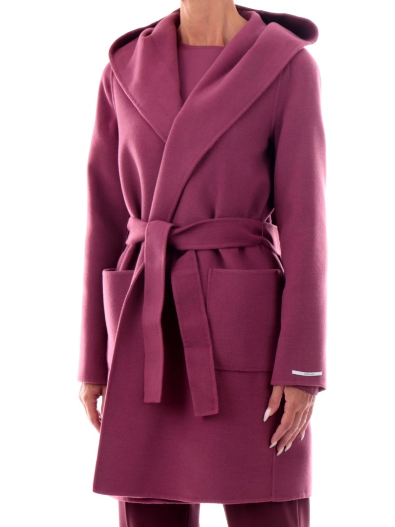 Elegant pink "Acerbi" coat with classic lapels and button closure. Long, feminine silhouette with flap pockets. Crafted from soft jersey for a sophisticated and comfortable look.