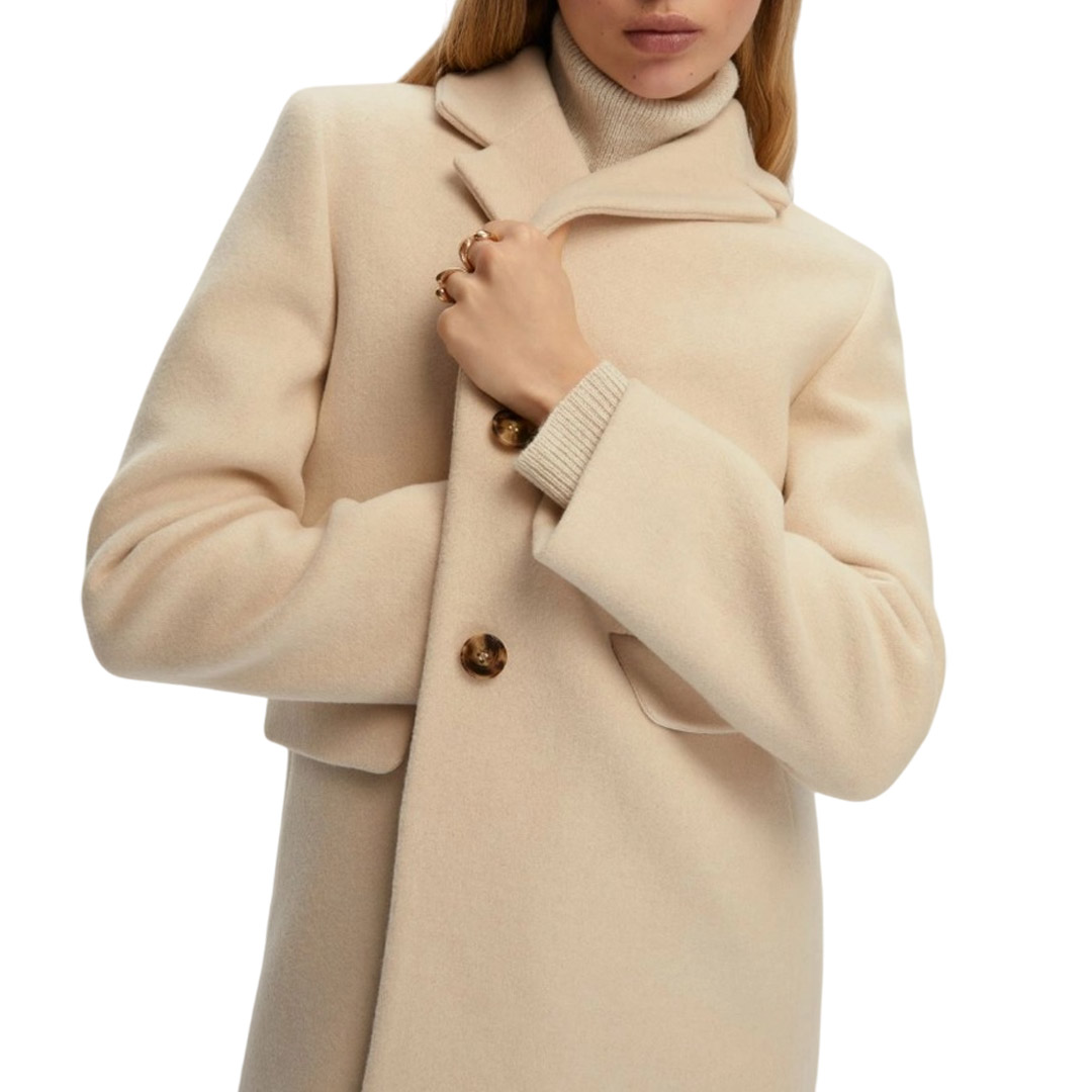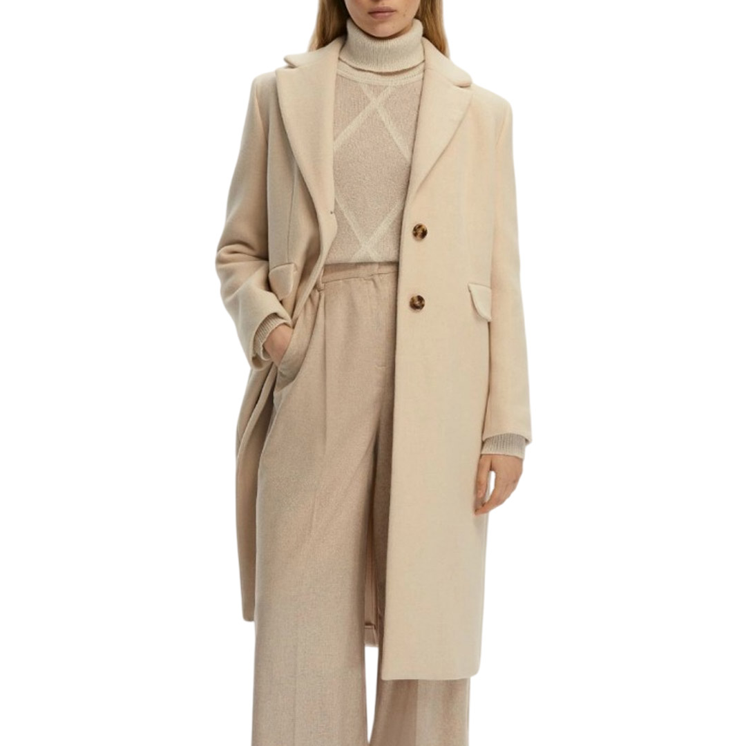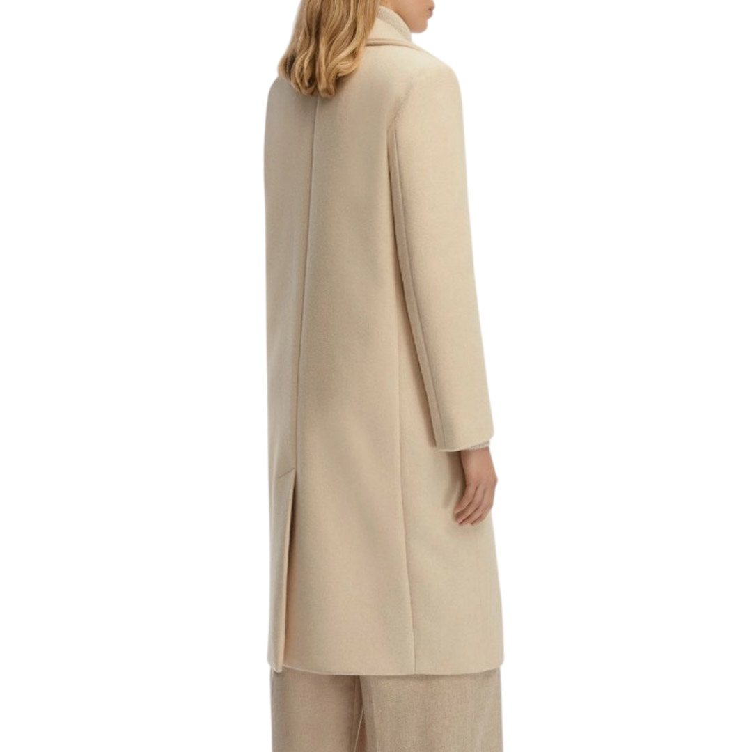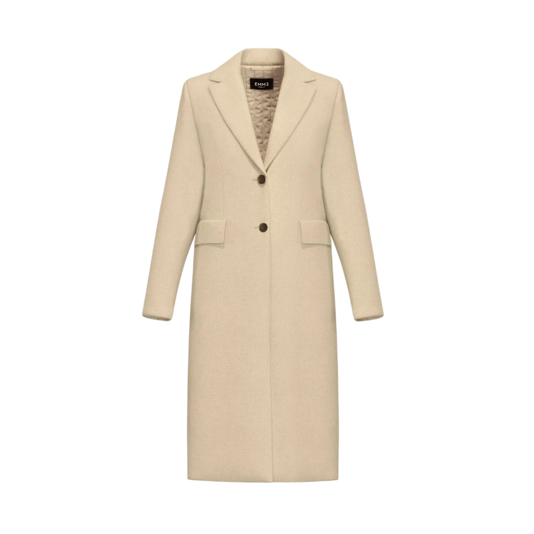 The Manteco fabric coat interprets the concept of contemporary elegance with a precise silhouette, enlivened by notched lapels and a semi-fitted fit that skims the figure. The quilted interior padding adds comfort, for a total tone-on-tone look in a play of purity and designer minimalism. Coat in double-layered cloth, with quilted interior padding and a Manteco label. Semi-fitted fit. Lapel neck. Single-breasted closure with two buttons. Front darts and welt pockets with flap. Center back vent.