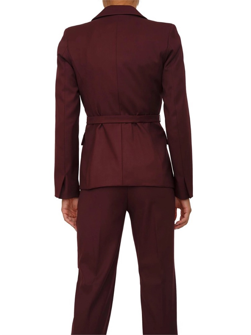 Soft flannel, double-breasted cut, a belt to cinch and define the silhouette: the new blazer lends itself to elegant pairings with matching pants. Add a clutch and sandals for a sophisticated city look. With this item, you will receive a free surprise by Luce Beauty by Alessia Marcuzzi. Stretch viscose blend flannel blazer. Feminine, fitted fit. Peak lapel neckline. Double-breasted button closure with waist belt. Side flap pockets. Lined.