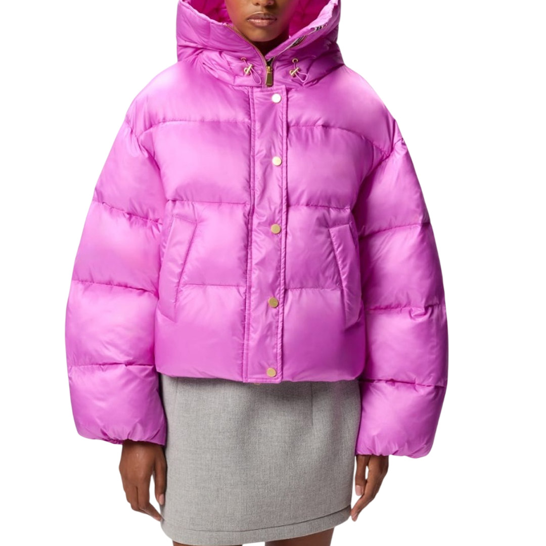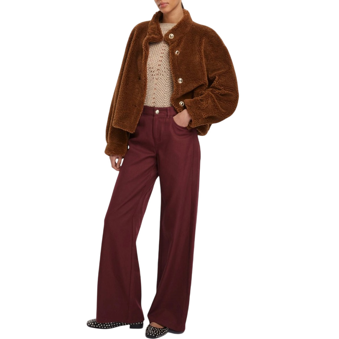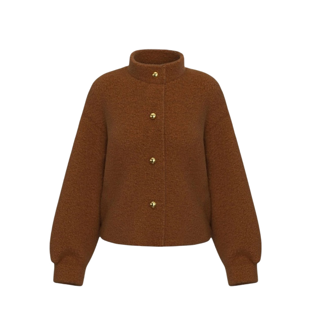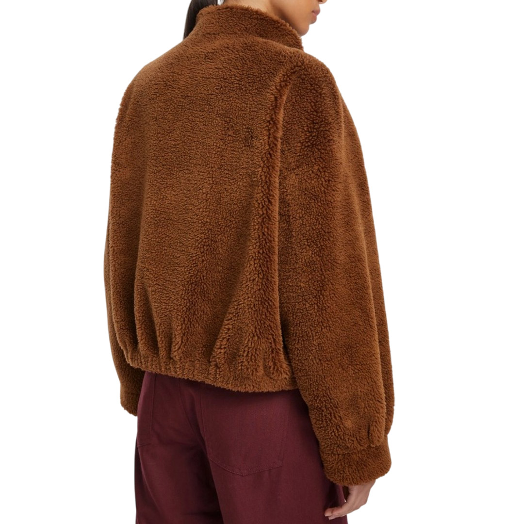 A glamorous choice to wear over and over again, this reversible bomber jacket features one side in furry knit and the other in smooth, soft fabric. Play with style and choose what you will be today. Reversible bomber jacket with one side in fluffy knit and the other in smooth, soft fabric. Relaxed fit. Stand-up collar. Horn-effect button closure on the outside. Inset side pockets. Elasticated insert at the bottom.