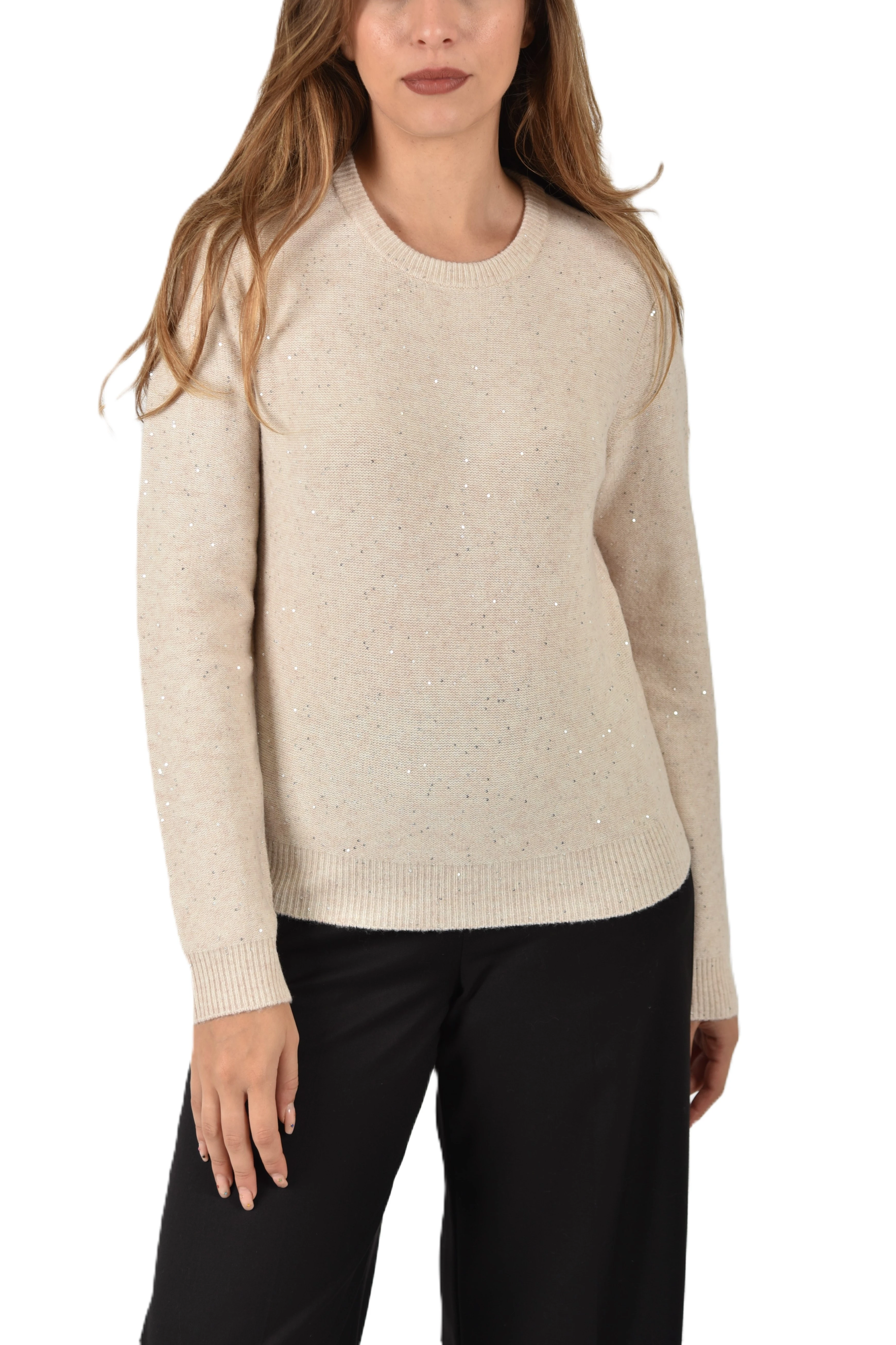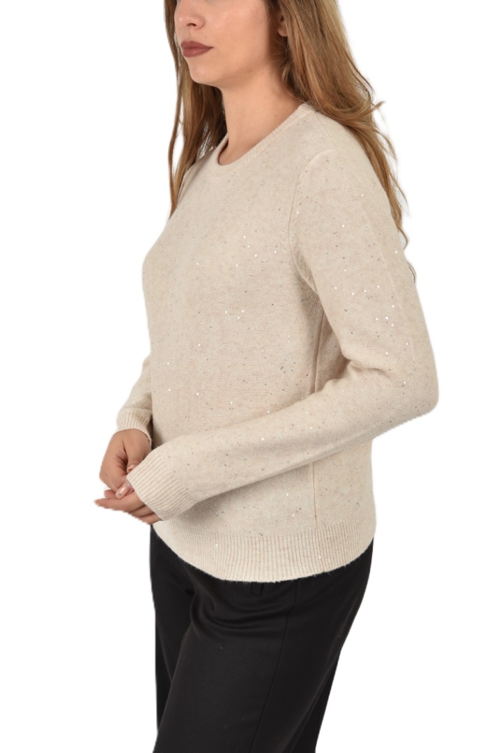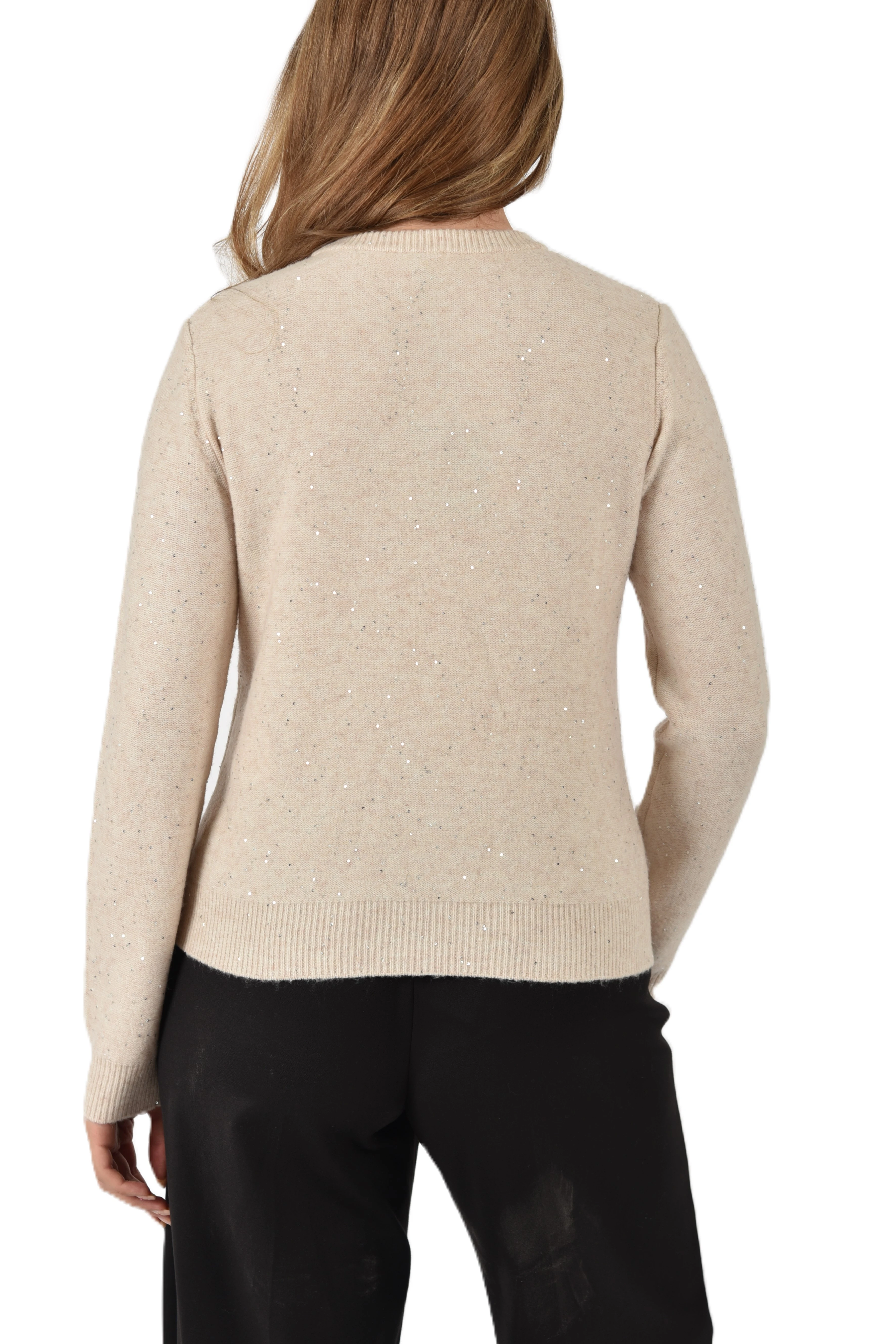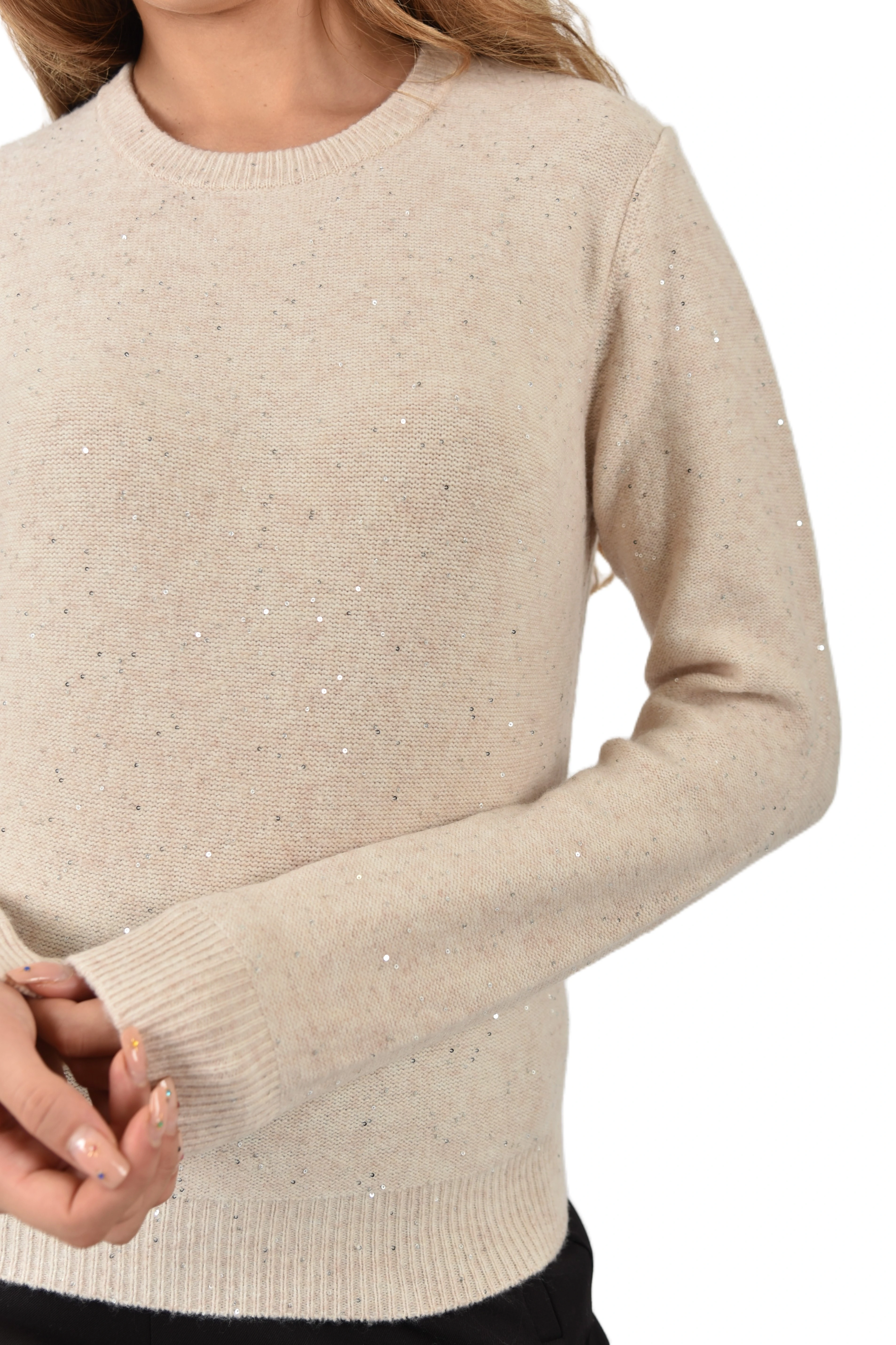 Soft-textured sweater with a balanced mix of comfy yarn and subtle sequins. The straight fit and purl knit add a contemporary twist, while the ribbed edges define its essential character. Comfy yarn sweater with sequins. Straight fit. Crew neck. Reversed stockinette stitch. Ribbed cuffs, collar, and hem.