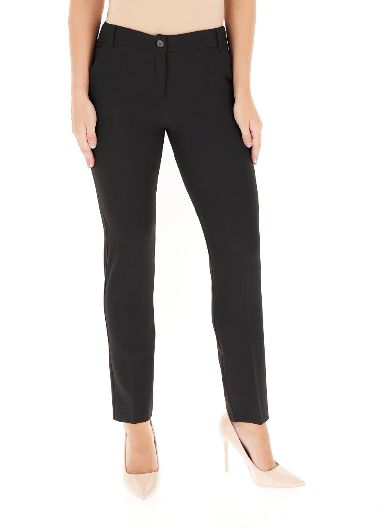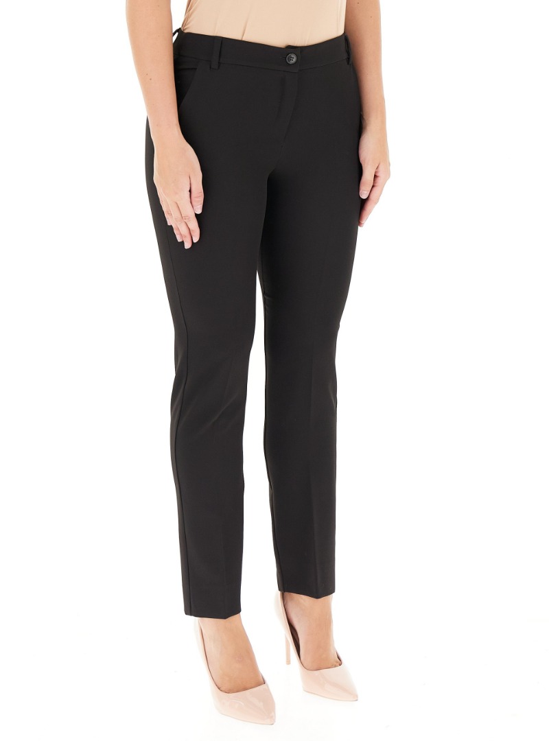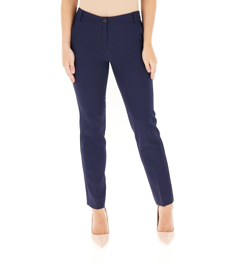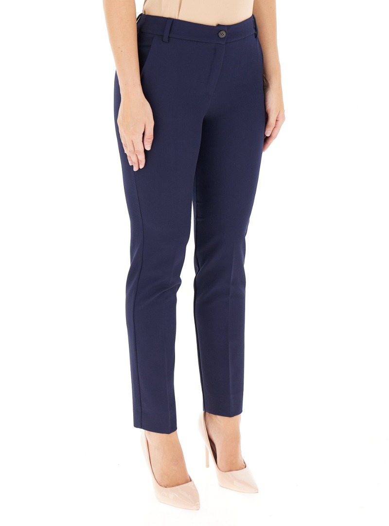 These women's cigarette trousers by EMME MARELLA strike the perfect balance between contemporary style and everyday practicality. Crafted from a technical diagonal fabric, they offer an impeccable fit that flatters the figure without sacrificing comfort. The tapered silhouette lends an elegant and feminine touch, ideal for both the office and more formal occasions. Side pockets add practicality, while the zip and button closure ensures a secure and refined fit. A versatile and modern piece, designed to accompany the dynamic woman throughout the day with class and ease.