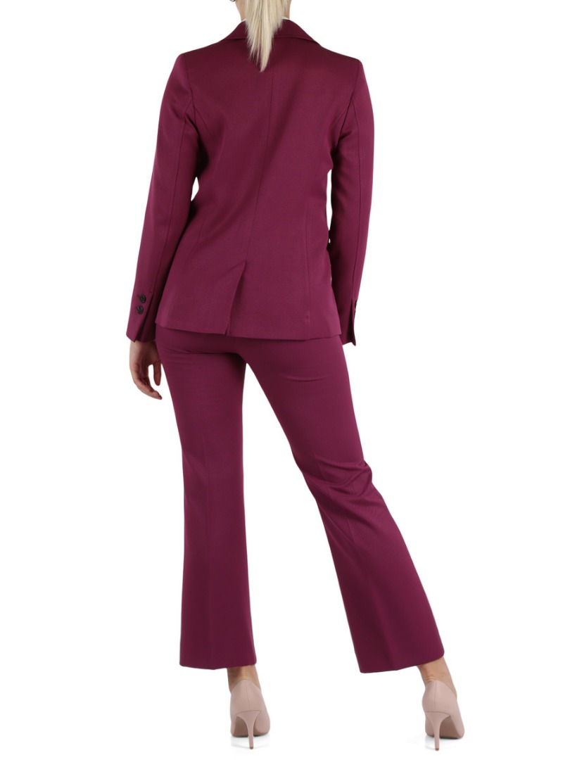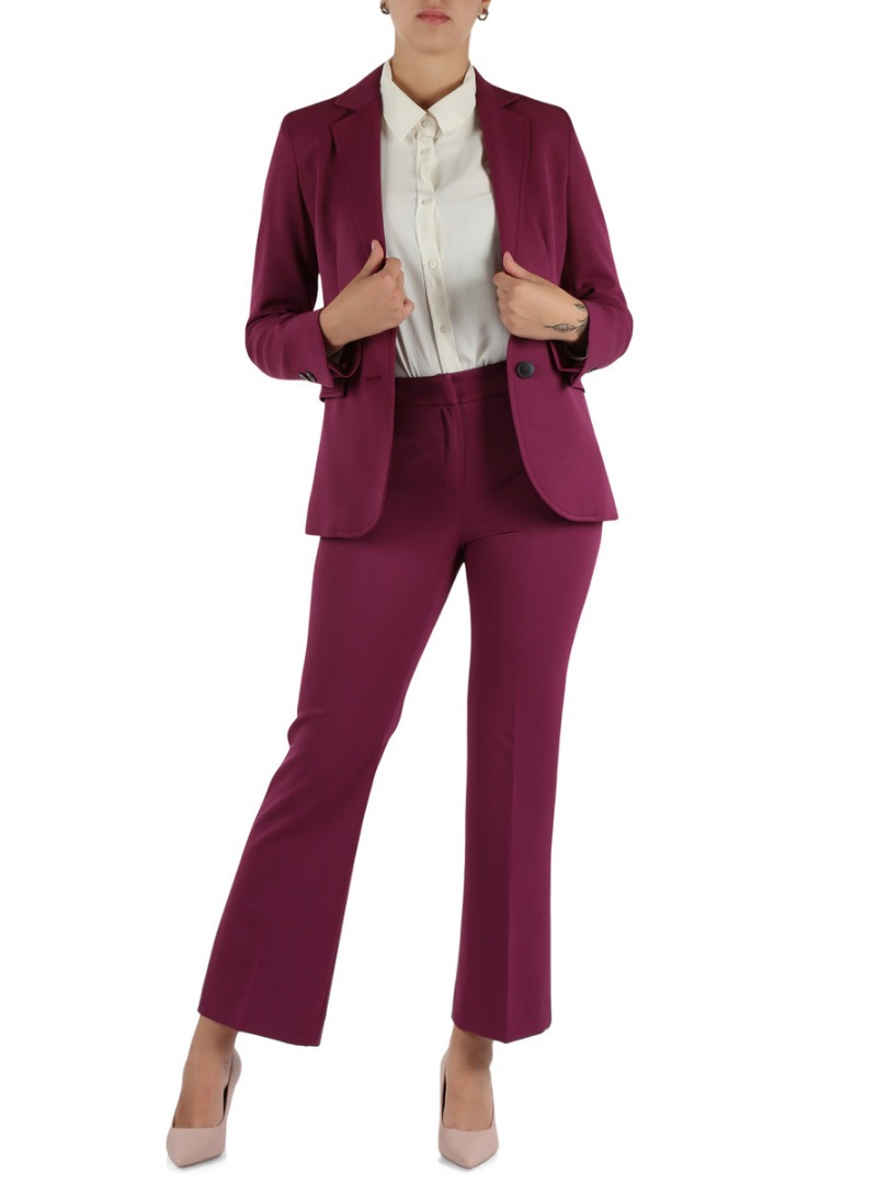 The elegant Emme Marella Nume women's suit is perfect for the sophisticated and refined woman seeking an impeccable outfit. The jacket features a lapel collar, long sleeves, and a button closure, while the trousers have a snap button and concealed zip closure. With front pockets and refined details, this suit is a must-have for those who love timeless style.