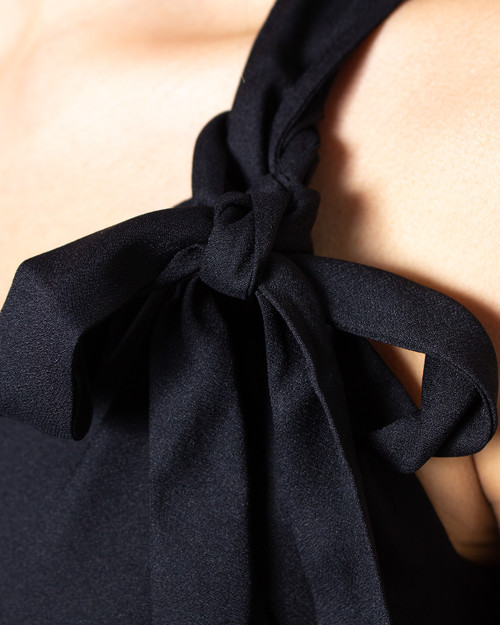 Top Emme Marella, V-neck, removable bow on the left shoulder, bottom flounce.