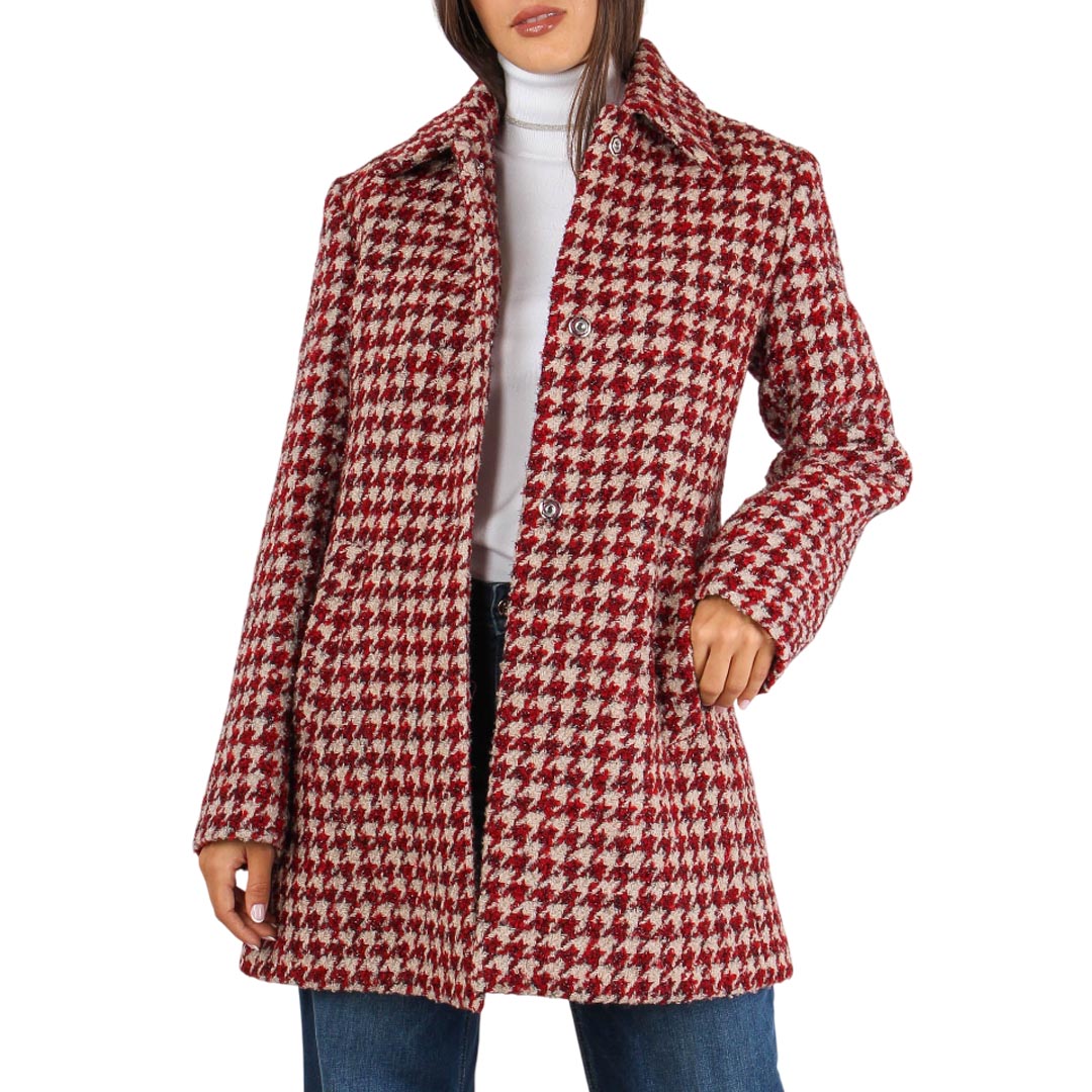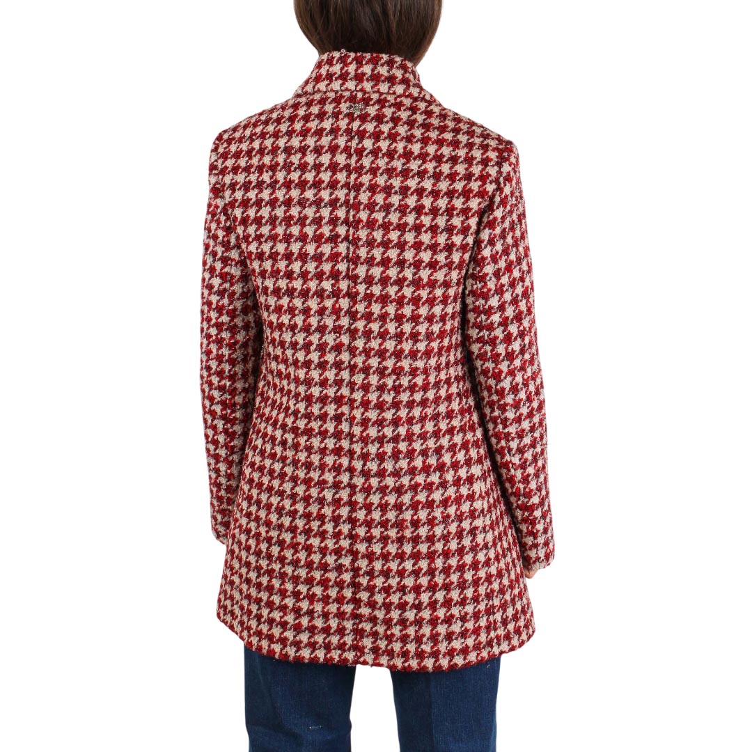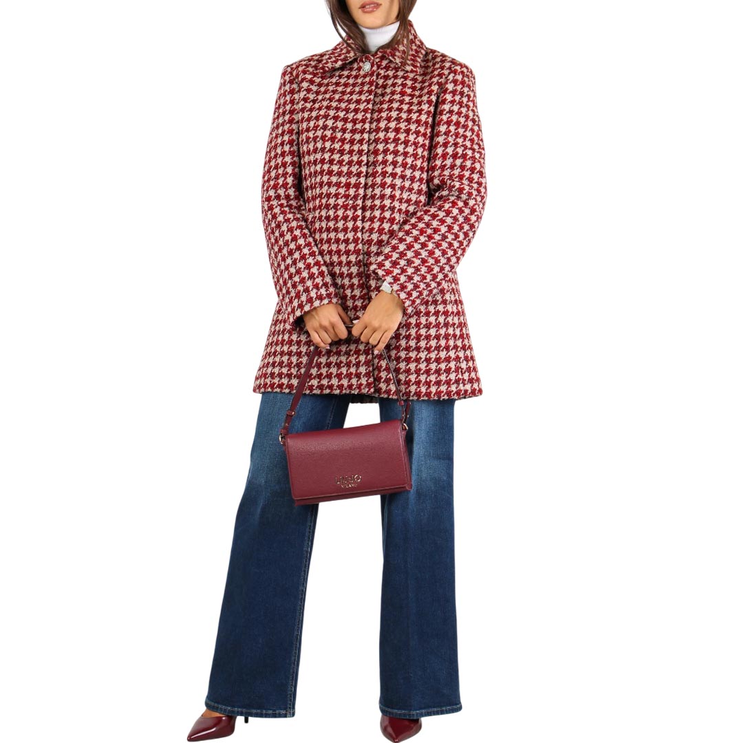 Liu Jo women's coat in a blend of fabric with a red and white houndstooth pattern. An elegant and refined silhouette, it's embellished with jeweled buttons on the front. Featuring side pockets and a lining, it's the perfect piece to add a touch of sophistication to your fall and winter outfits.