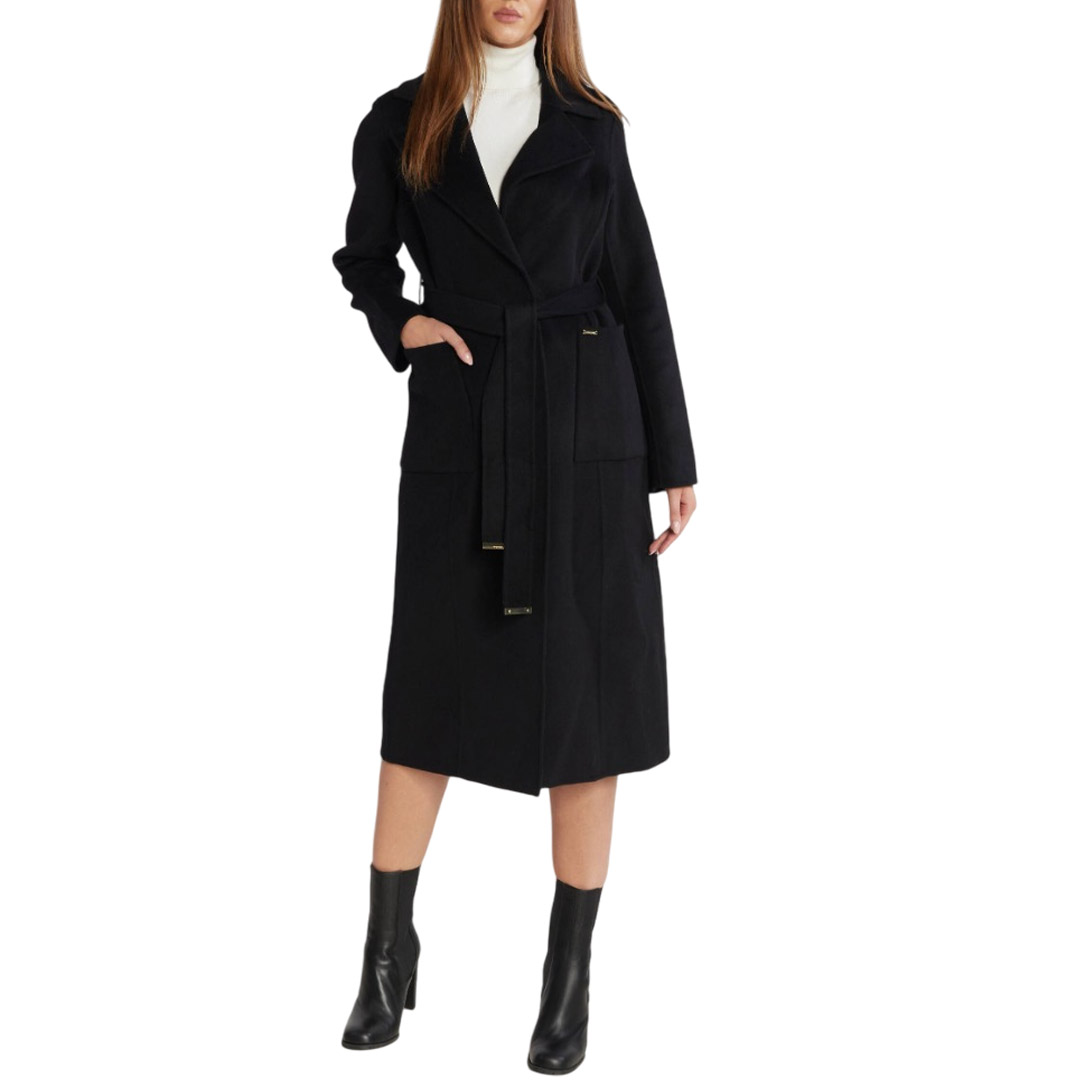 Coat in viscose blend Lurex® details Chevron motif Lapel collar Patch pockets on the sides Cuffs with turn-ups Back slit Closure with matching belt in sur ton