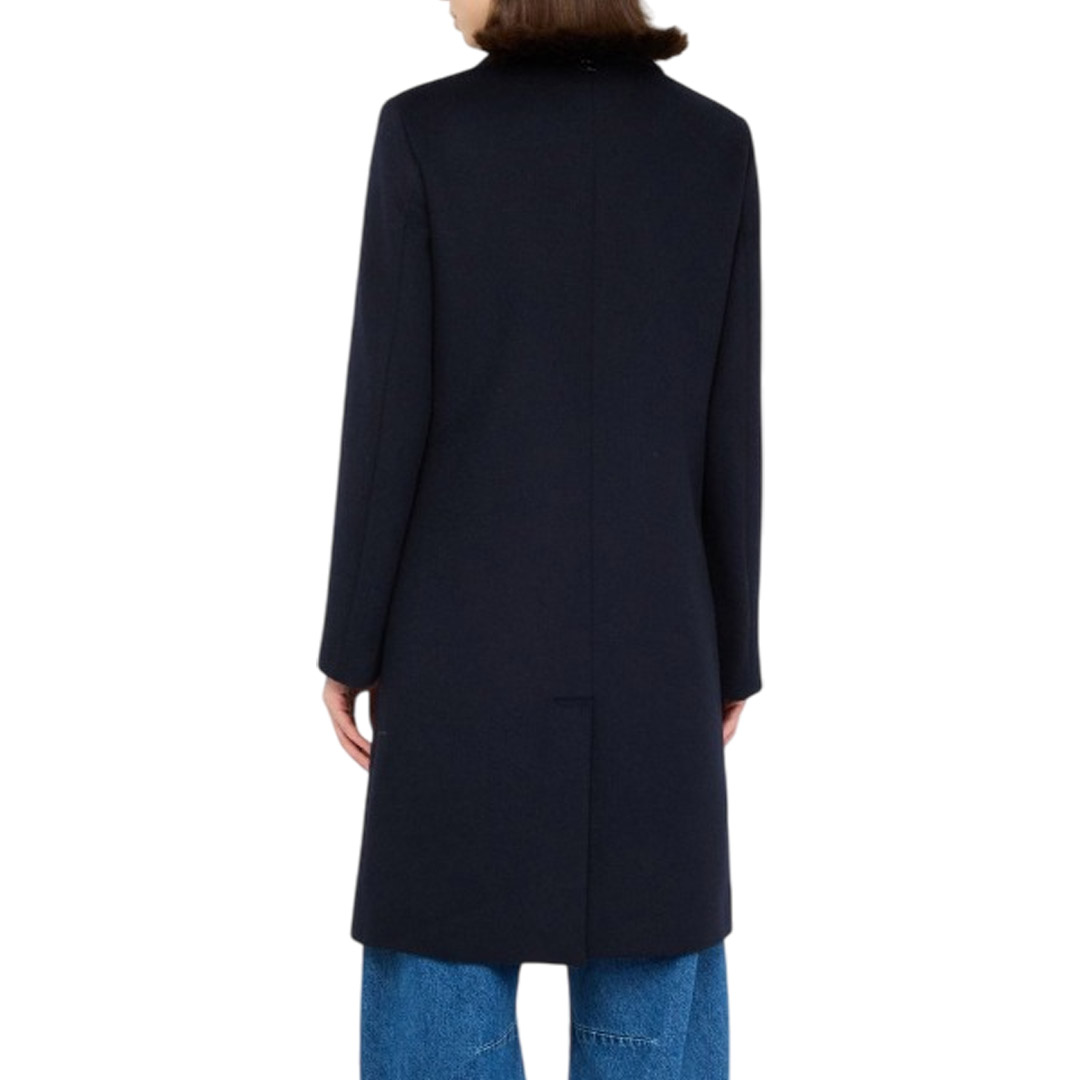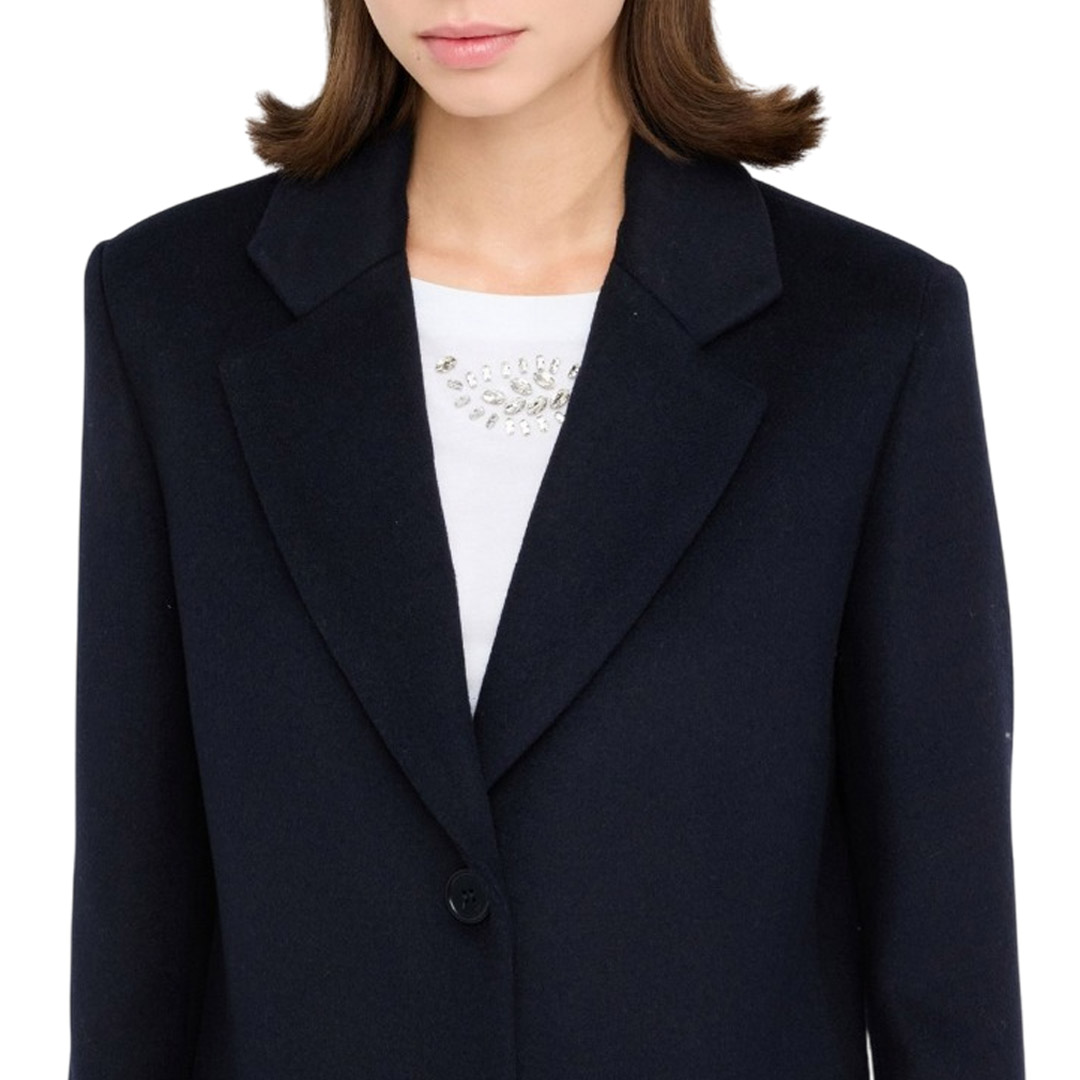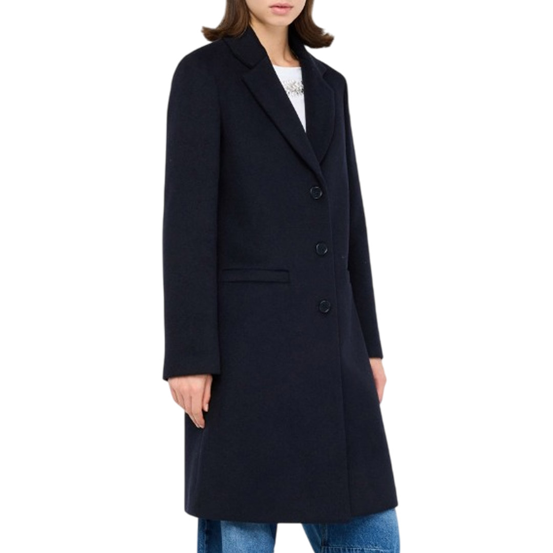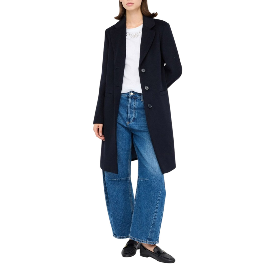 Dark blue wool coat Classic lapel Welt pockets Back vent Single-breasted three-button closure