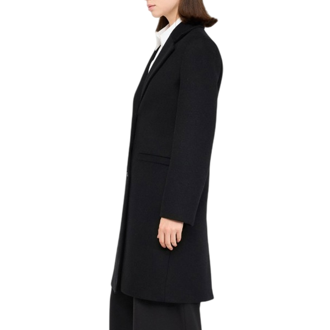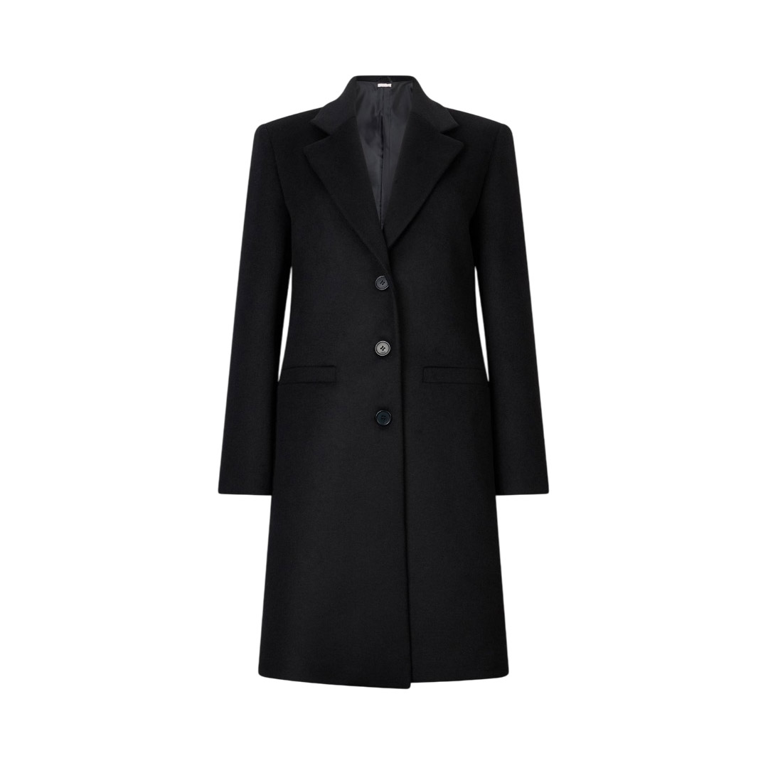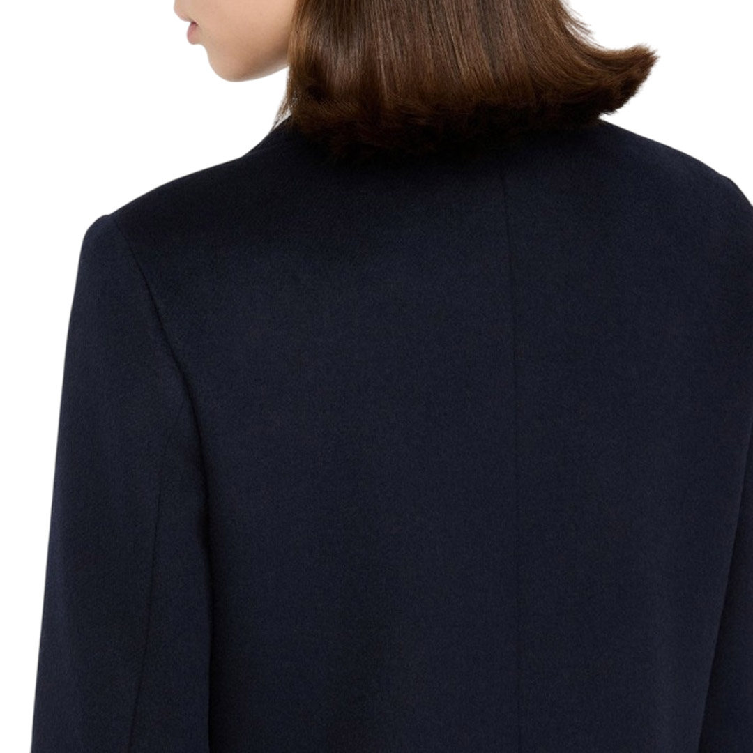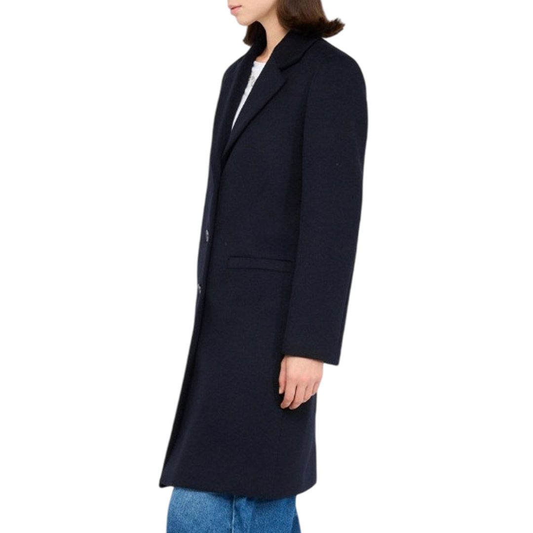 Dark blue wool coat Classic lapel Welt pockets Back vent Single-breasted three-button closure