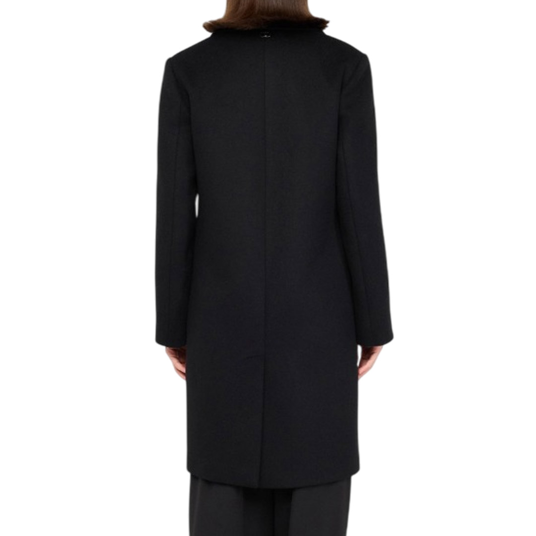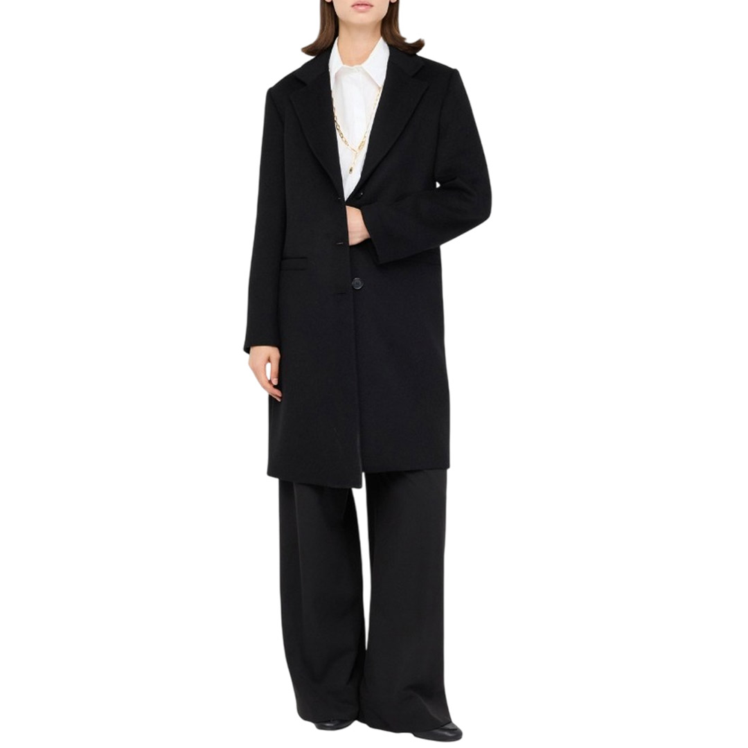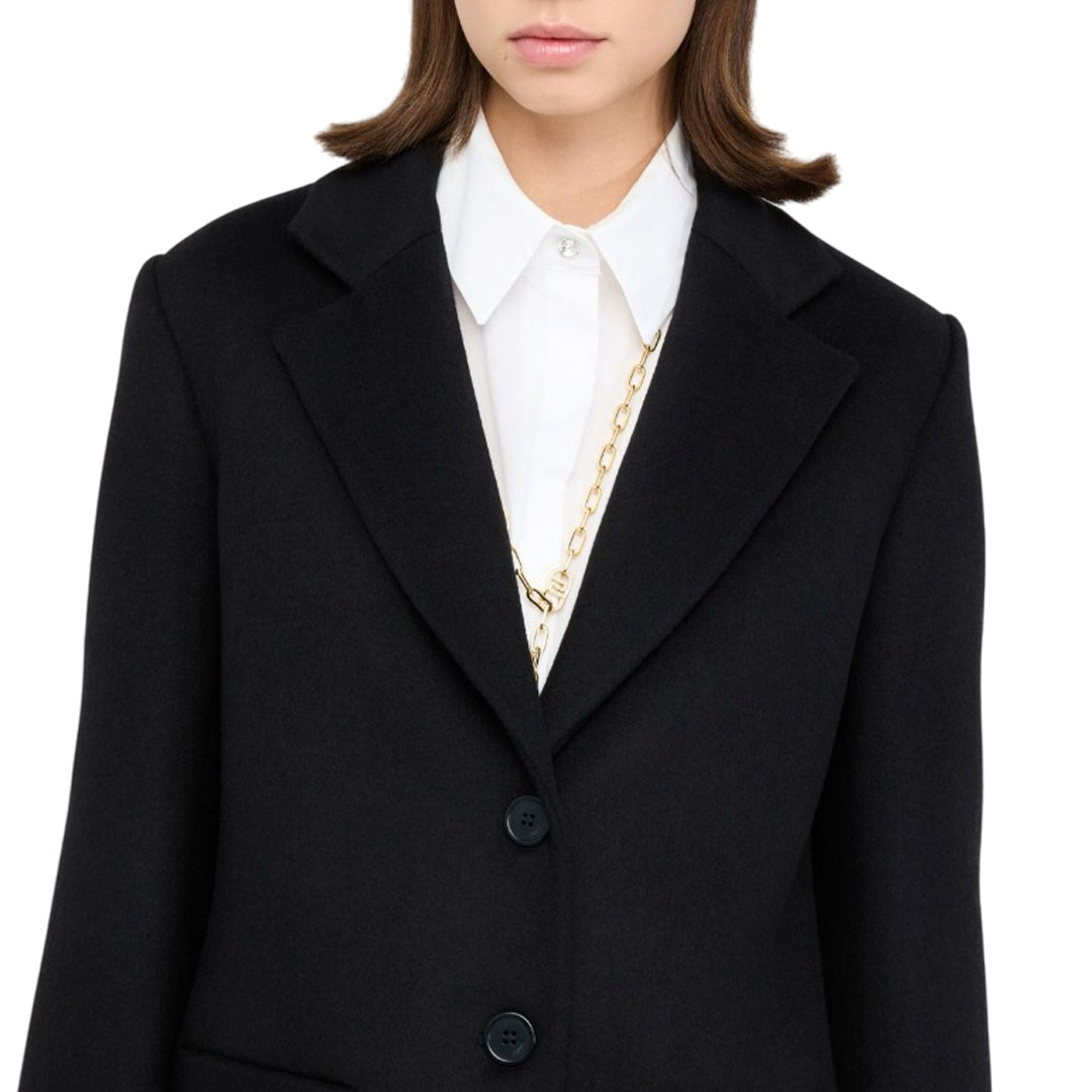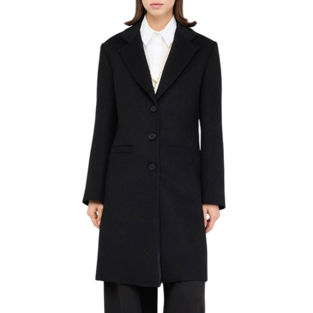 Dark blue wool coat Classic lapel Welt pockets Back vent Single-breasted three-button closure