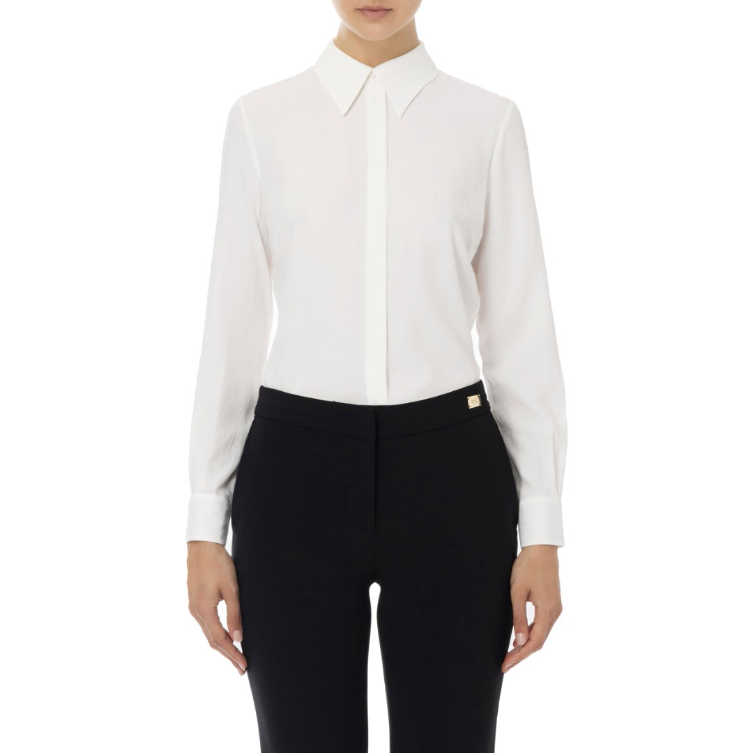 Intervention women's cardigan in lurex® Round neck cut 3/4 length sleeves Metal logo on the back Edges finished with striped motif Closure with covered buttons Made in Italy