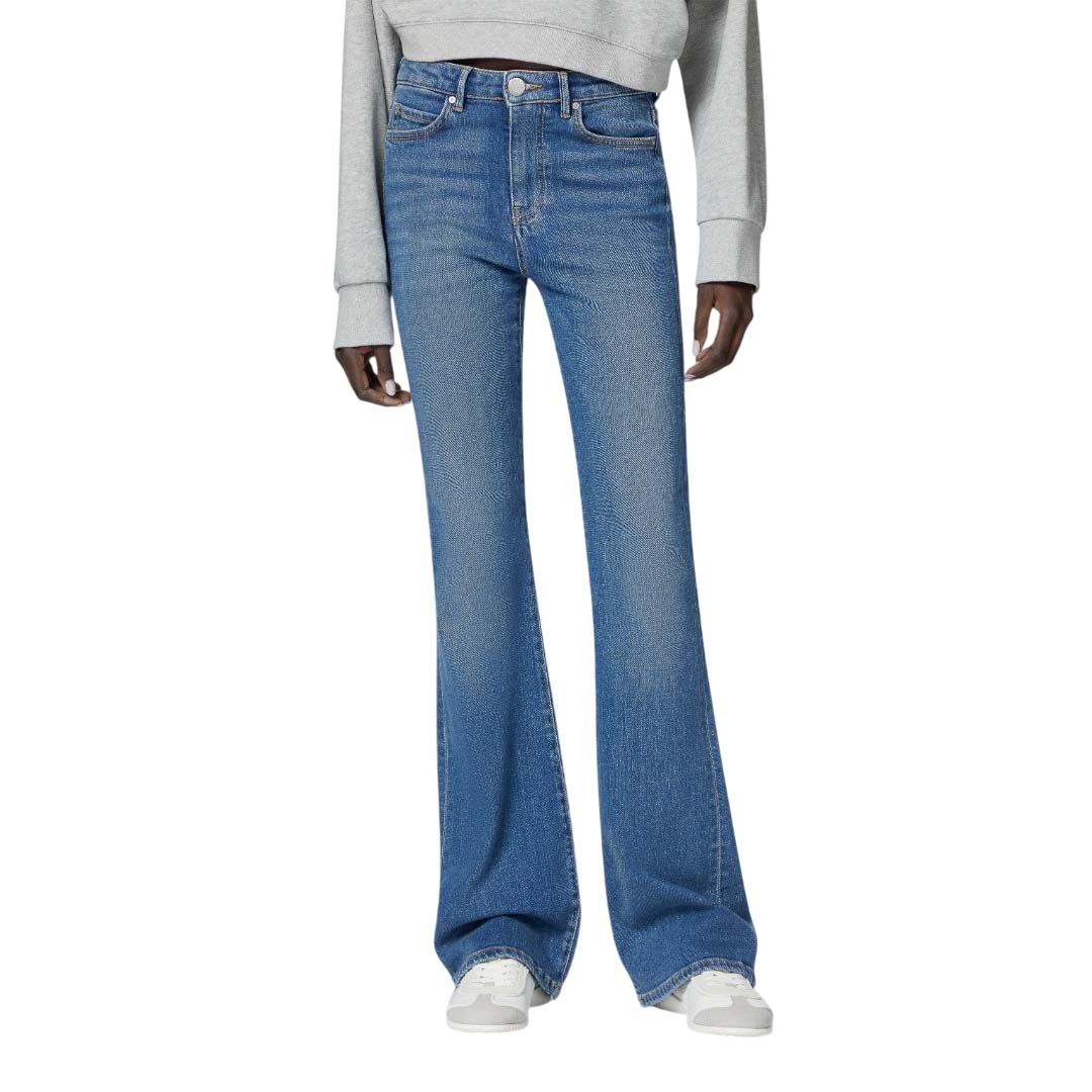 Women's trousers in Milanese stitch High waist Flared leg Belt with monogram logo Hidden zip fastening on the side