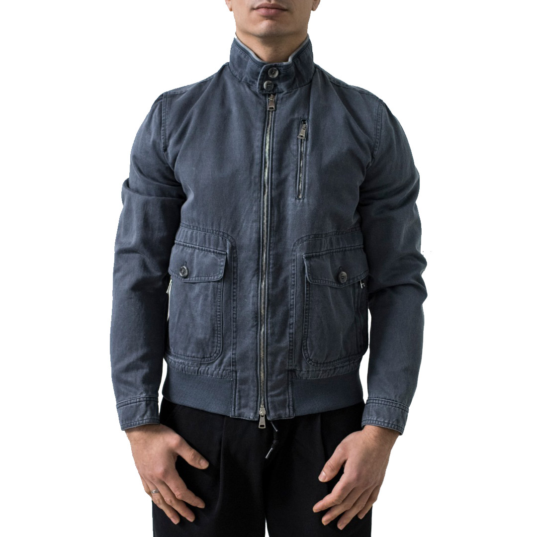 Mabrun summer jacket with zip closure double slider, four forward pockets more heart side pocket with zip closure, internal neck and bottom rib, the bottom sleeve with adjustable button, pocket inside.