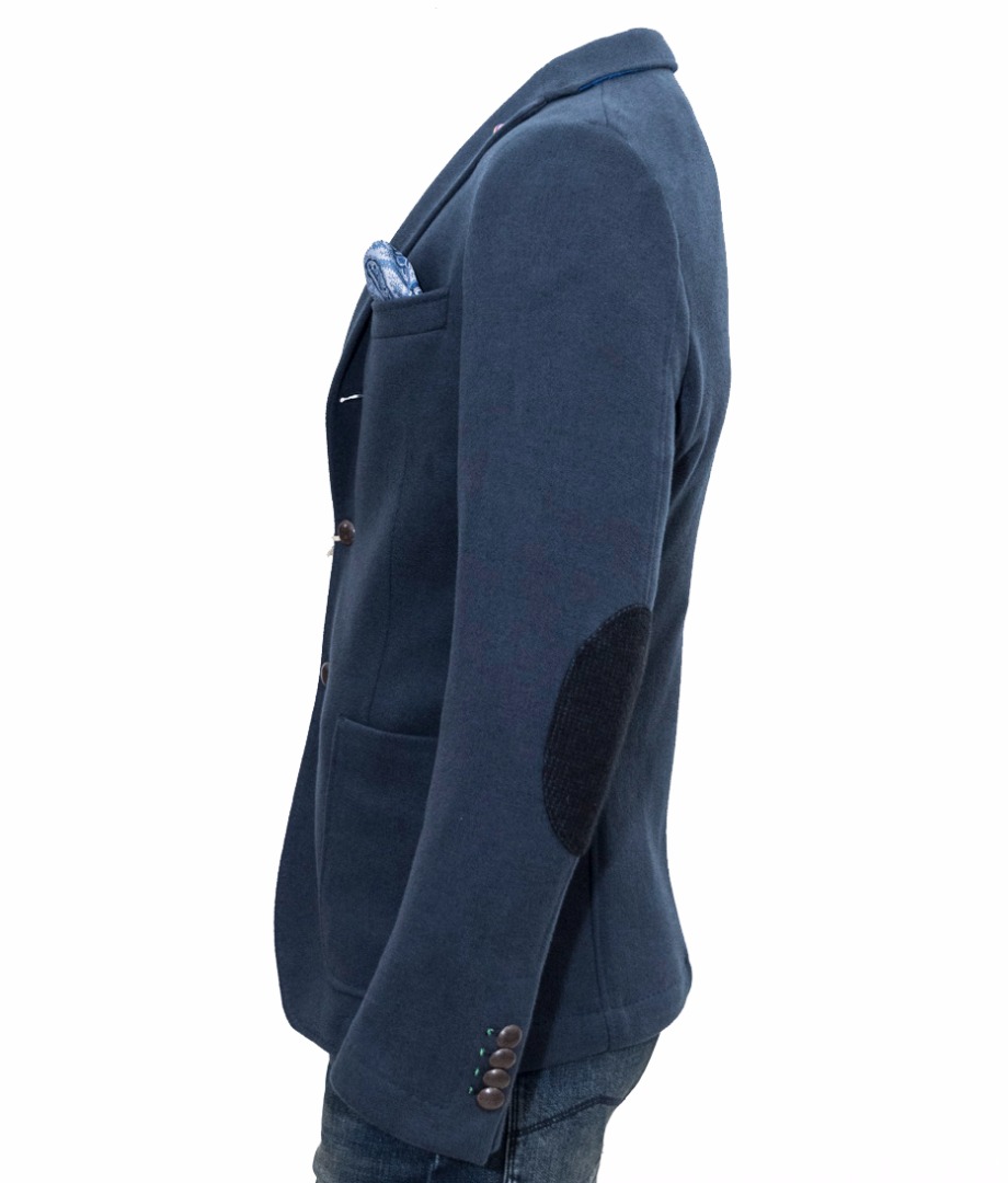 Jacket Manuel Ritz unlined inside, three metal buttons pressing two buttons, two pockets to more clutch patch pocket, four button at the bottom of sleeve slots open, patches and neck inside in contrast.