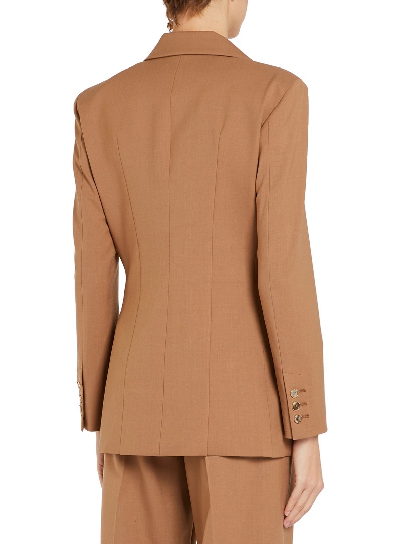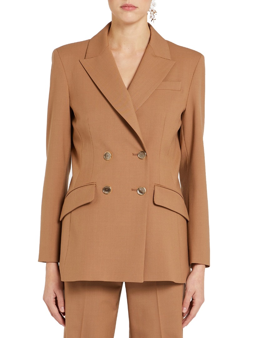 Blazer in a diagonally woven stretch wool blend. Fitted at the waist. Lapel collar. Double-breasted button closure. Shaped darts and sides. Side pockets with double welt and flap.