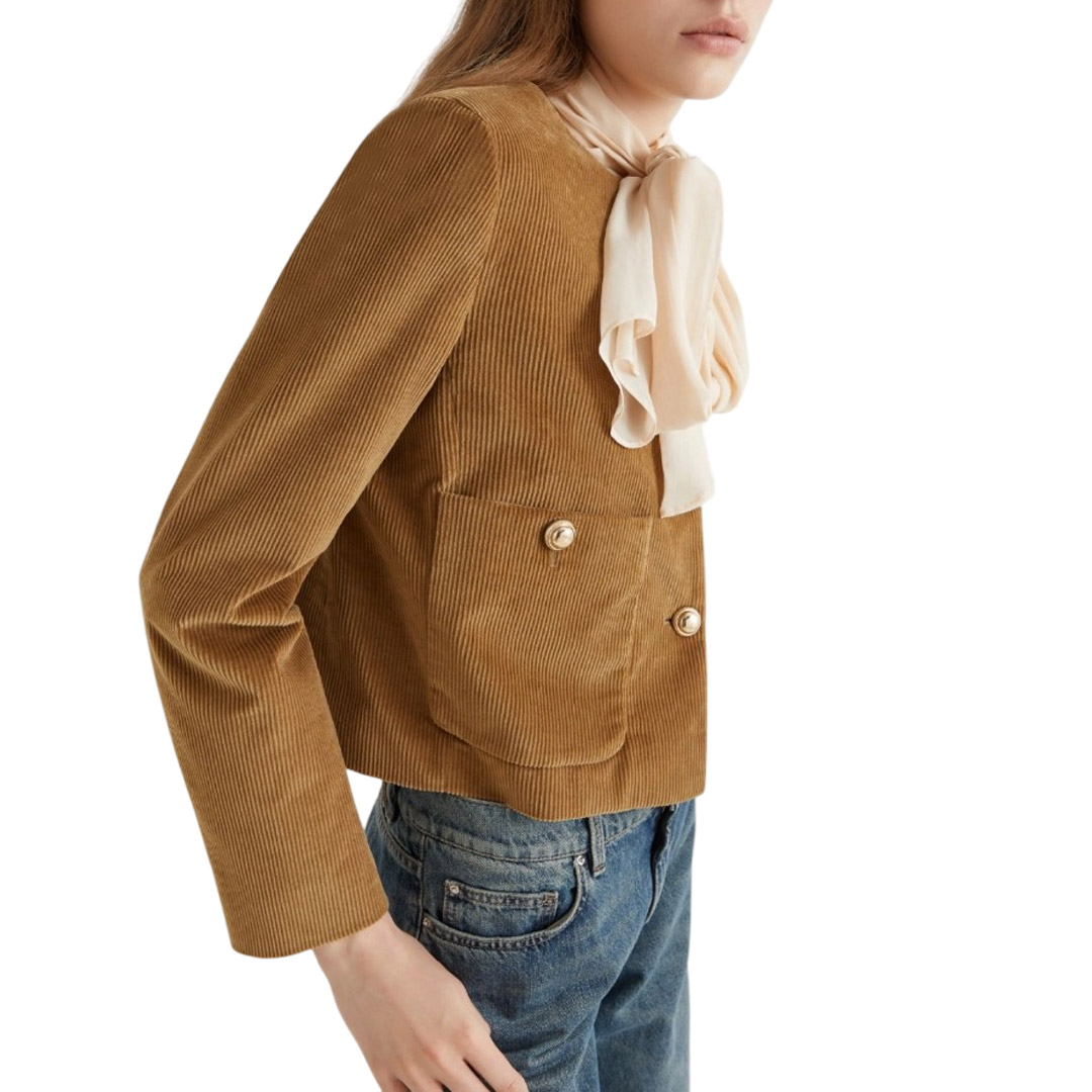 A seventies touch, a cropped waist: the new boxy jacket mixes inspiration and trends for a totally cool look. Try it with flared denim and a flowing shirt. Corduroy jacket with internal lining. Boxy fit. Crew neck. Button closure. Front patch pockets.