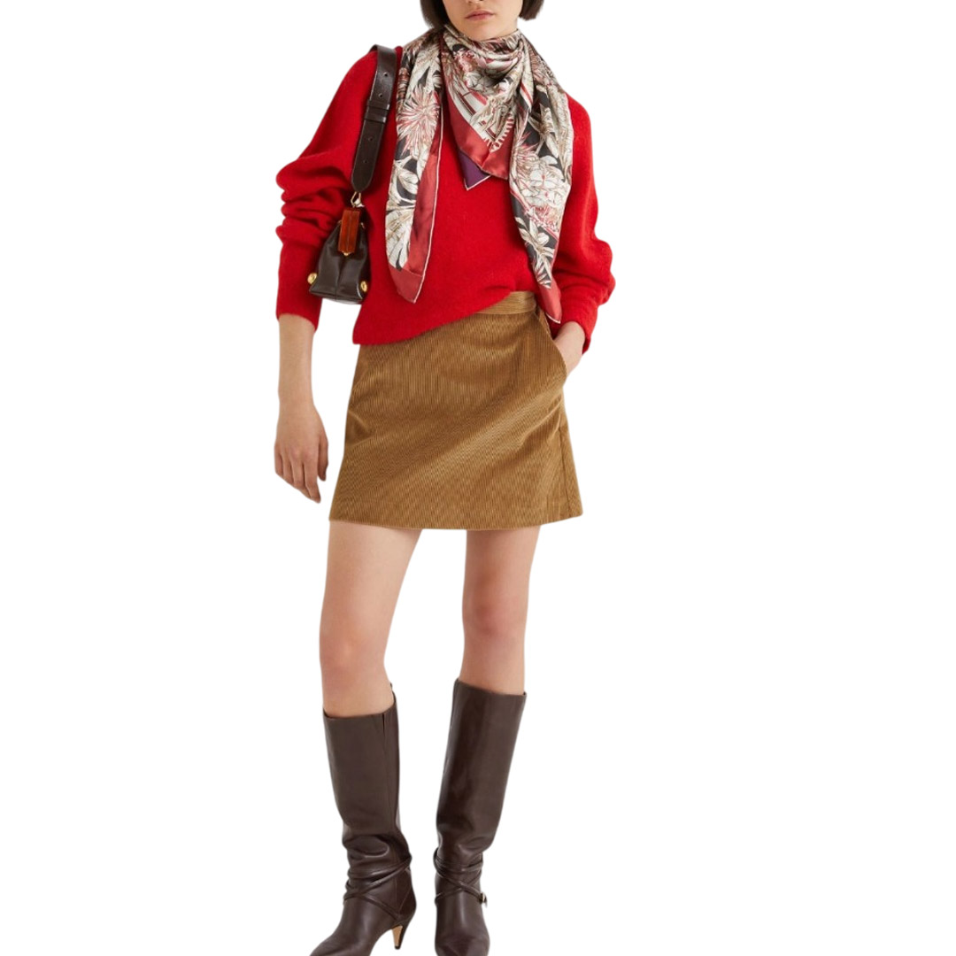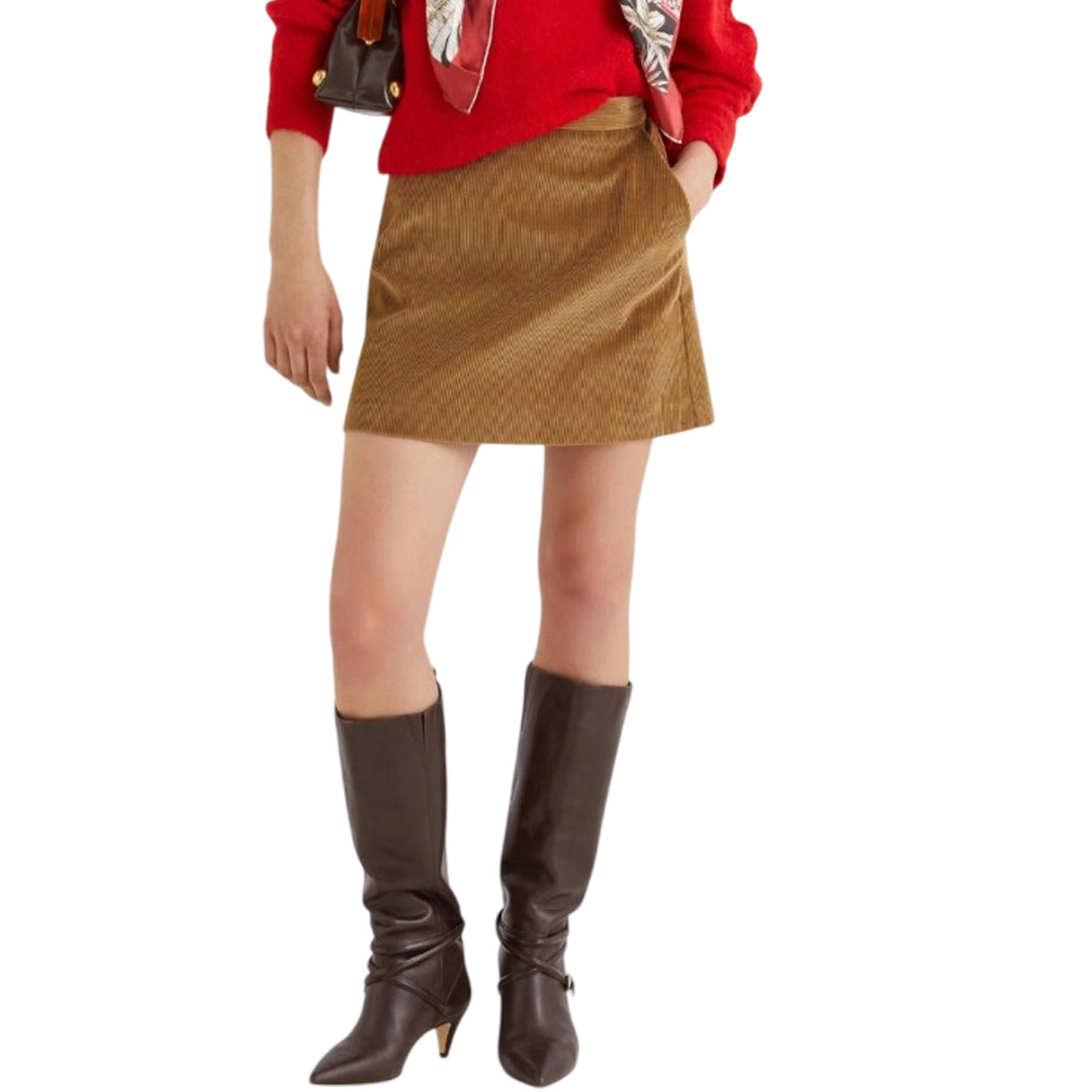 With its clean lines and corduroy, this skirt adds a touch of seventies flair to your everyday looks. Complete the look with a contrasting sweater and boots, and you're ready to go out. Corduroy skirt. Straight fit. Invisible zip back opening. French pockets on the sides. Lined.