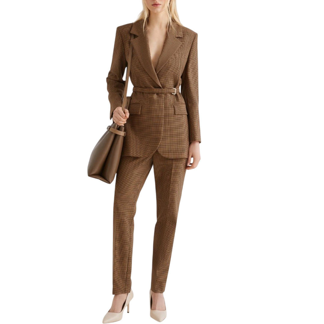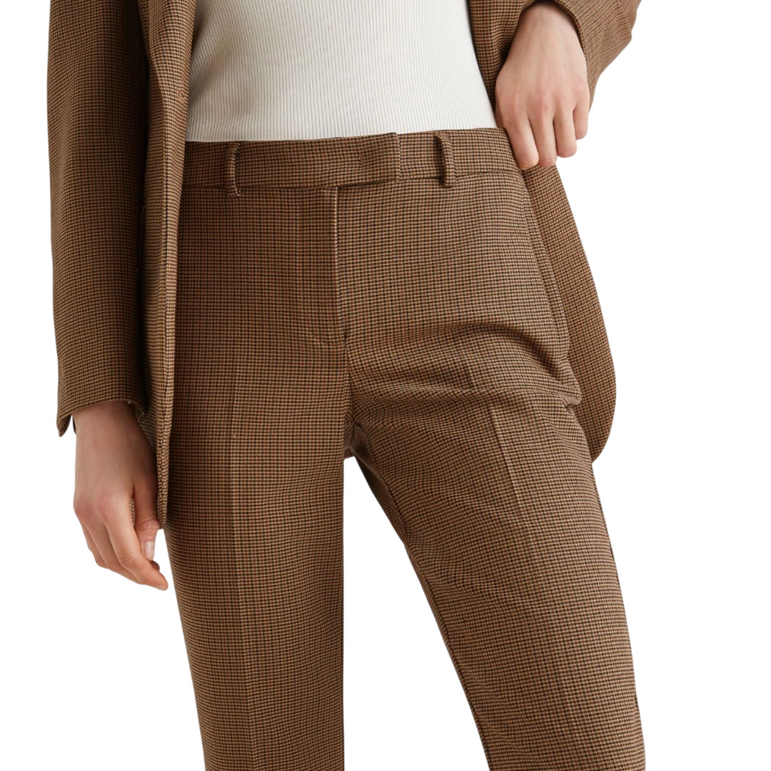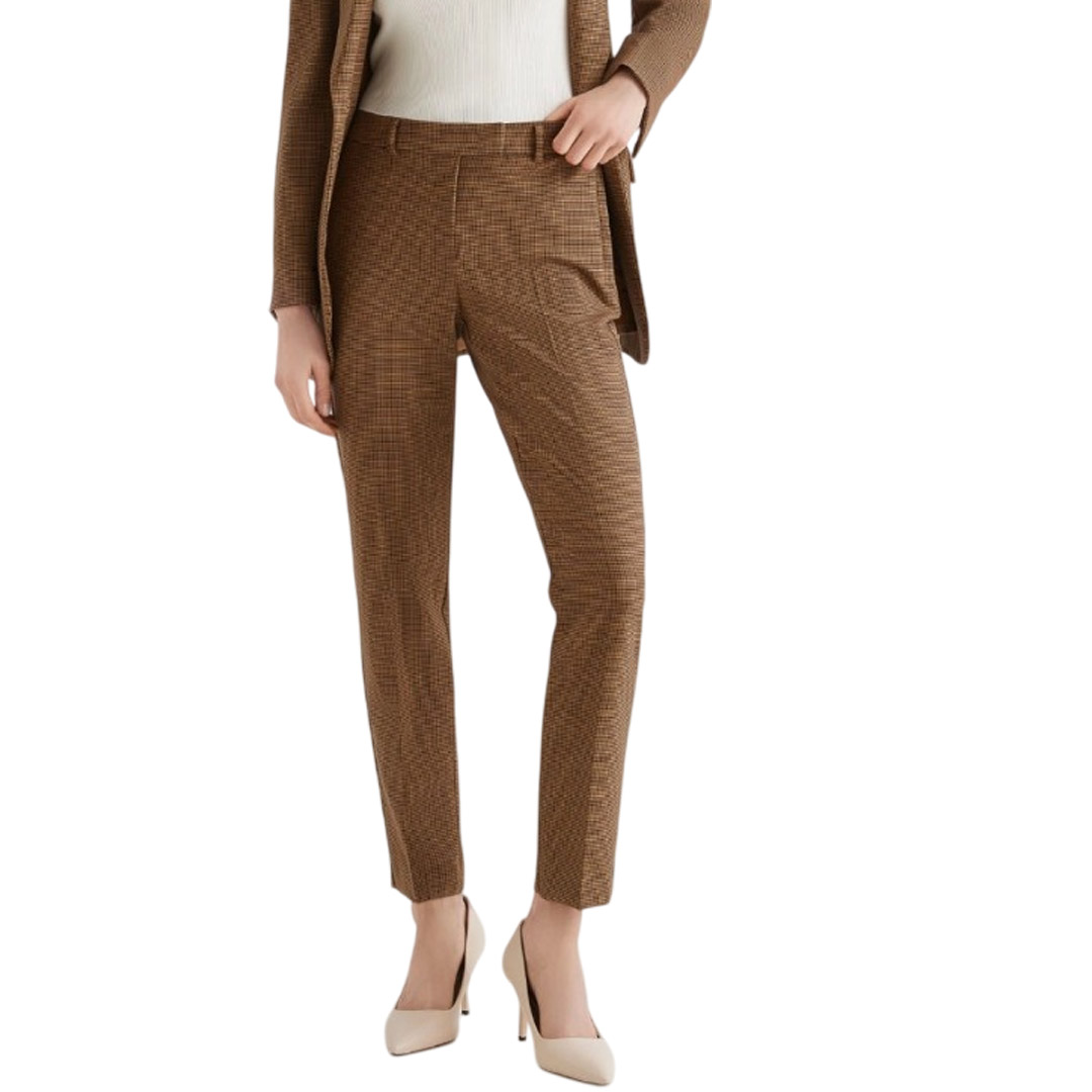 A great winter classic, in a cool version: new chino trousers interpreted in a diagonal weave fabric. Pair them with pumps and a blouse for a flawless business look, or wear them with a blazer for a bold and sensual touch. Trousers in a stretch wool blend fabric with a diagonal effect. Regular fit. Concealed hook and zip closure. Belt with belt loops. Ironed crease on the front and back. Side slant pockets and rear welt pockets.