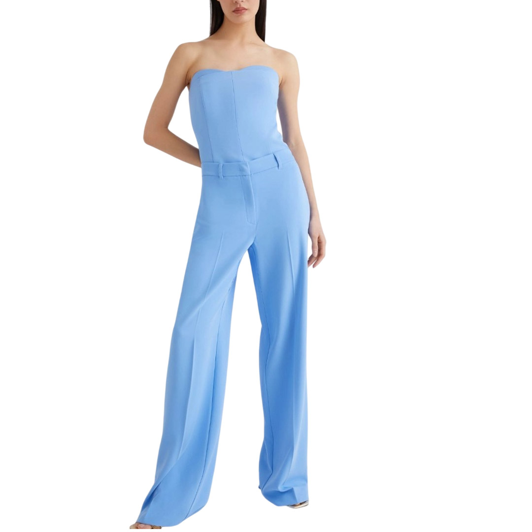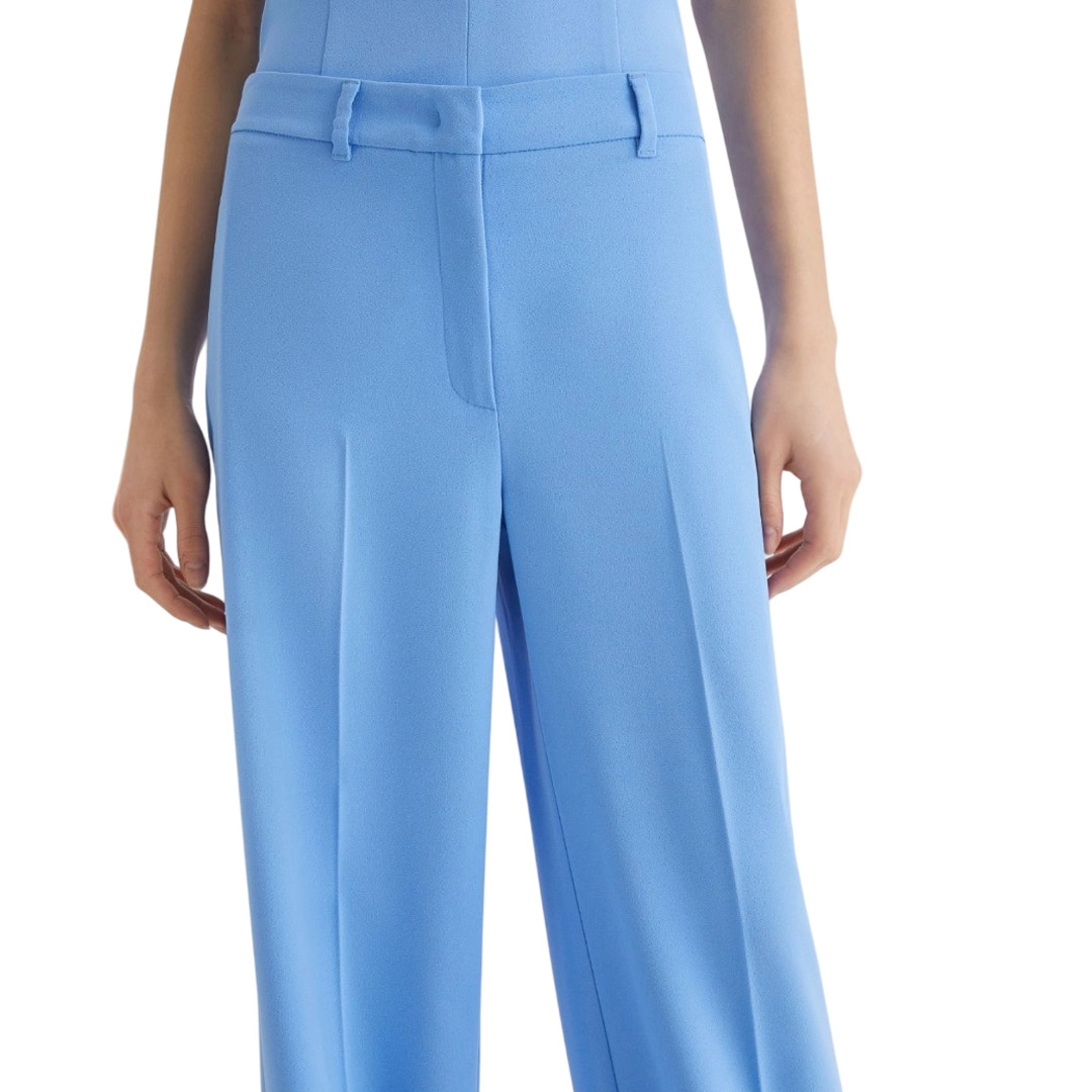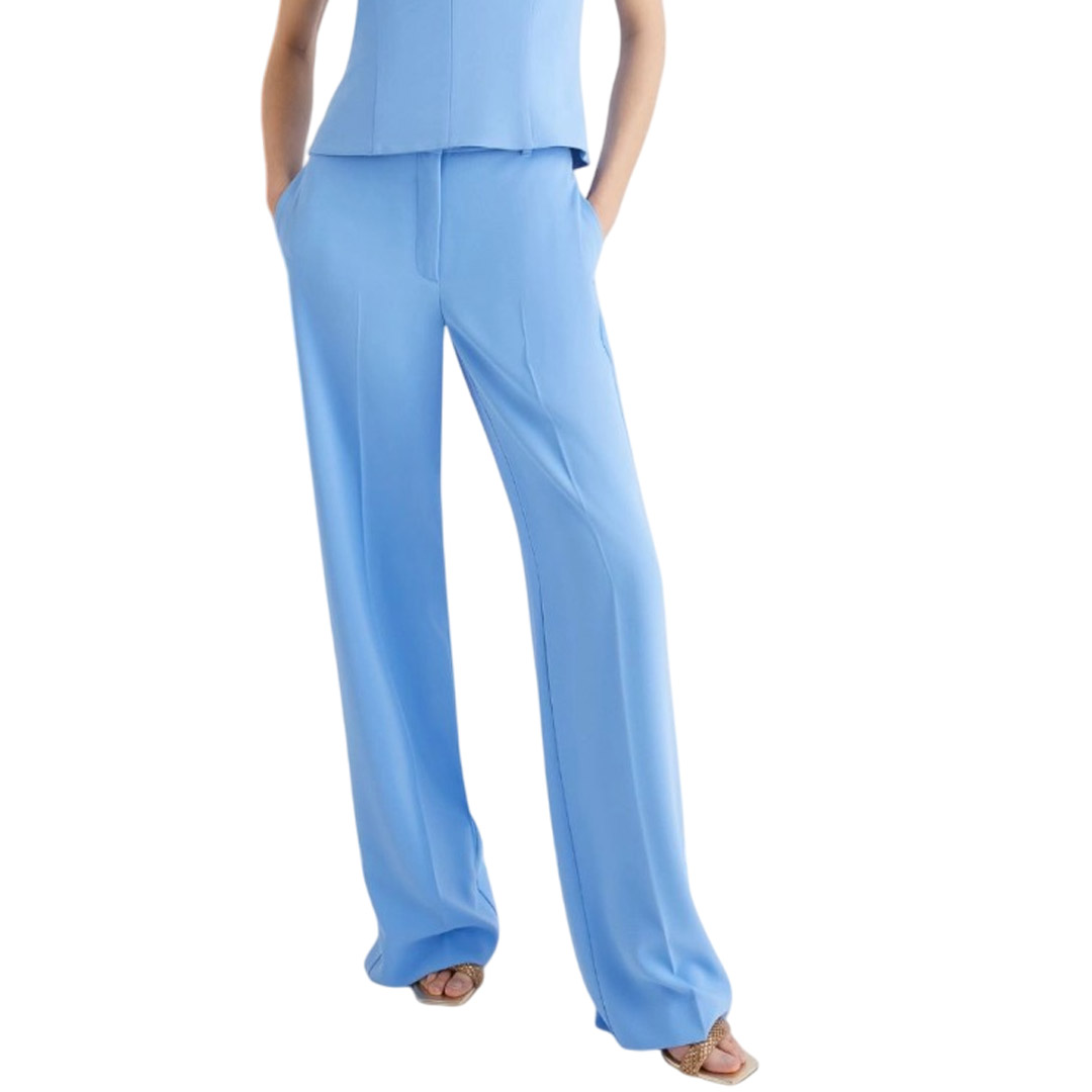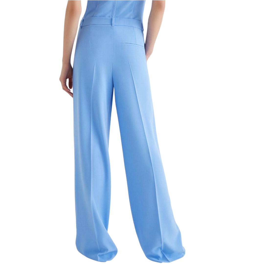 Elegant trousers made of satin with a construction inspired by men's tailoring. Bright shades introduce the new season, suggesting versatile combinations, from the bustier to the double-breasted jacket. Main fabric containing more than 50% recycled polyester. Trousers in satin with a straight fit. Men's hook and zip fastening. Inset side pockets and single rear welt pocket. Ironed crease on front and back.