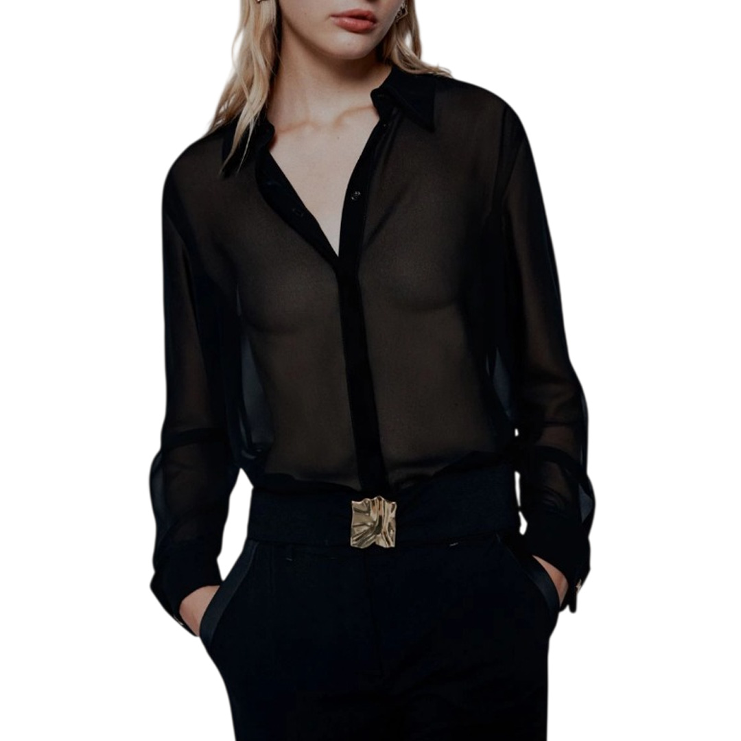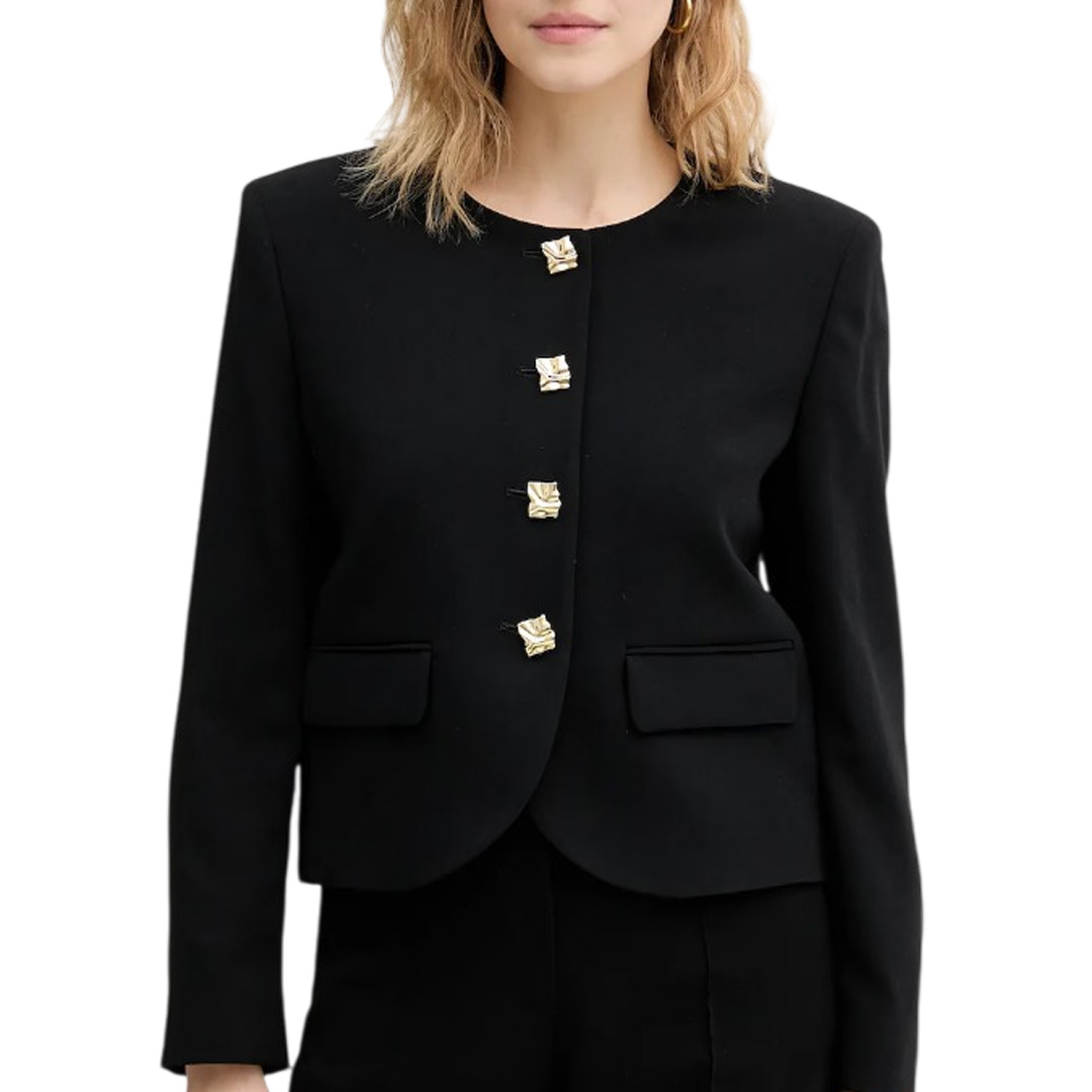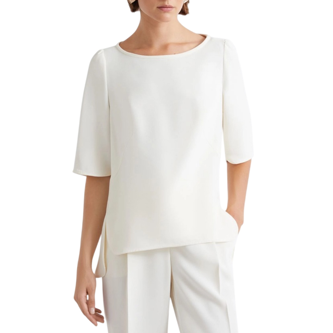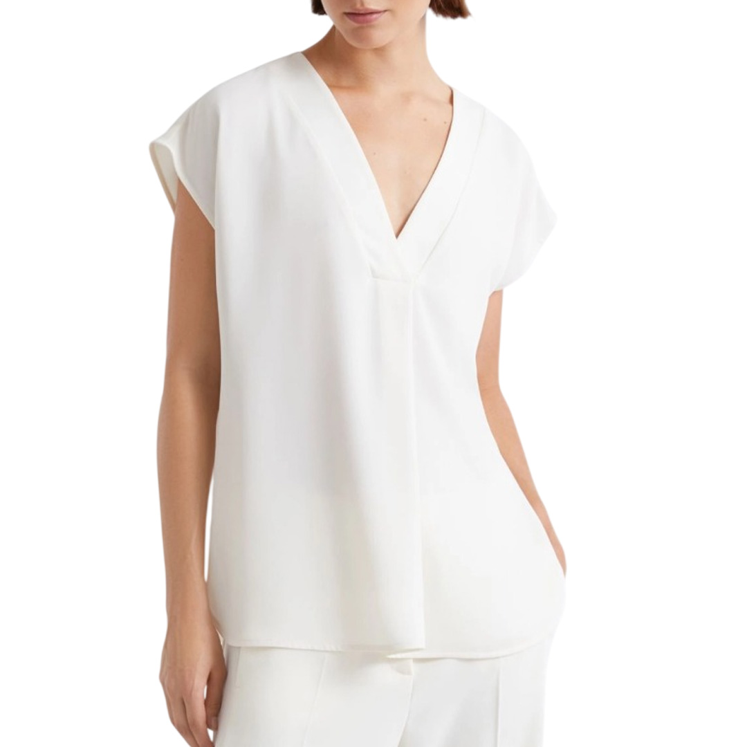 Marella T-shirt, V-neck, long sleeves, Knot Front, metal logo.