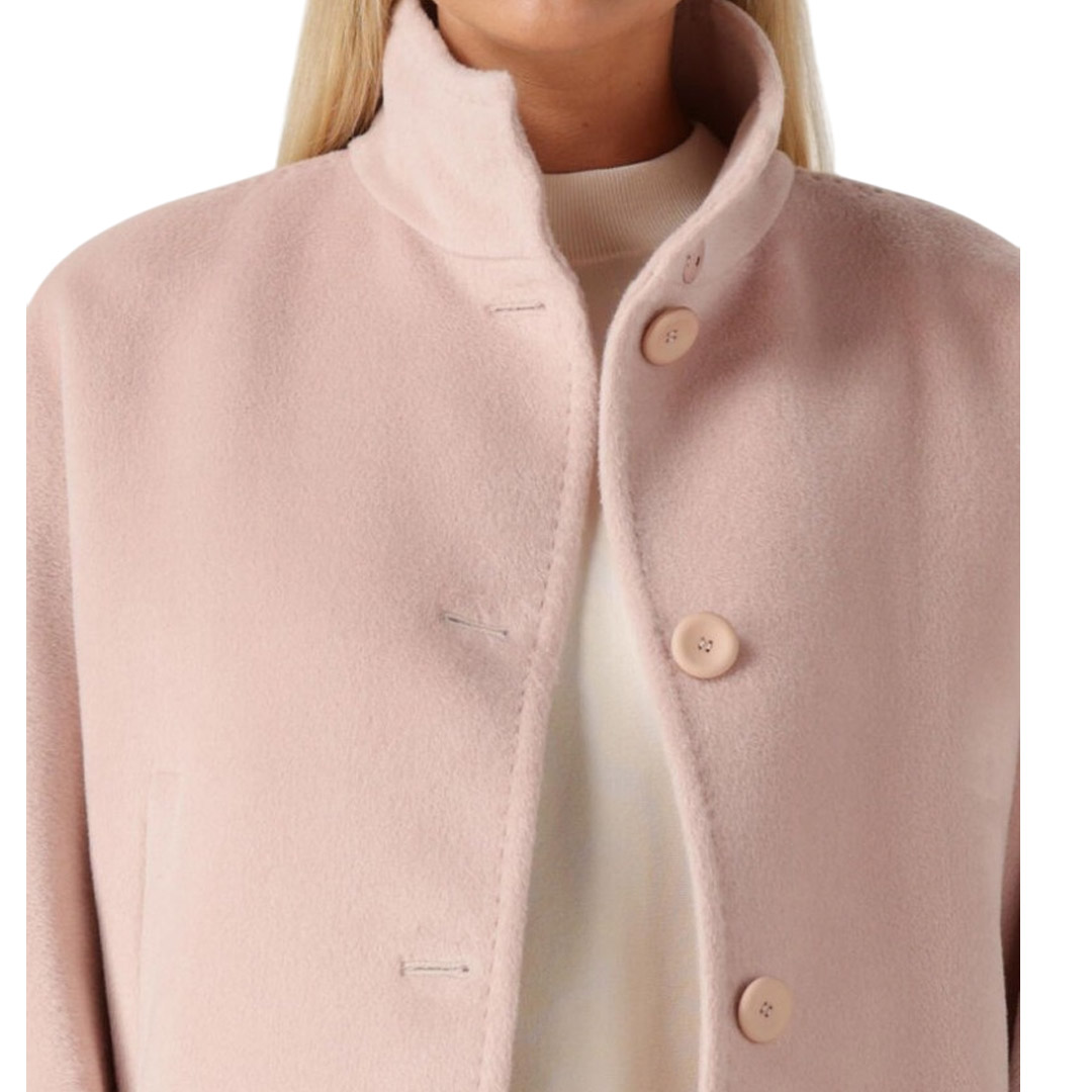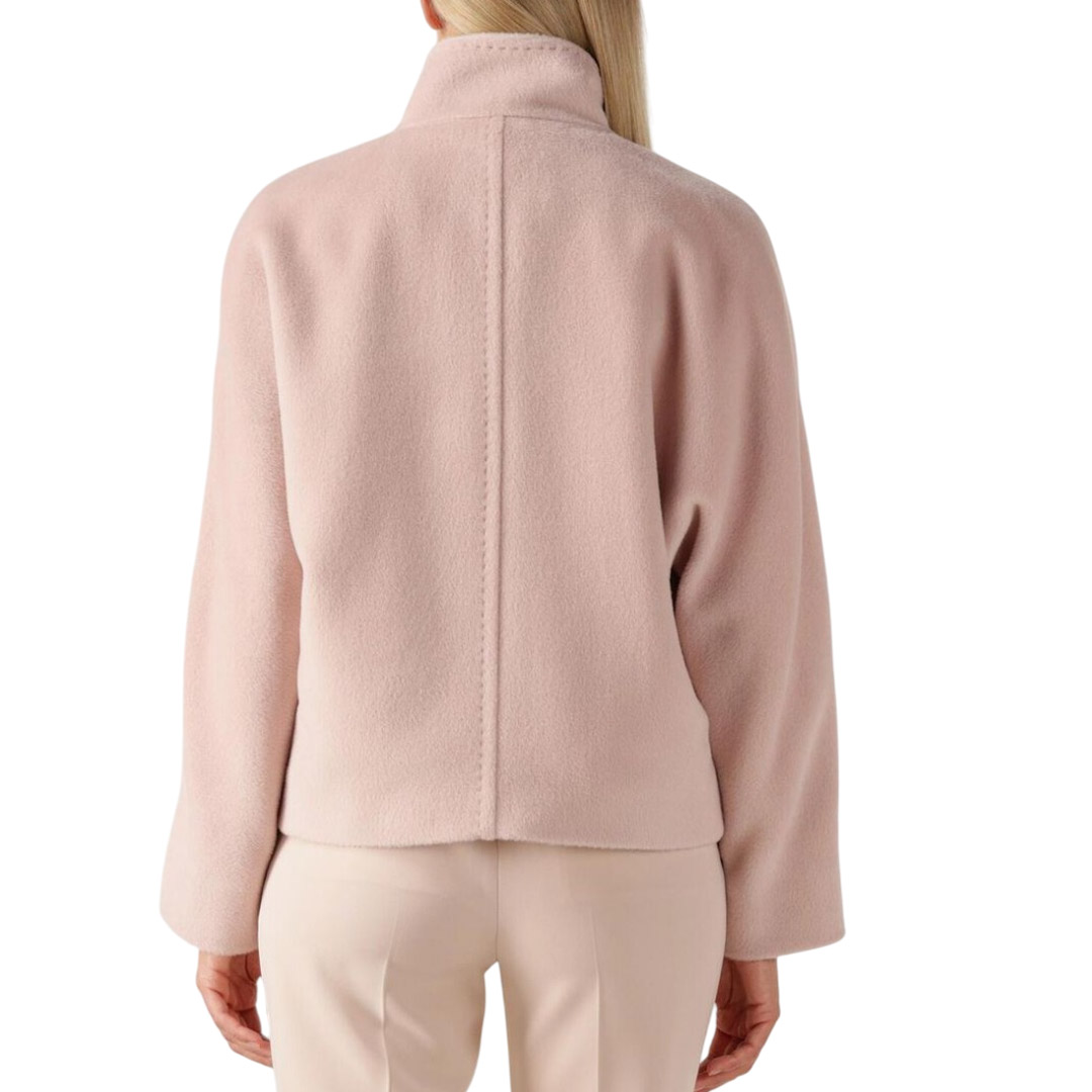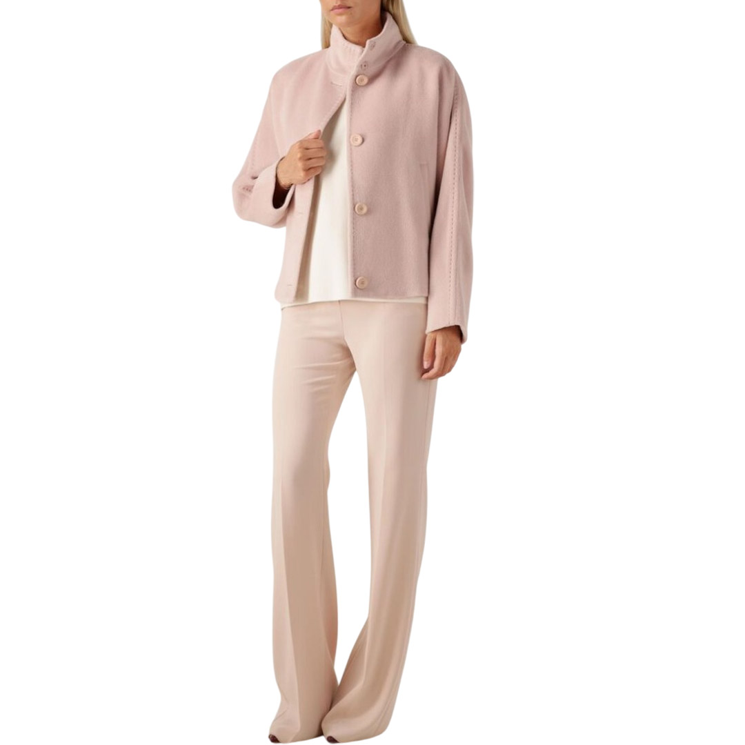 Single-breasted short jacket with a characteristic boxy fit. Jacket in alpaca and wool beaver. Cocoon line. Stand-up collar. Wide kimono sleeves. Single-breasted closure with 4 buttons. Welt pockets on the sides. Lined.